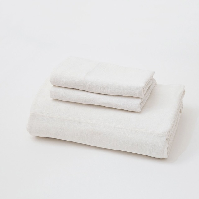 【受注オーダー】【送料無料】 サラリとした肌触りのヘンプ100%のシーツ。 太めの糸を機械織りしてあり、厚みのあるしっかりとした織り生地。 ずれにくく、安定感のある素材です。 ヘンプの素材特有のさらりとした肌ざわりに重みが加わり、贅沢感のあるクリーンな雰囲気です。 眠りの時間の発汗をしっかり吸収発汗させてくれ、寝汗による身体の冷えを防ぐ役割をしてくれます。 清潔感のある白が寝室をすっきりとさわやかな印象にしてくれます。 ◎サイズ シングル:W145×H250cm 22,000円 シングル、ダブルサイズ布団 シングルサイズベッドマット用 *同シリーズのダブルサイズもございます。 ダブル :W200×H260cm 28,600円 ダブル布団 セミダブル、ダブル クイーンサイズベッドマット用 (厚みによって若干変わります) ◎カラー ホワイト ◎オリジナル生地 LISO 素材:ヘンプ100% 目の詰まった機械織の張りのあるヘンプ100%素材。 吸水発散性に優れ、サラリとした肌触り。 アイロンをかければパリッと、洗いざらしならリラックスした表情に変わります。 〈ヘンプについて〉 ヘンプは、大麻の茎の皮の繊維部分が原材料です。 ヘンプの繊維は、光沢と通気性・吸水性・速乾性があり、汗を吸収して発散してくれます。 繊維に微細な穴が無数にある多孔構造を持ち、調湿性に優れています。 特に夏や雨期の湿り気のある暑い時期には、さらりとした肌触りがここちよく身体を包み込んでくれます。 冬の寒い時期には繊維に空気を含み、ぬくもりも与えてくれます。 他の繊維に比べて丈夫で、湿ると強度が増します。 茎の繊維部分は衣のほか、紙や断熱材・壁材などの建築材料として、種(実)は良質のタンパク質やミネラルにすぐれスーパーフードとして注目されています。 また、スキンケア用品やバイオ燃料としても活用されており、茎や皮、種、根などすべての部位を産業用途に活用することができるため、地球環境保全や資源活用の観点からも見直されてきています。 ◎ブランド プラネッタオーガニカ プラネッタオーガニカのさまざまなプロダクツを ご覧ください☺︎ https://herios.thebase.in/categories/2929367 《プラネッタオーガニカ》 手紡ぎの無農薬コットンとヘンプをメインとする自然素材を、自然の草木で染めて手織りしたホームウェアや暮らしまわりのタオルや寝具などを展開。 丁寧な生産、作り手や環境への配慮や共存関係をたいせつに、使い心地よく長く使える製品づくりをされています。 https://instagram.com/planetaorganicaworld?utm_medium=copy_link ーATTENTIONー ◎こちらの商品は受注オーダーとなります。 ◎オーダーいただいてから納品まで2ヶ月ほど期間をいただいております。 ◎生地のロットにより、風合いや色合い、肌ざわりに個体差があります。あらかじめご了承くださいませ。