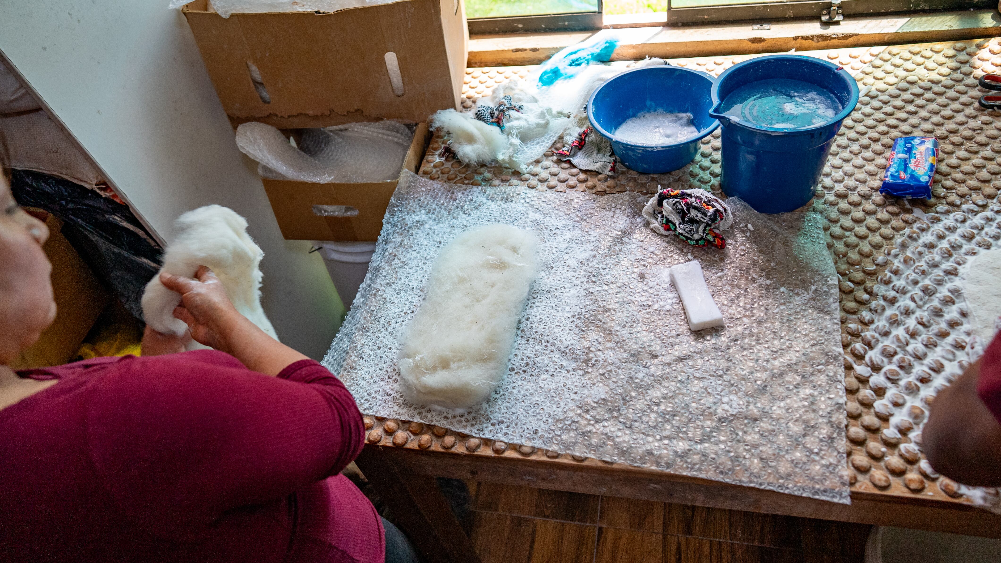 アルパカは2年に1度の毛刈りが必要で、丁寧な選別・洗毛を経て製品になります。