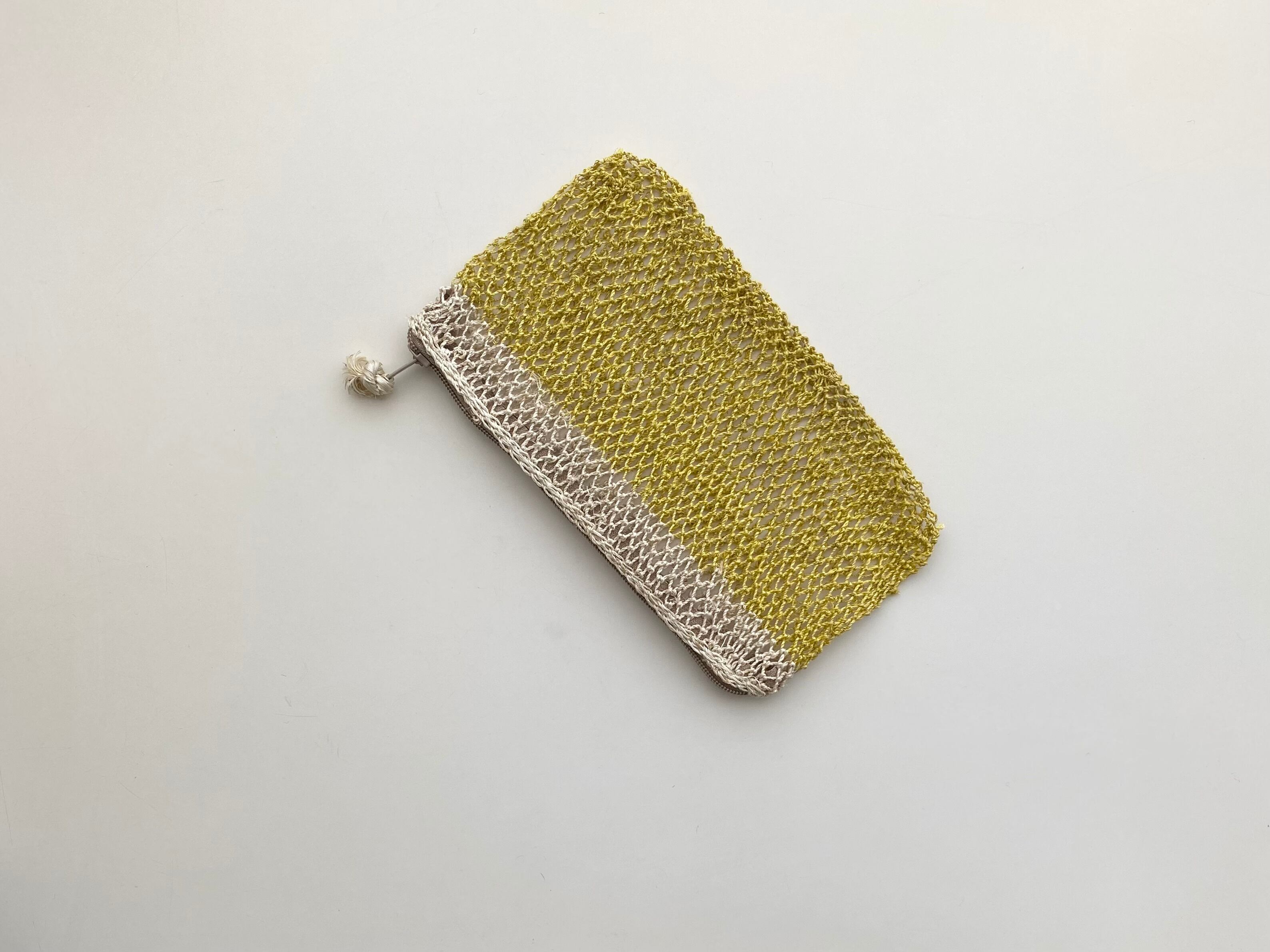 シースルーの編み目から中のものが垣間見えて使いやすく、カバンの中でも編み目の手ざわりでわかるため、取り出しやすさも嬉しいポイント。