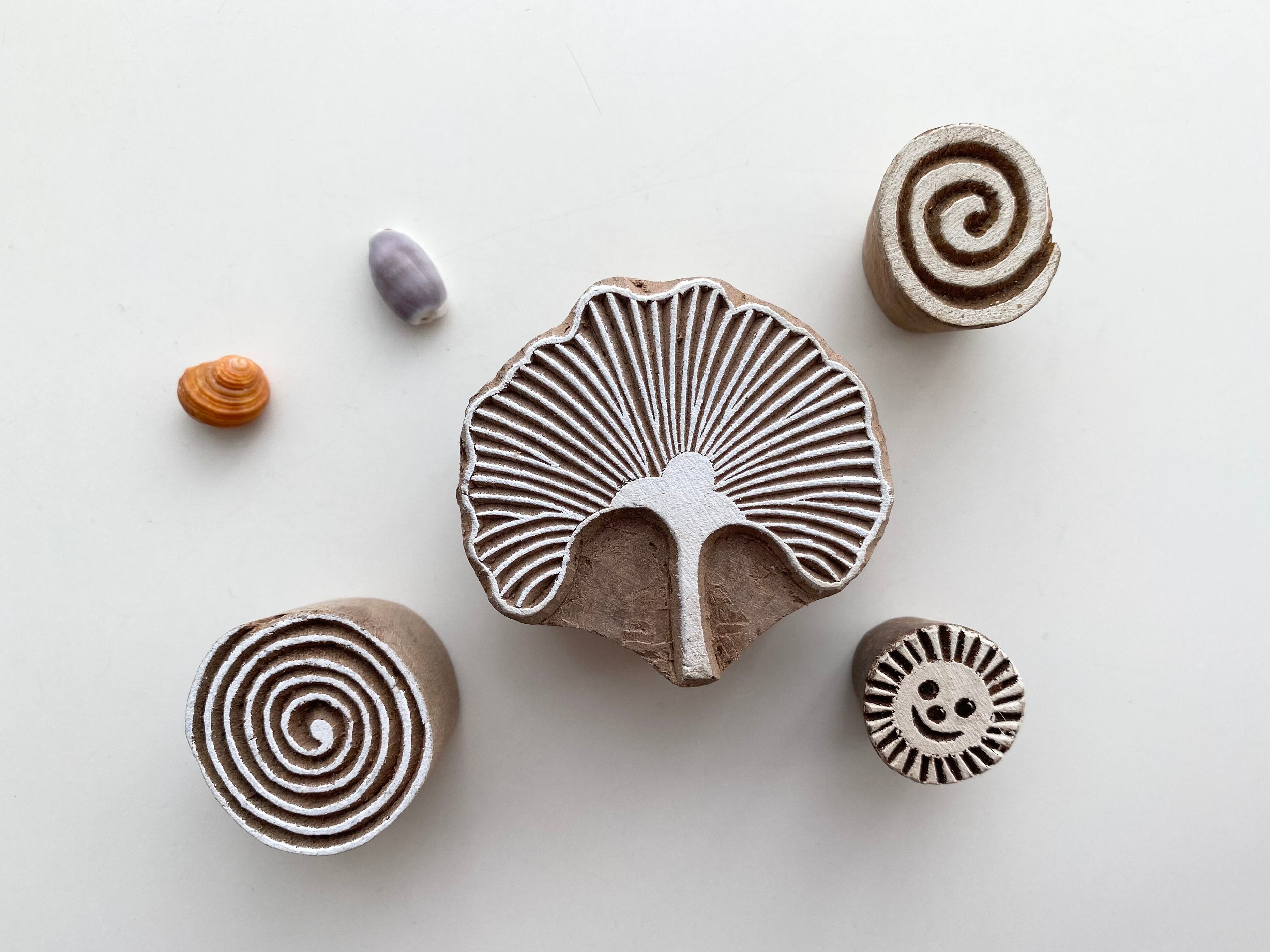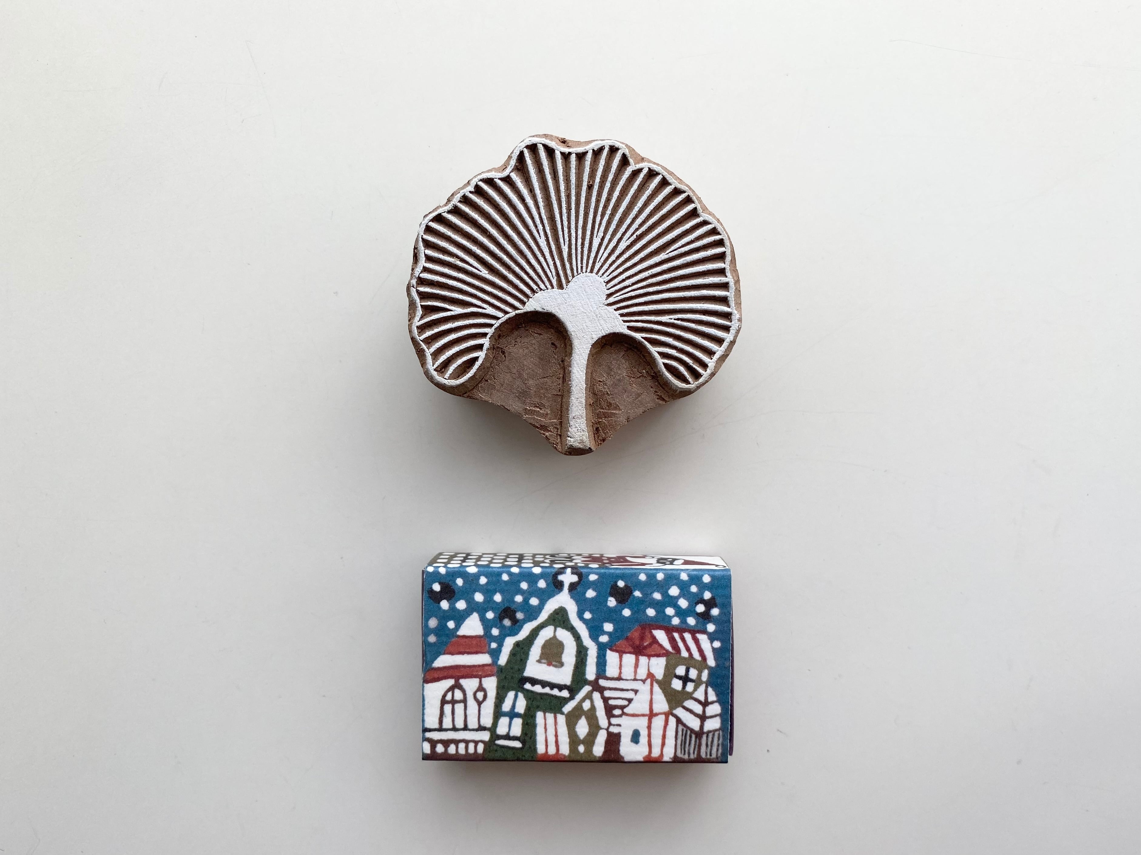 インドでは主に布のプリントに使われているウッドブロックですが、手持ちの布や紙、カードに押すとオリジナル感あふれる作品ができます。