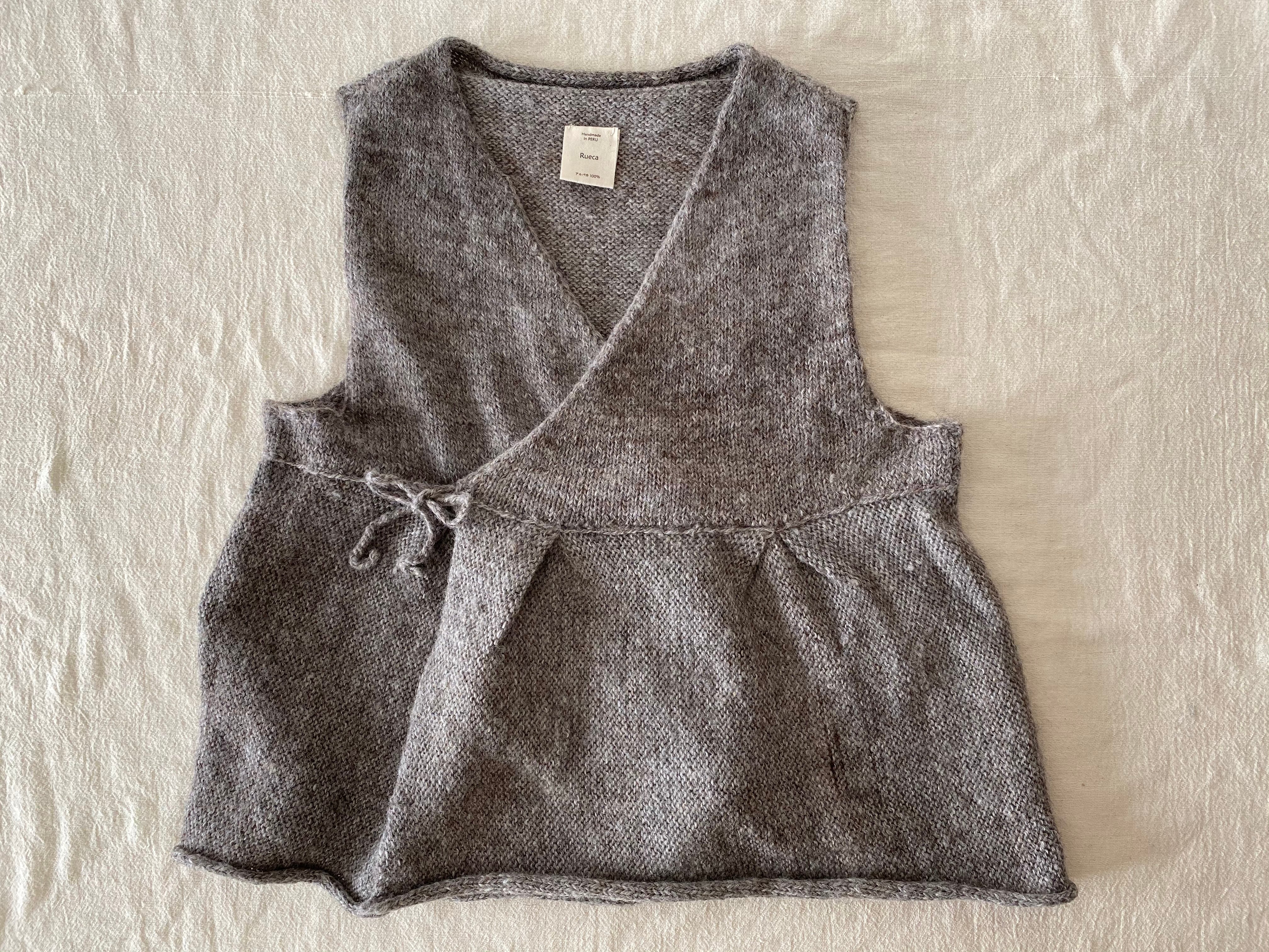 やさしいシルエットでコーディネートしやすい、カシュクールタイプのベスト。