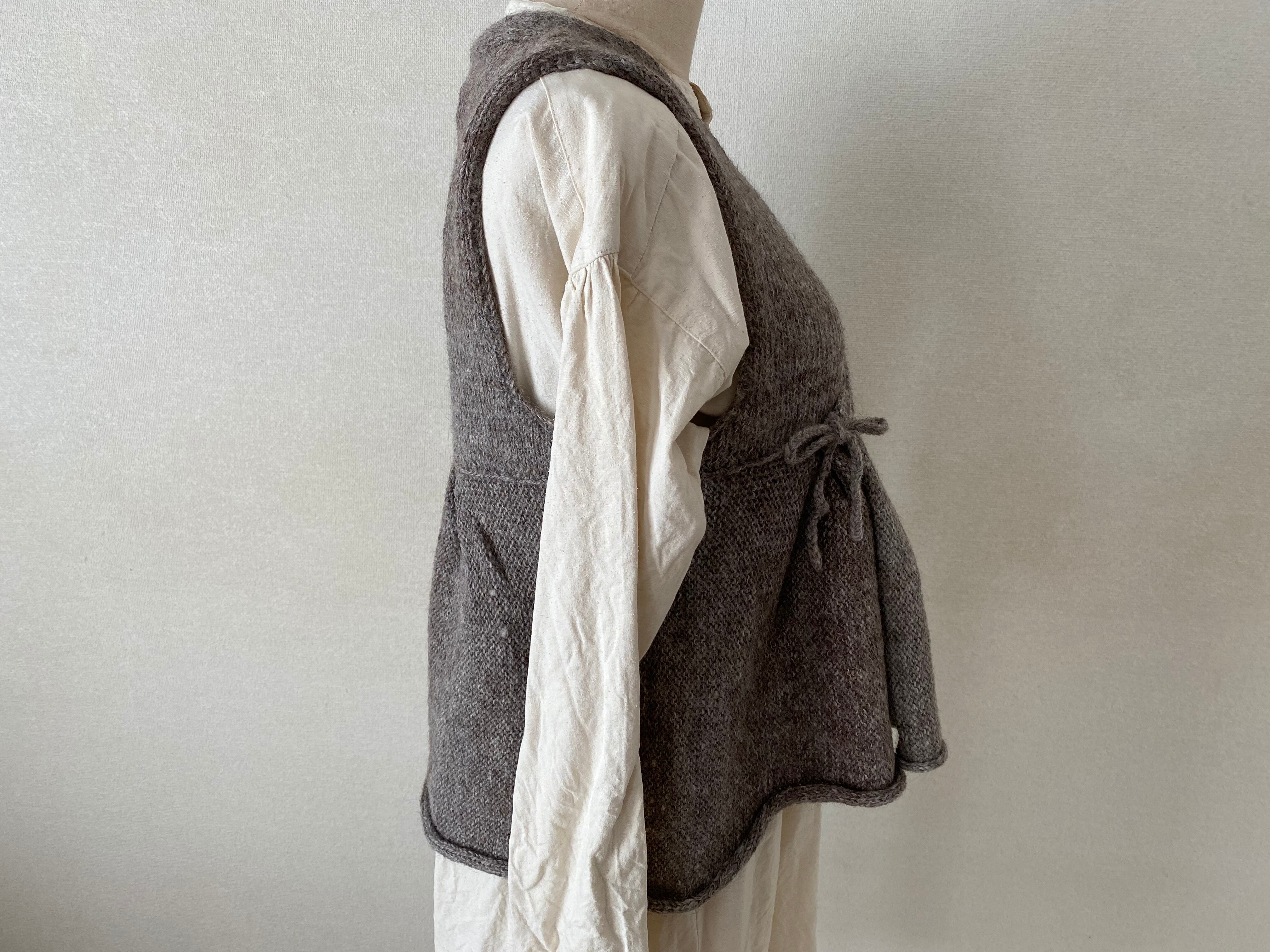 プエンテ/手紡ぎカシュクールベスト/杢ブラウン/Rueca(ルエッカ)