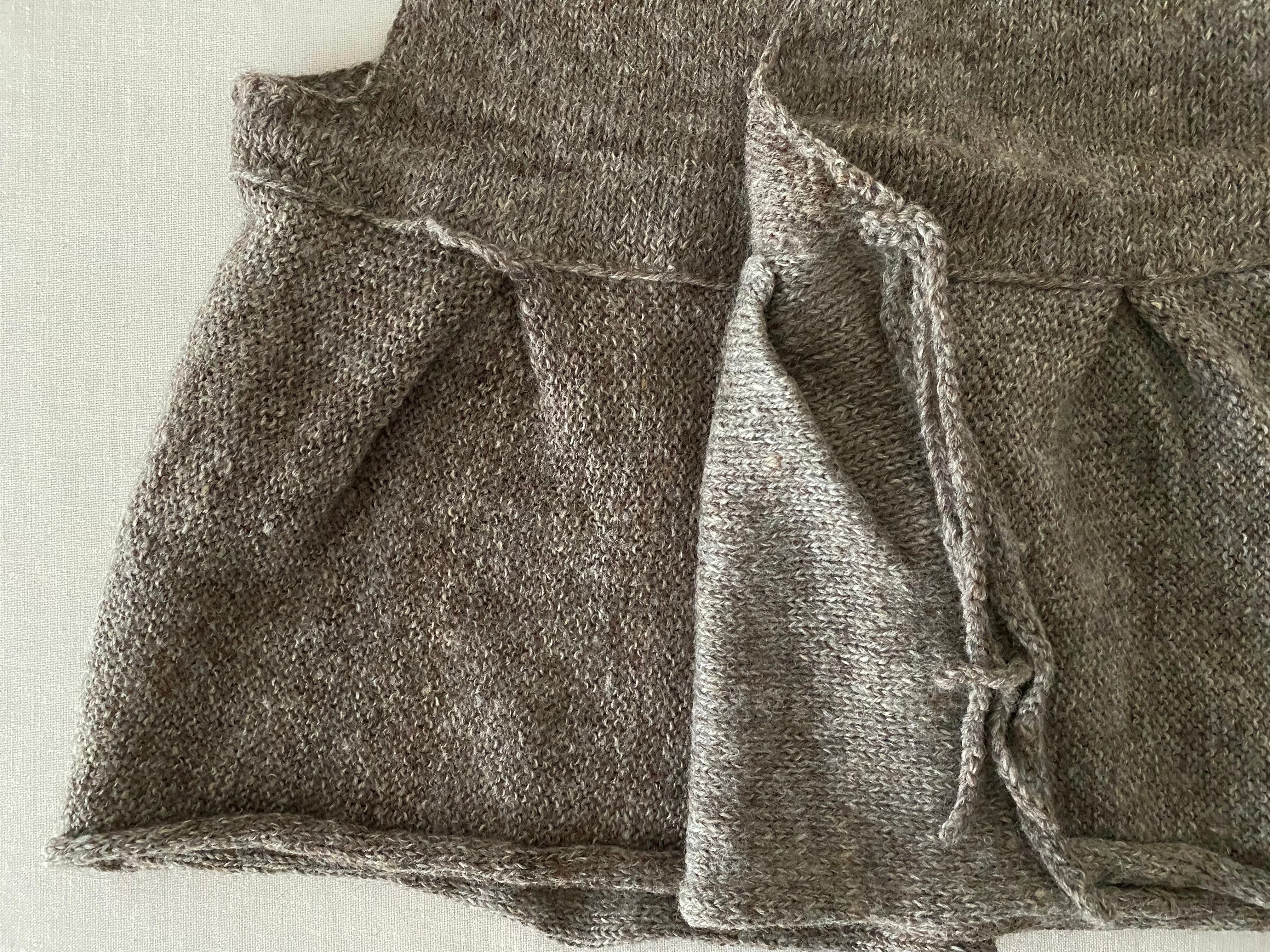 カシュクールにせず、中央でひもを結んでよりふんわりしたシルエットで着用もできます。