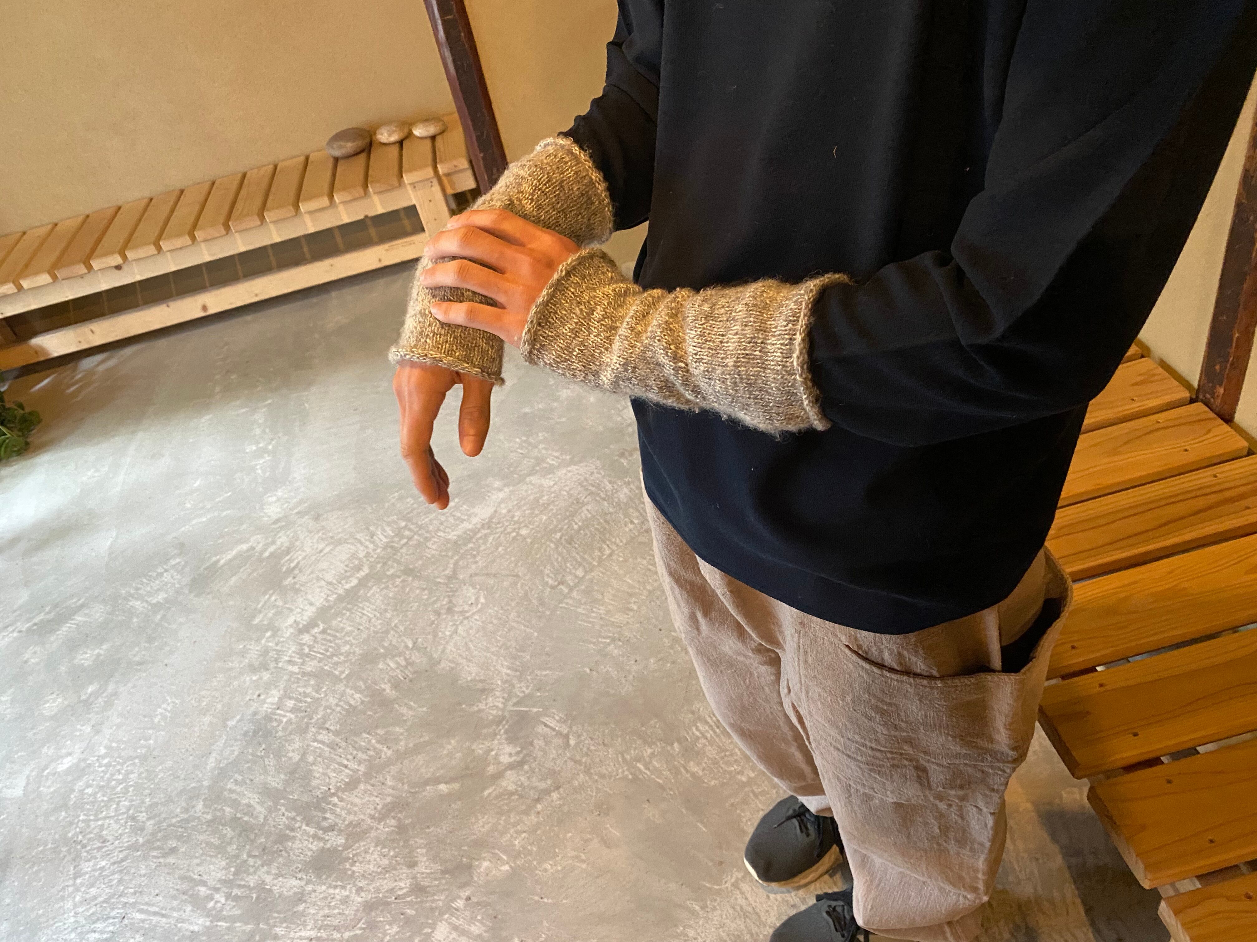 アルパカ素材の手紡ぎ手首あて