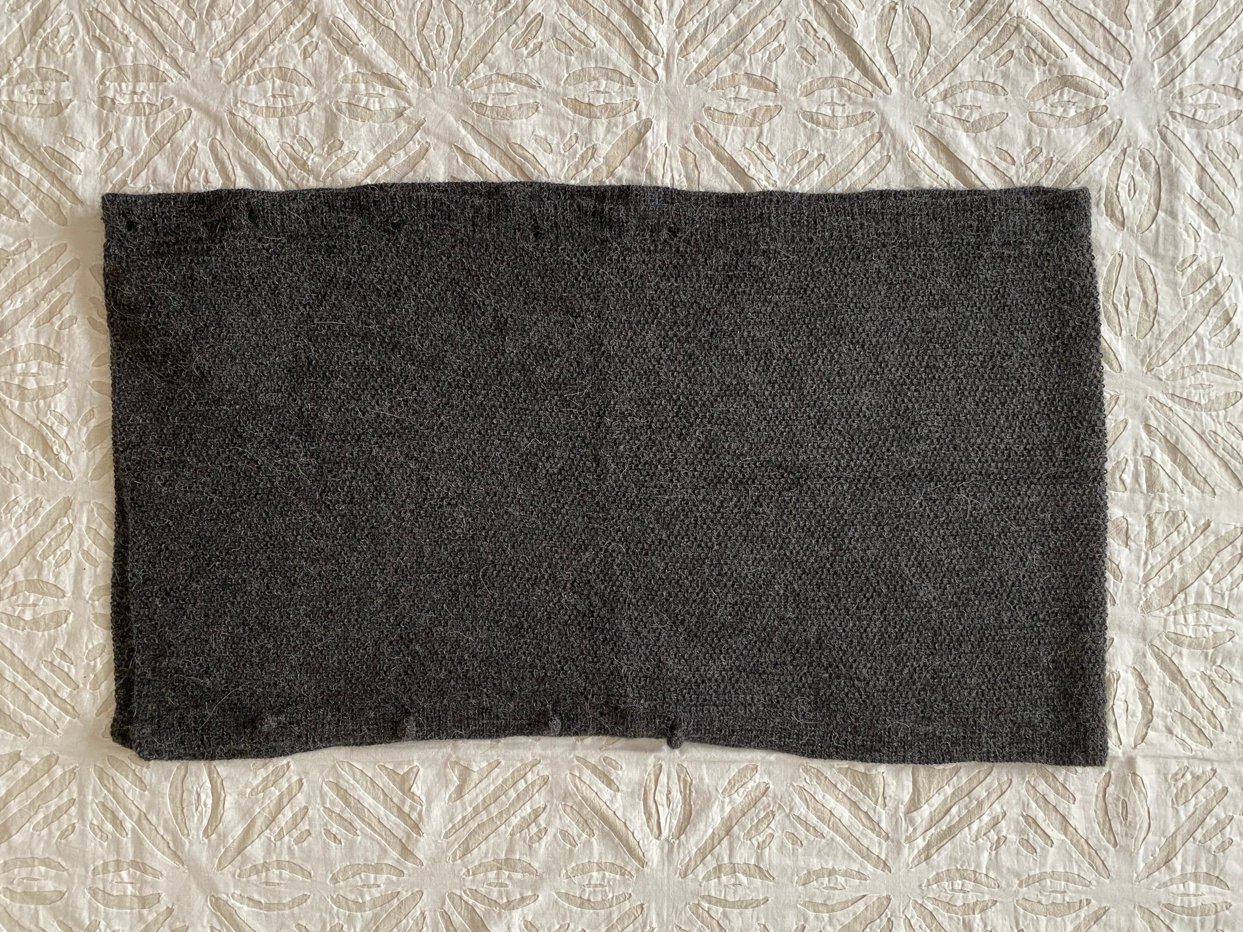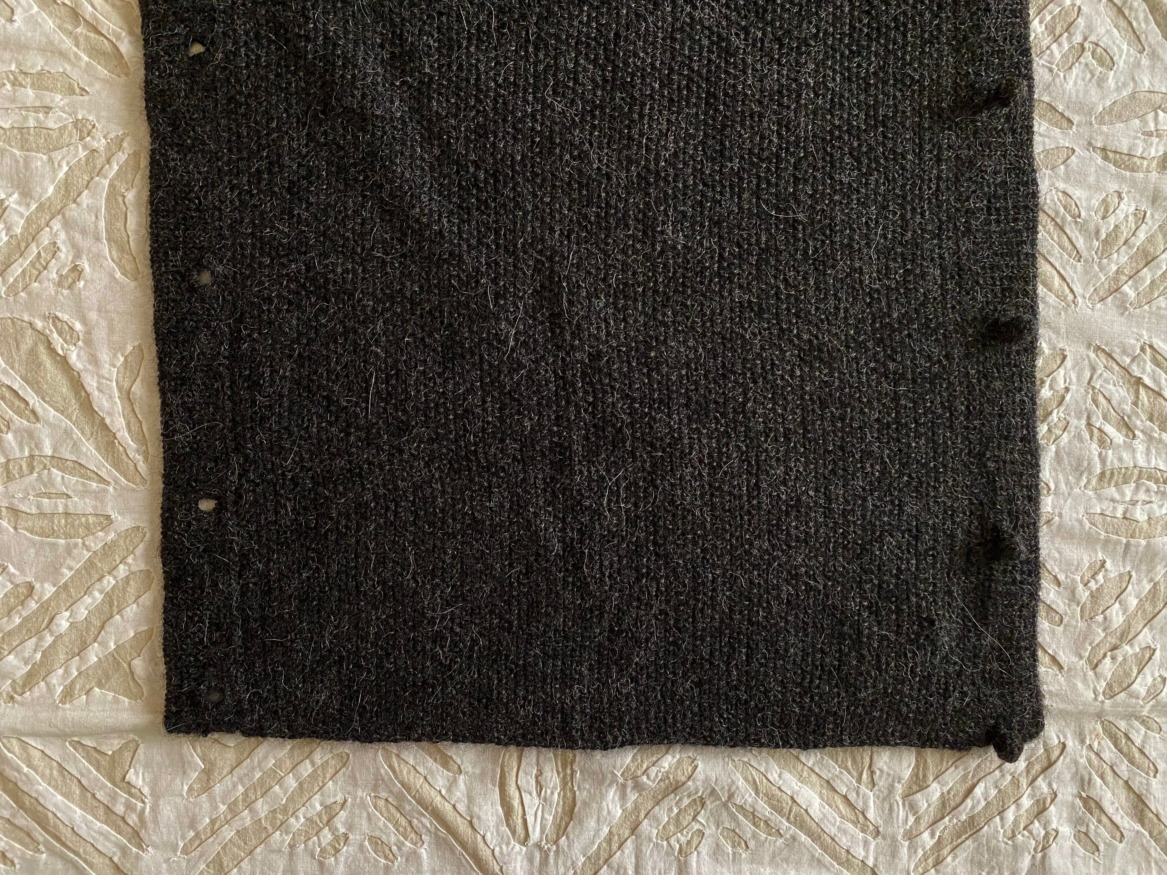 機械紡ぎのアルパカの毛糸で、手編みで作られています。