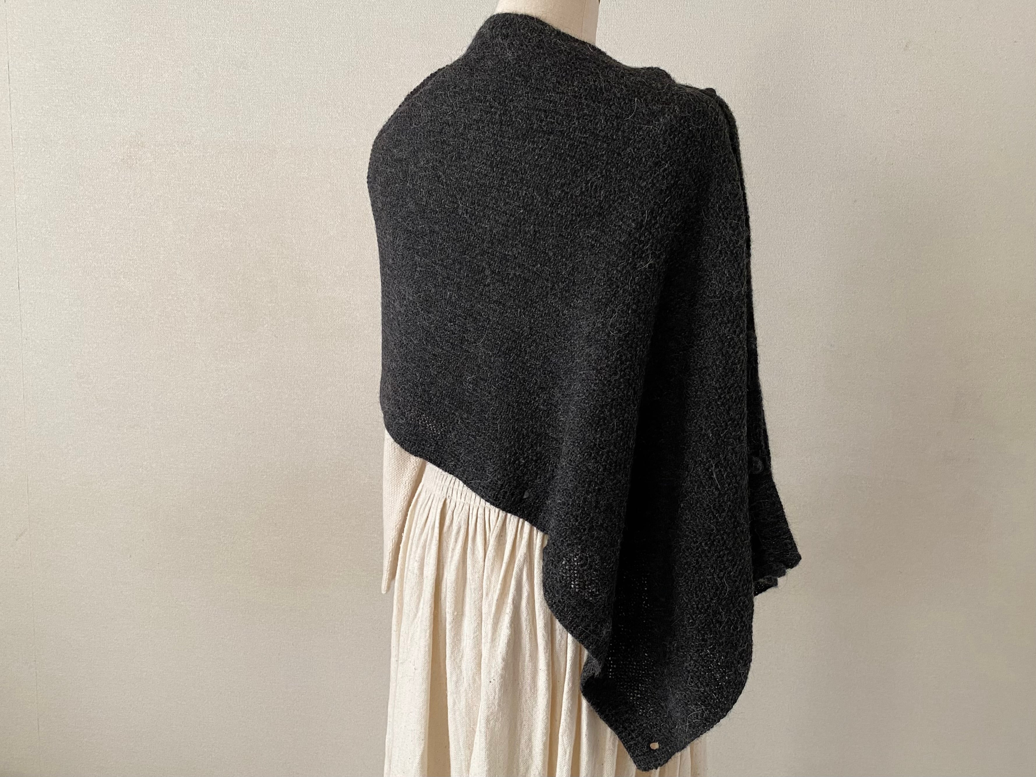 プエンテ手編みショール+ボタン(ダークグレー) Mano(マノ)