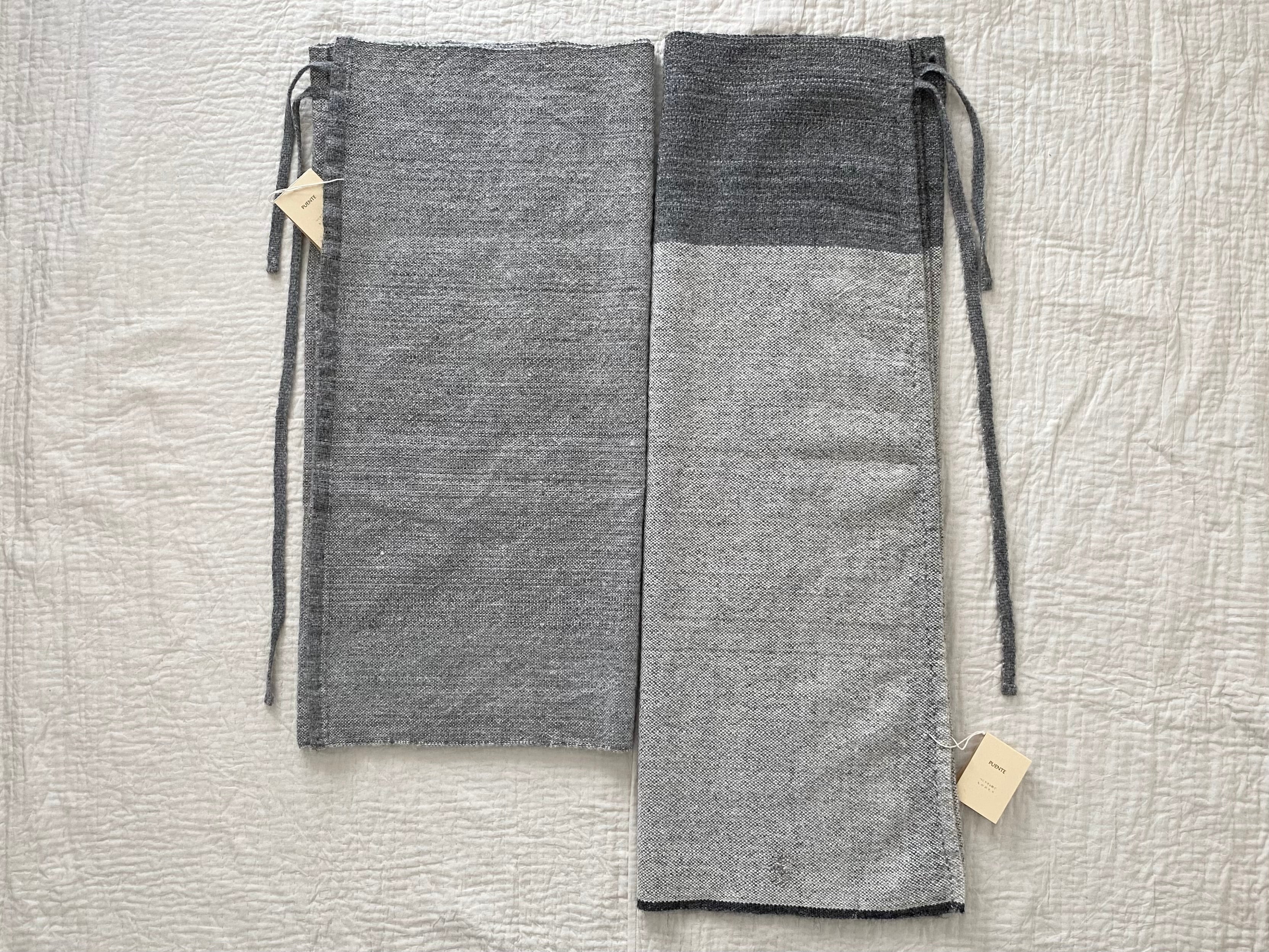 左: 手紡ぎアルパカ手織り巻きスカート