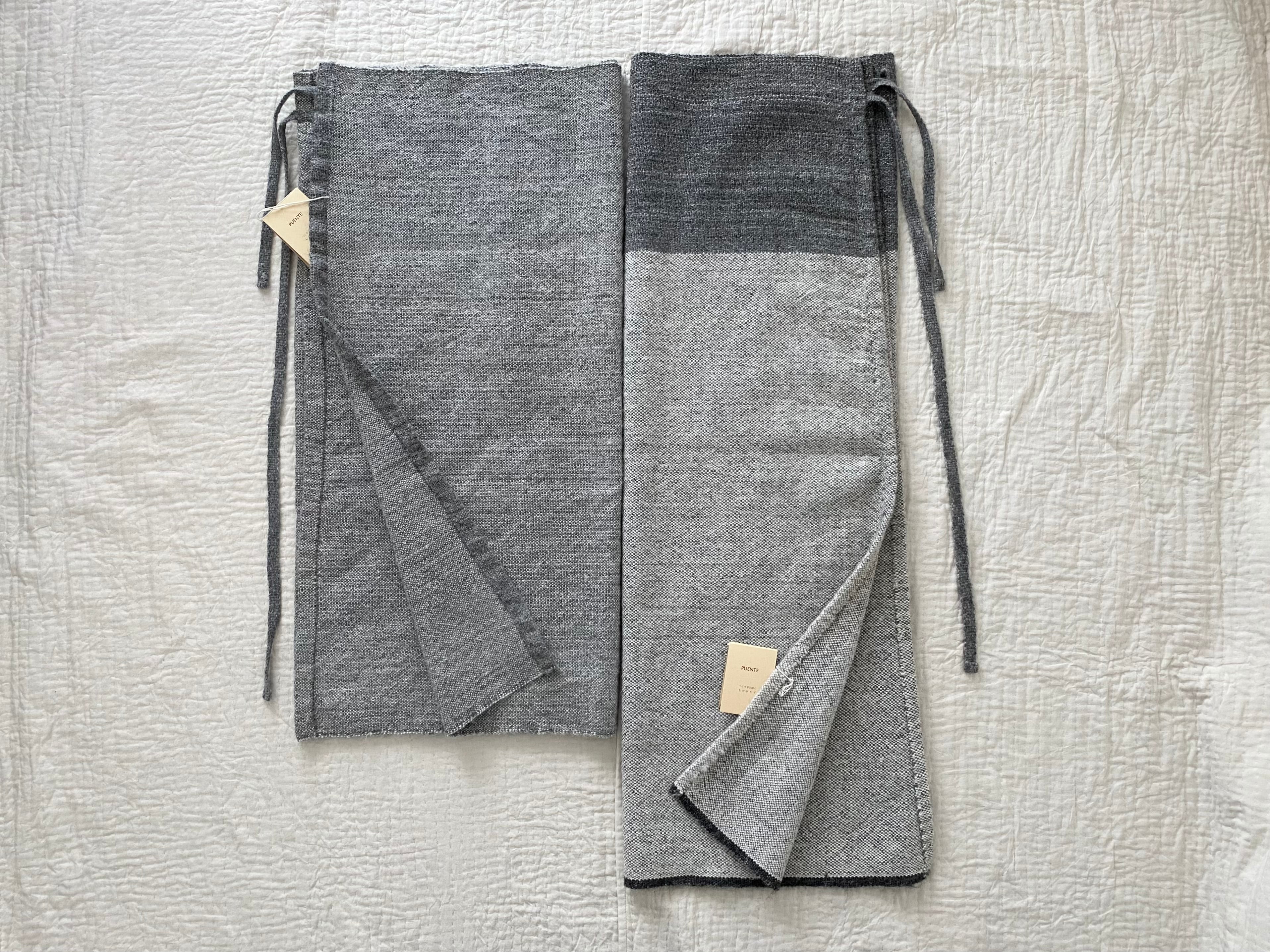 右:手紡ぎアルパカ手織り巻きスカート/ロング