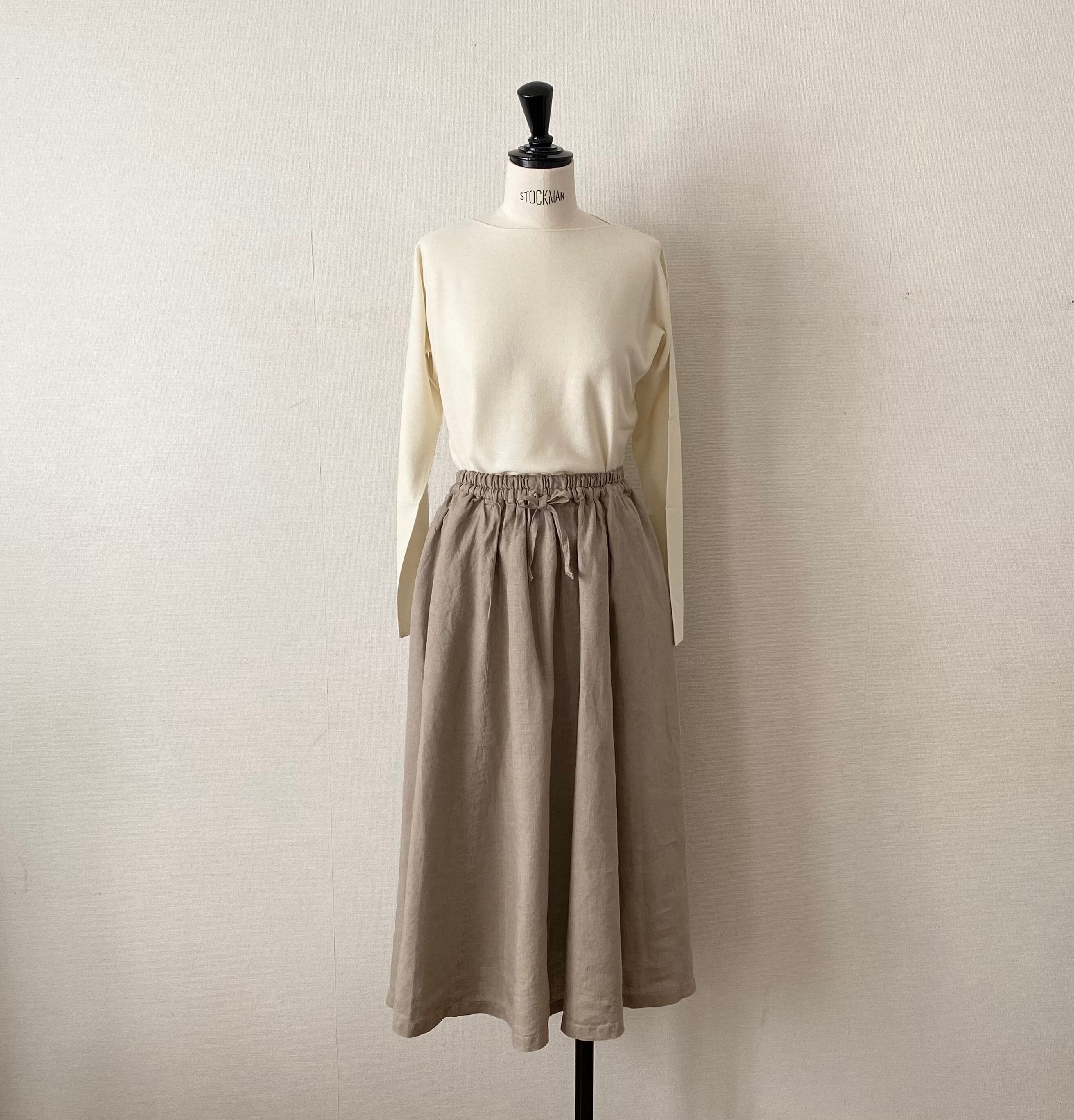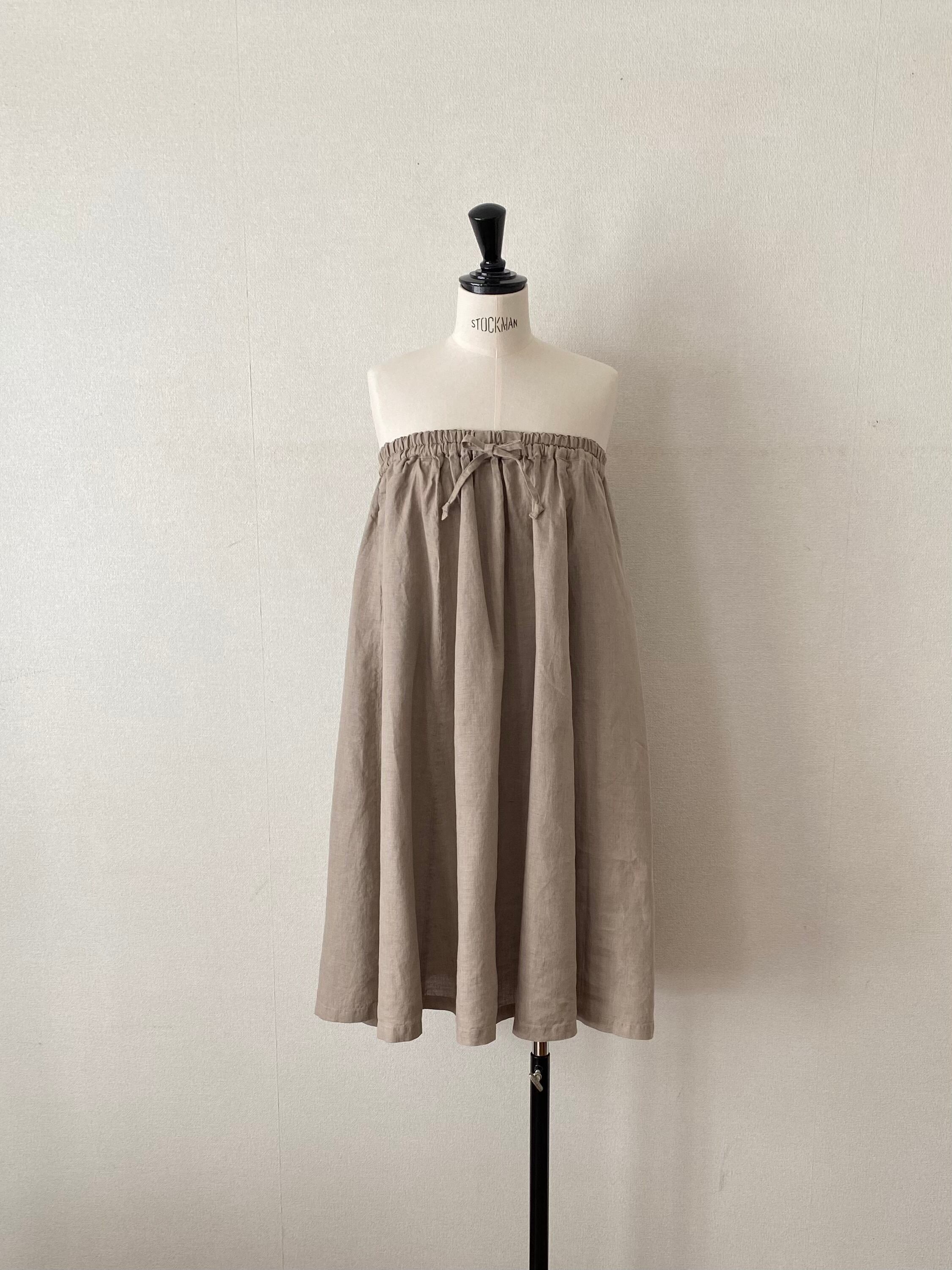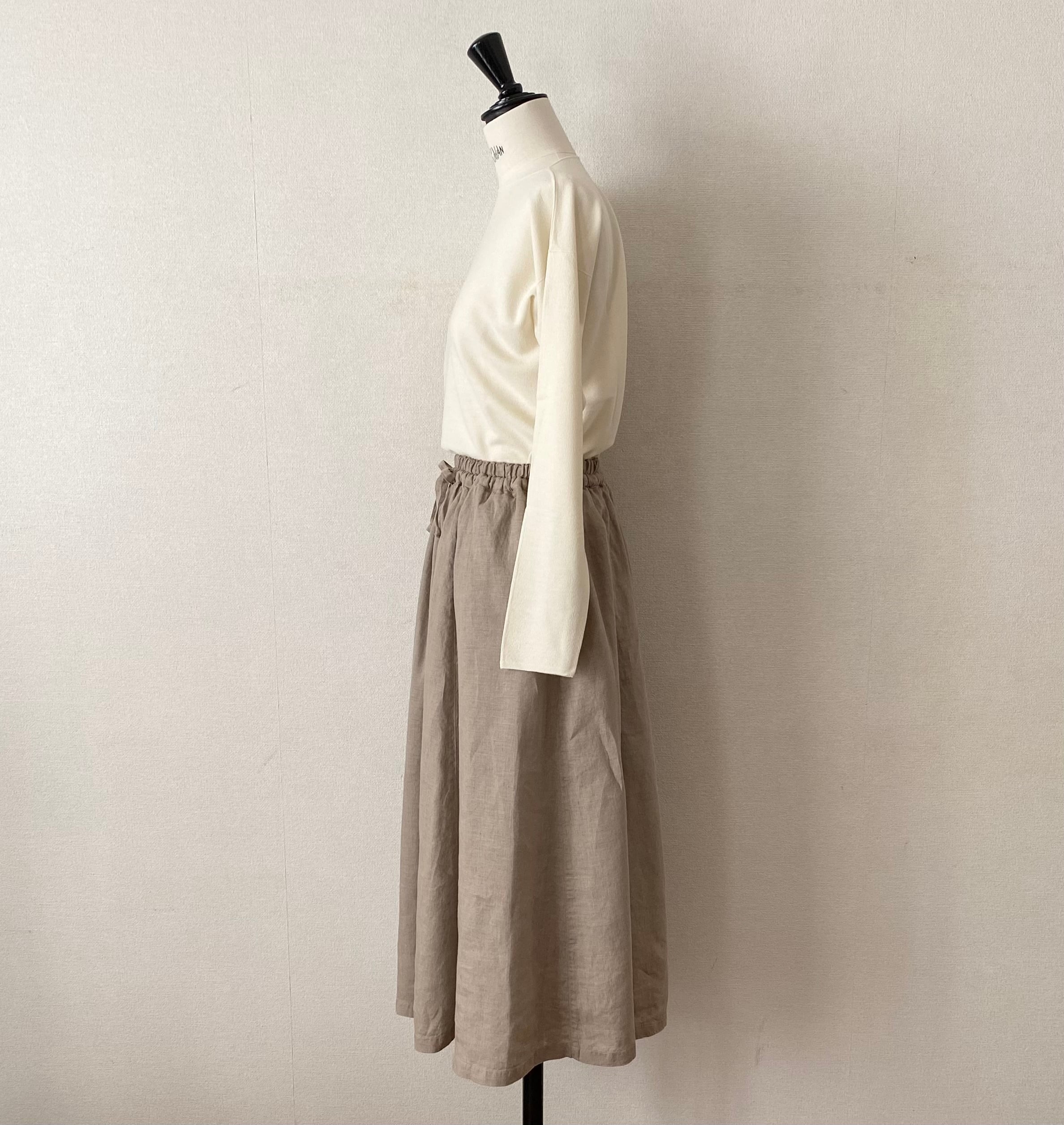 ゆったりしたシルエットの、動きやすくしなやかな大麻布のスカートです。