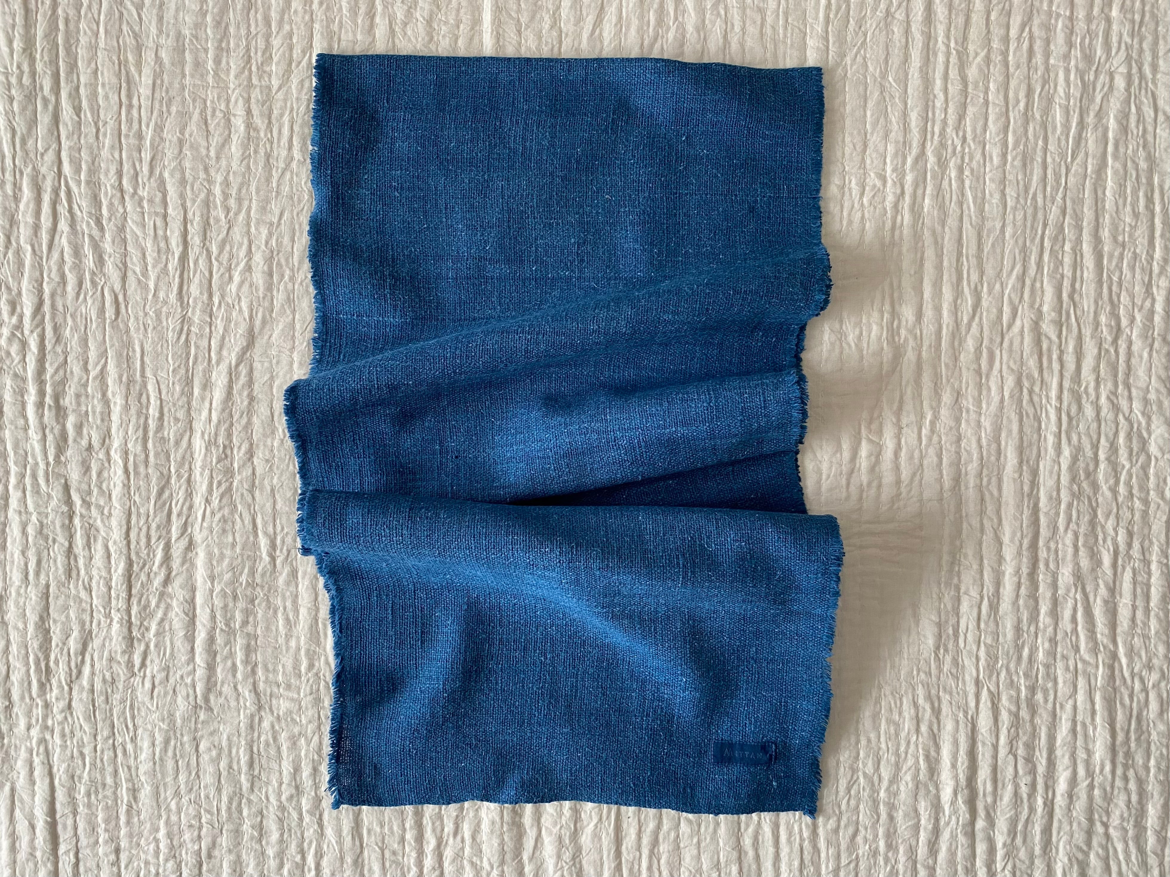 手紡ぎ手織りのkalaコットンを京都のMITTANさんで藍染した手ぬぐいです。