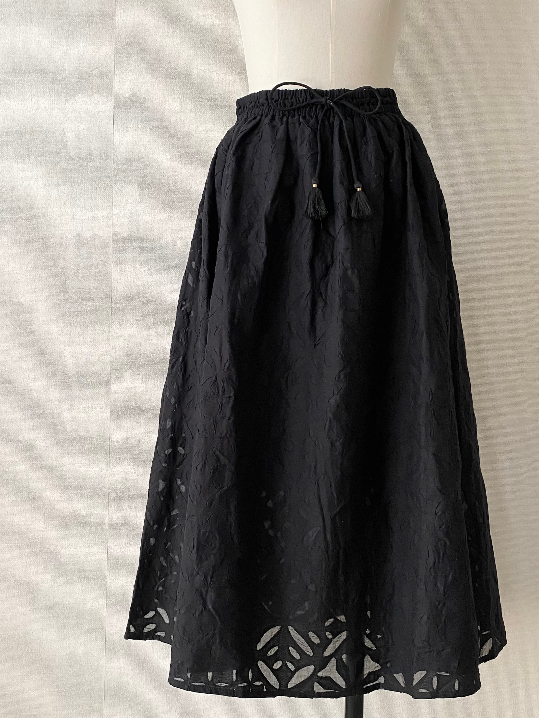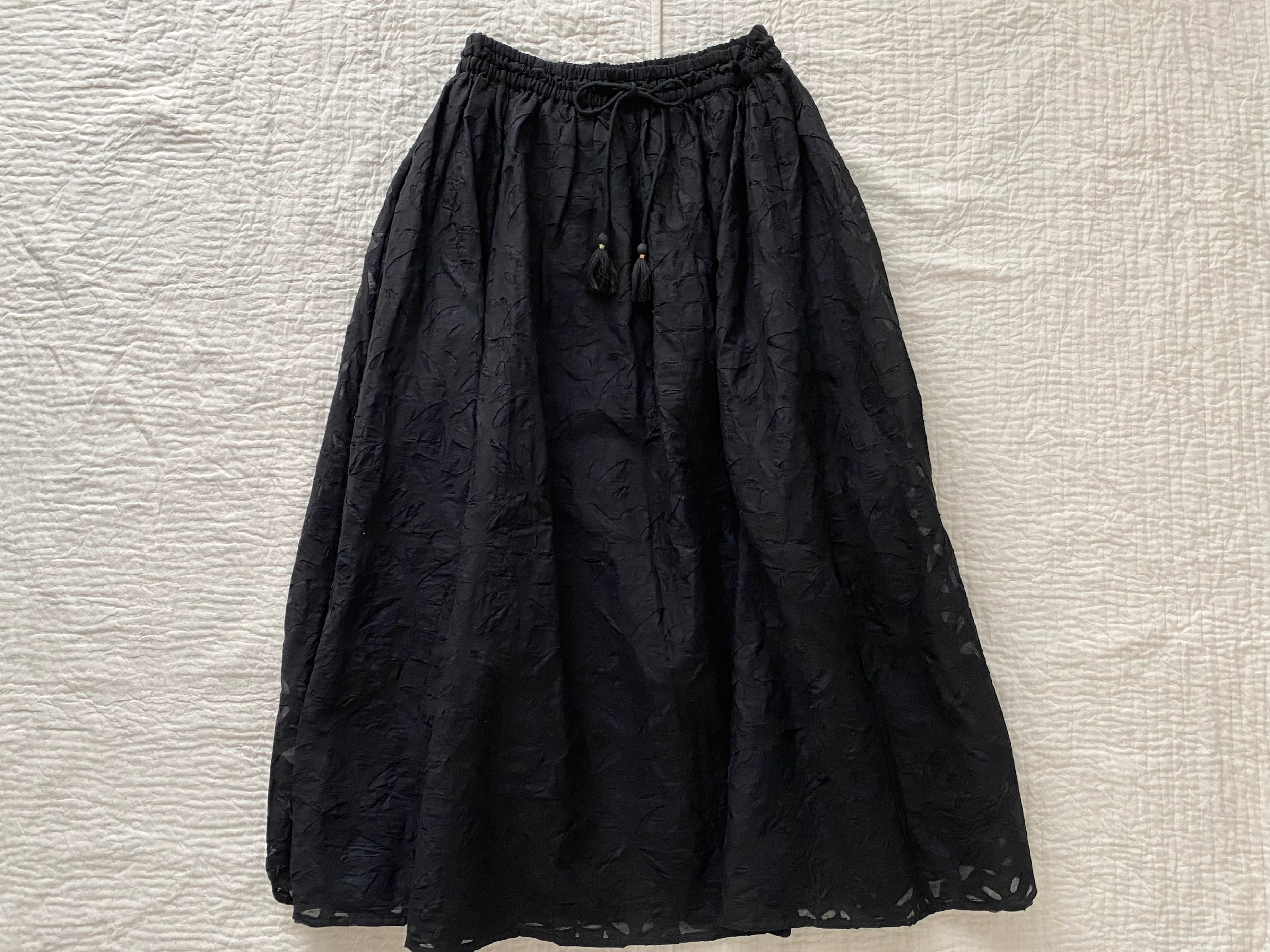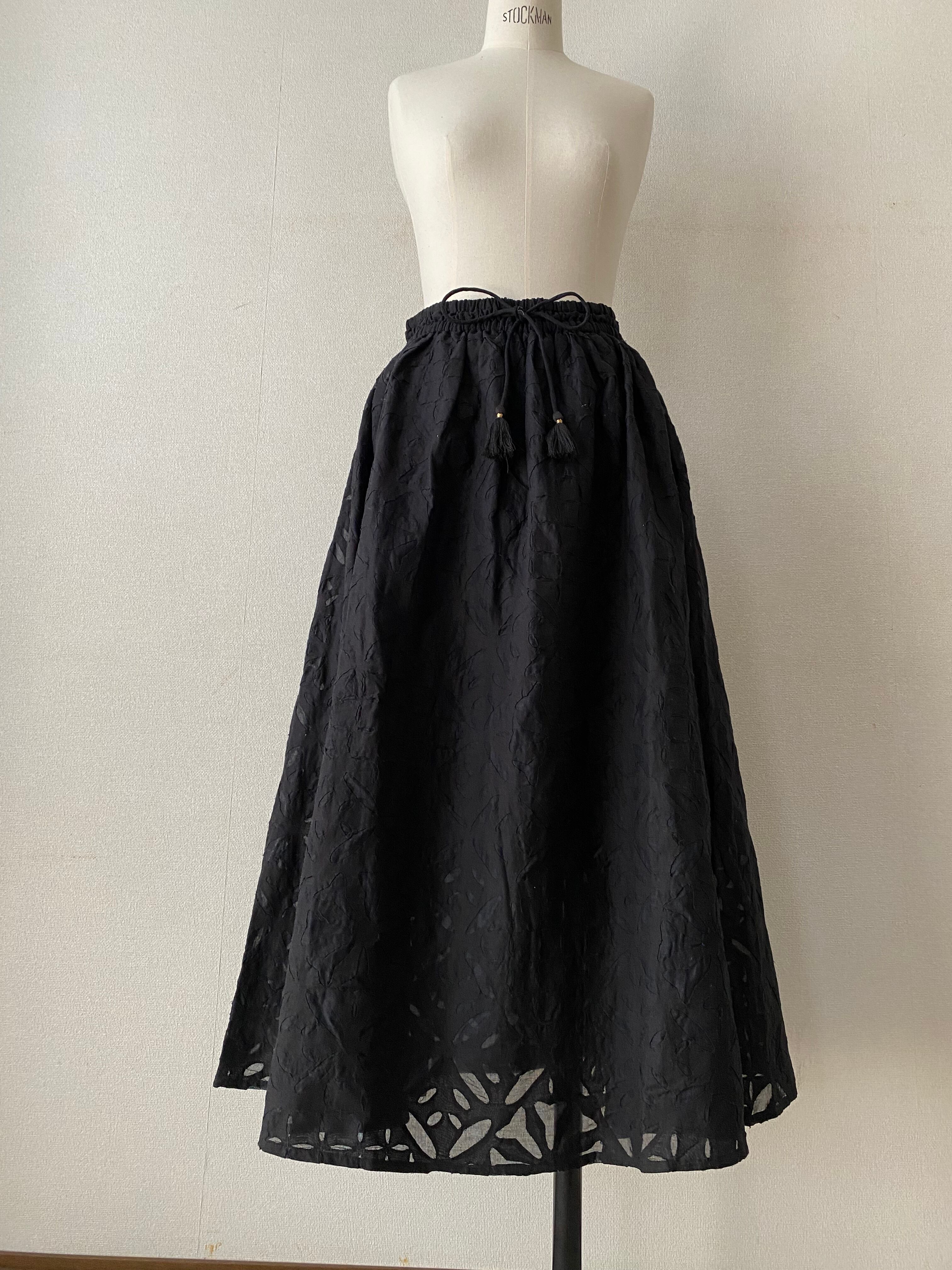 【NEW】リバースアップリケ フレアスカート ブラック