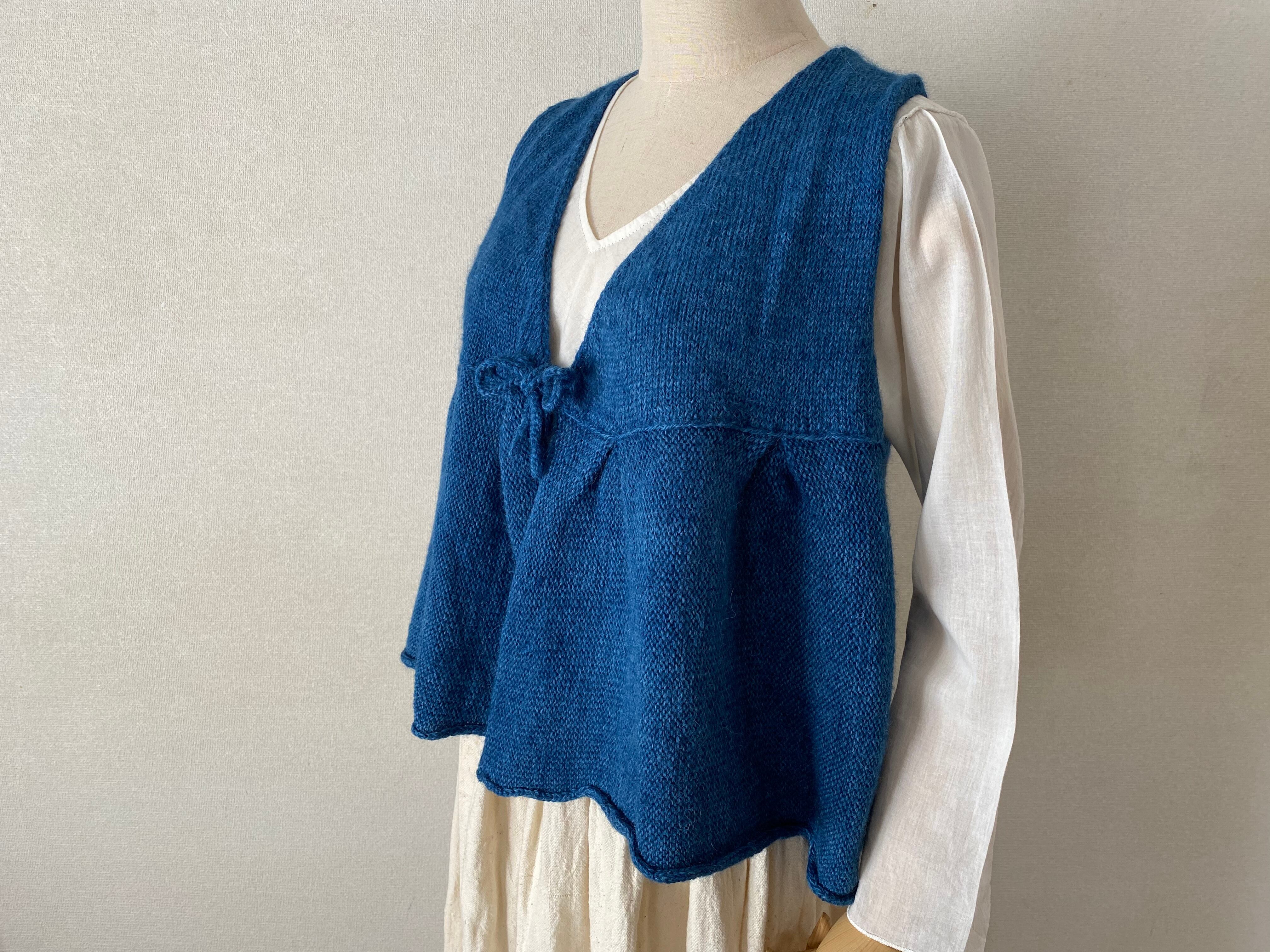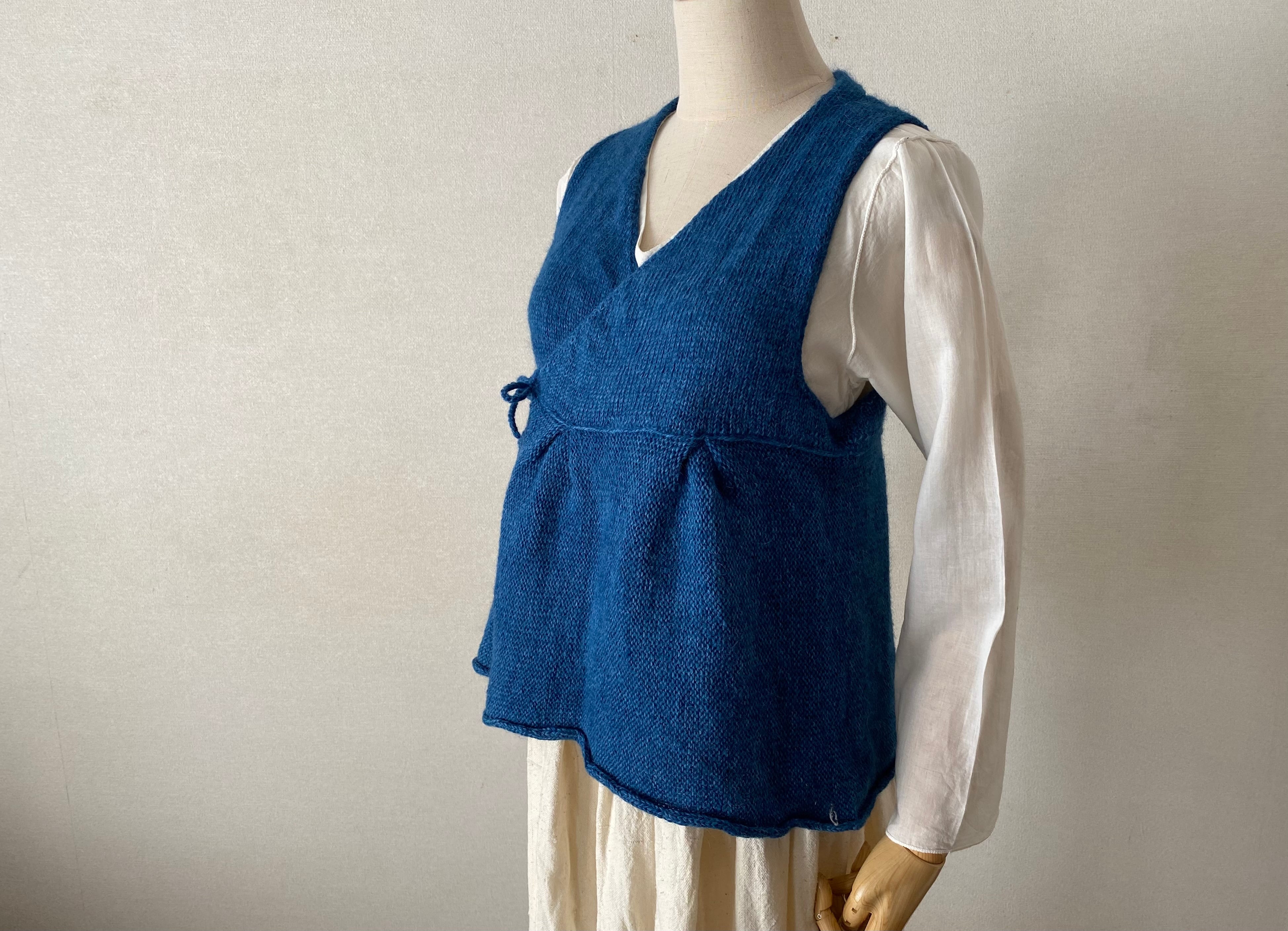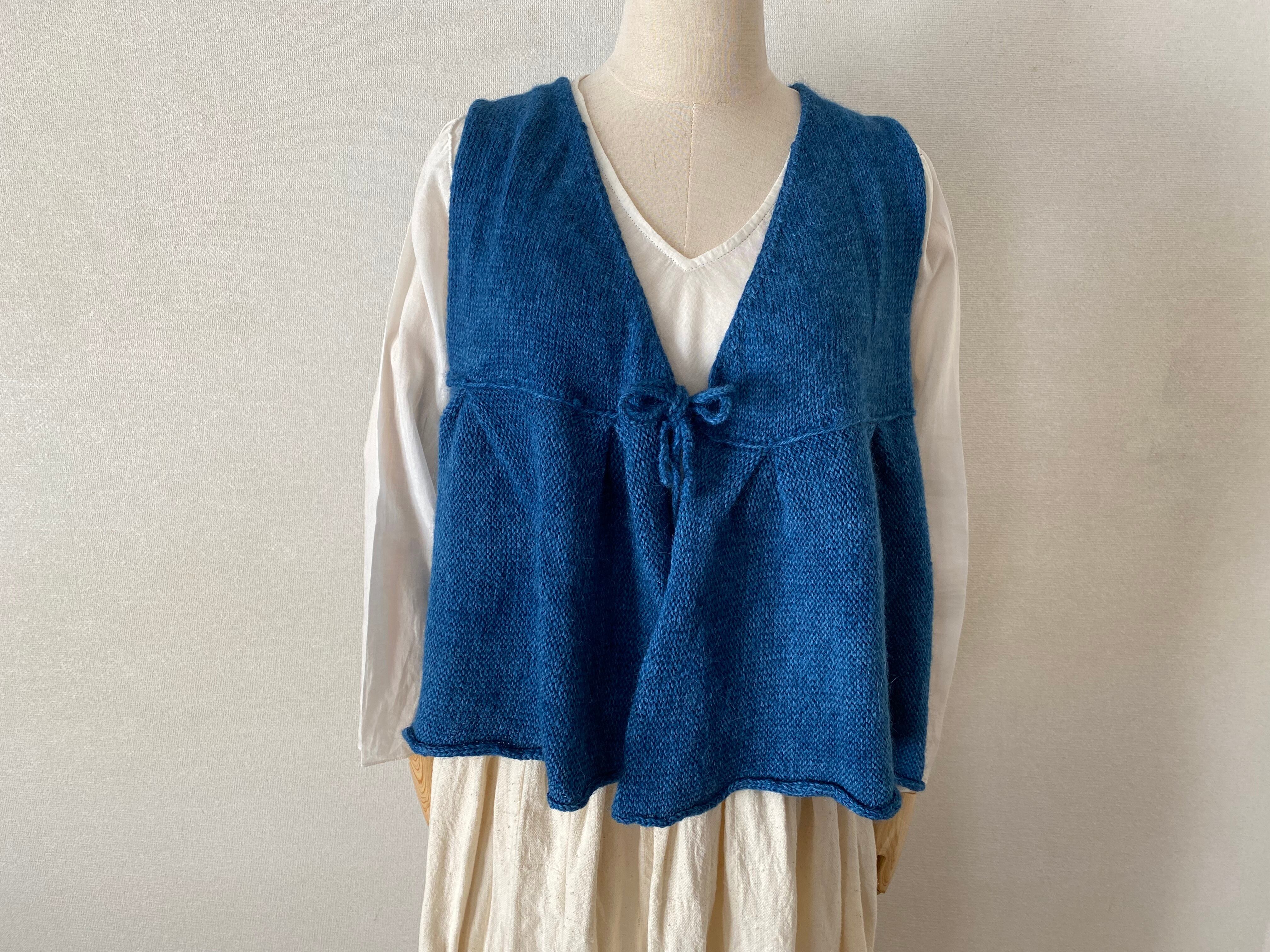 プエンテ手紡ぎカシュクールベスト「紺藍(本建て正藍染め)」Rueca(ルエッカ)