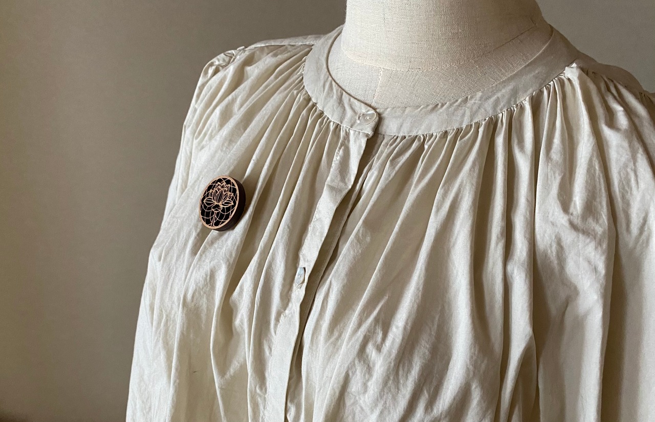 木製の蓮の花のブローチです。