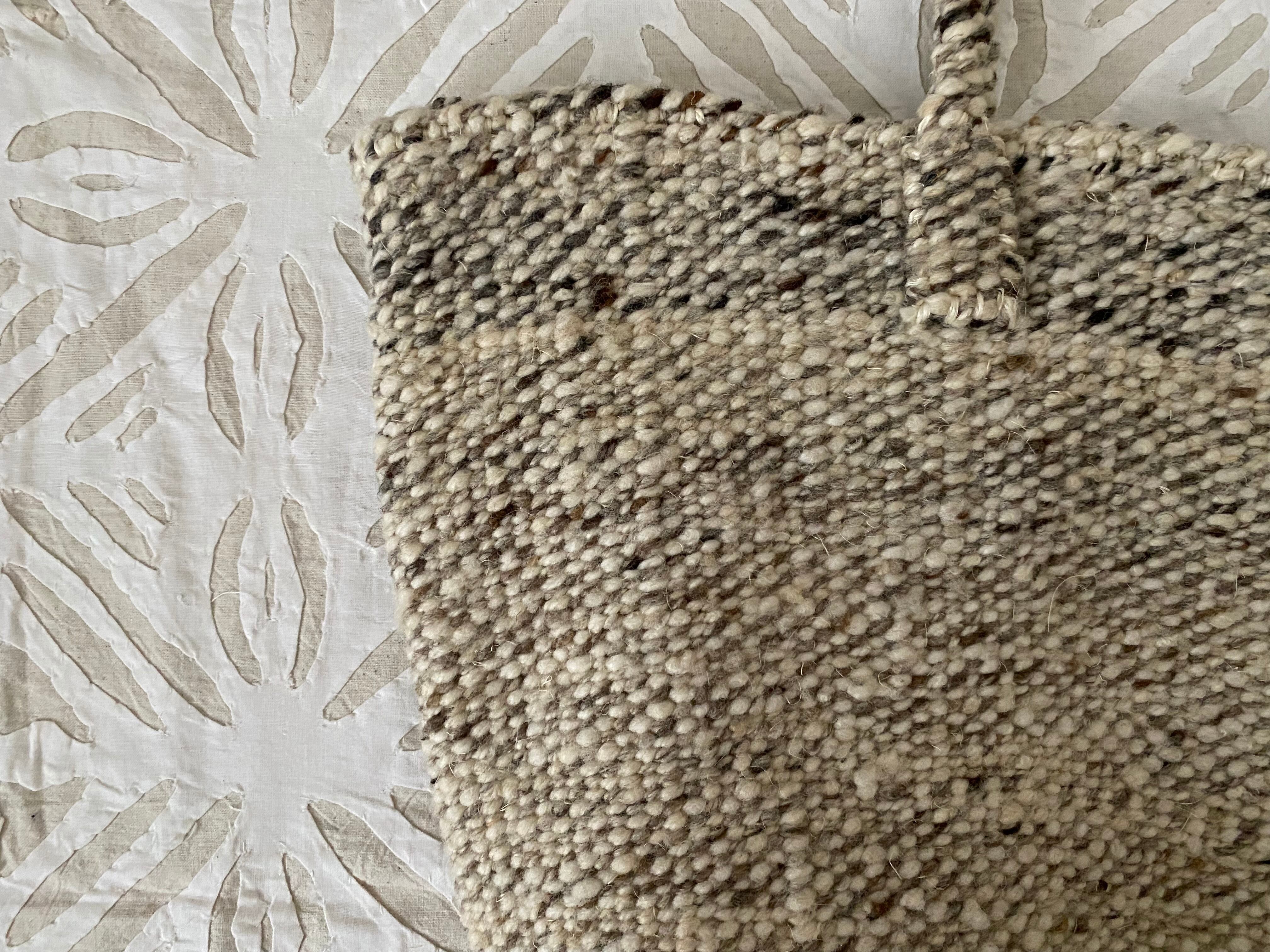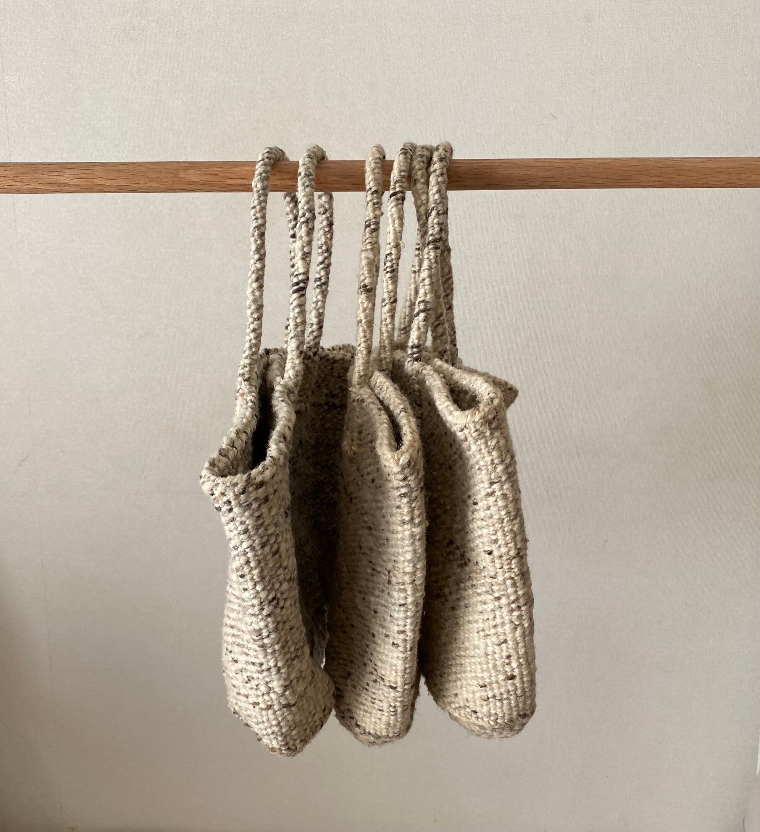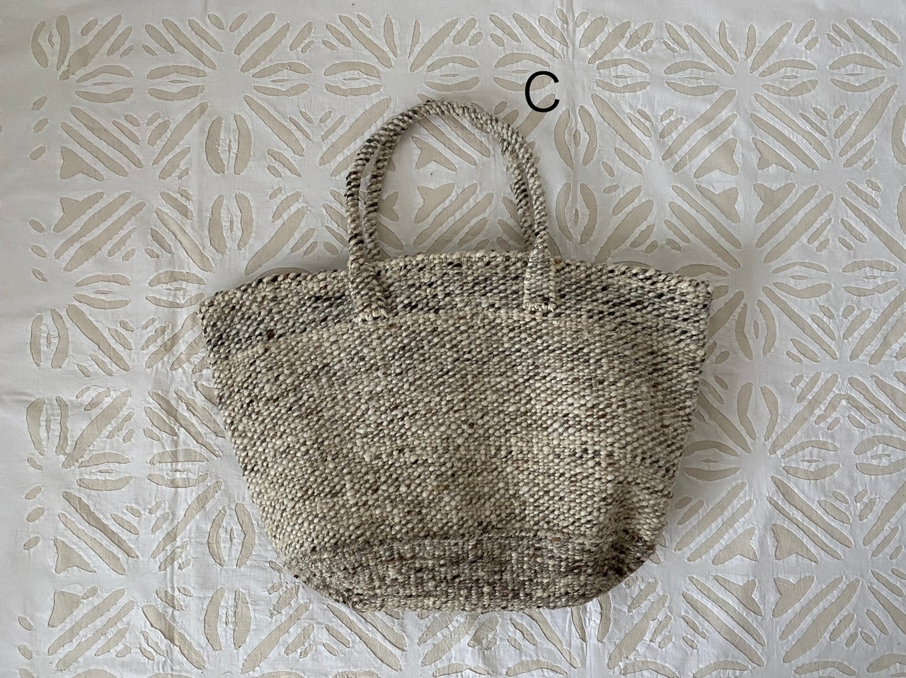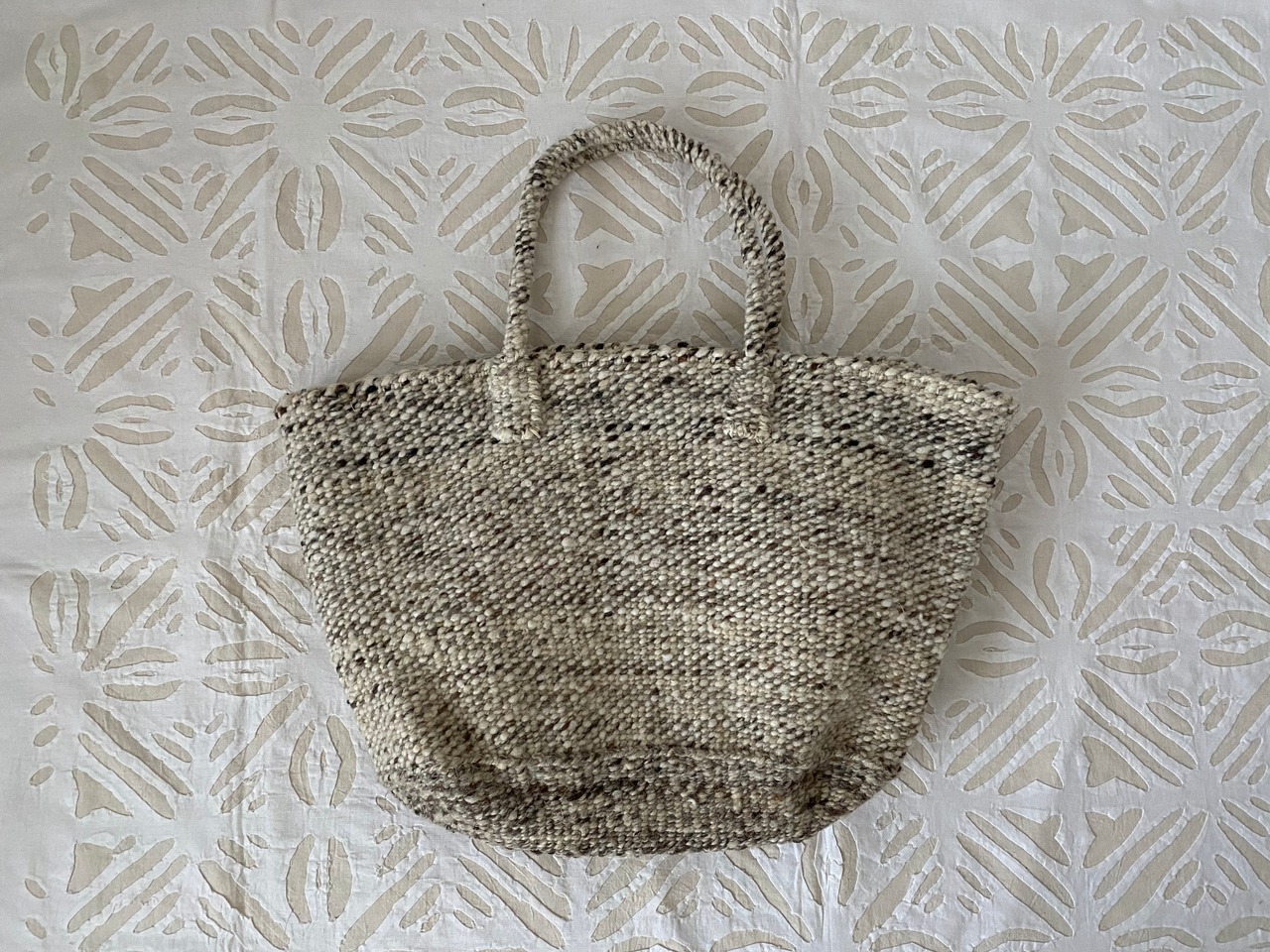 羊毛ウールの柔らかい風合いと自然な色合いがお洒落なミックスタイプの羊毛サイザルバッグです。
