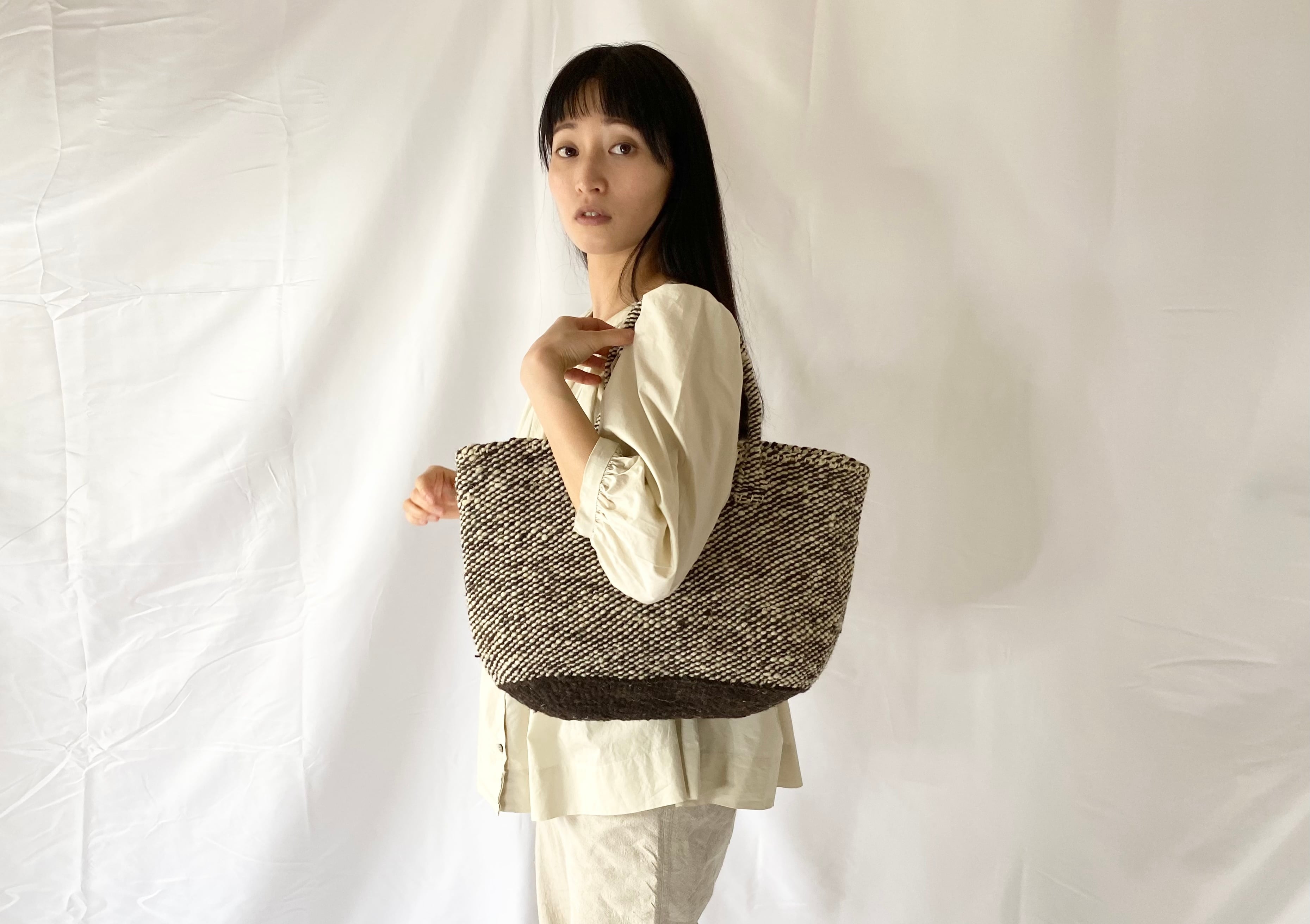 羊毛サイザルバッグ こげ茶×生成ミックス(自然色)