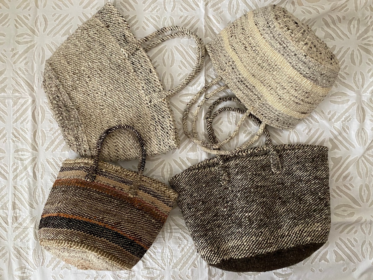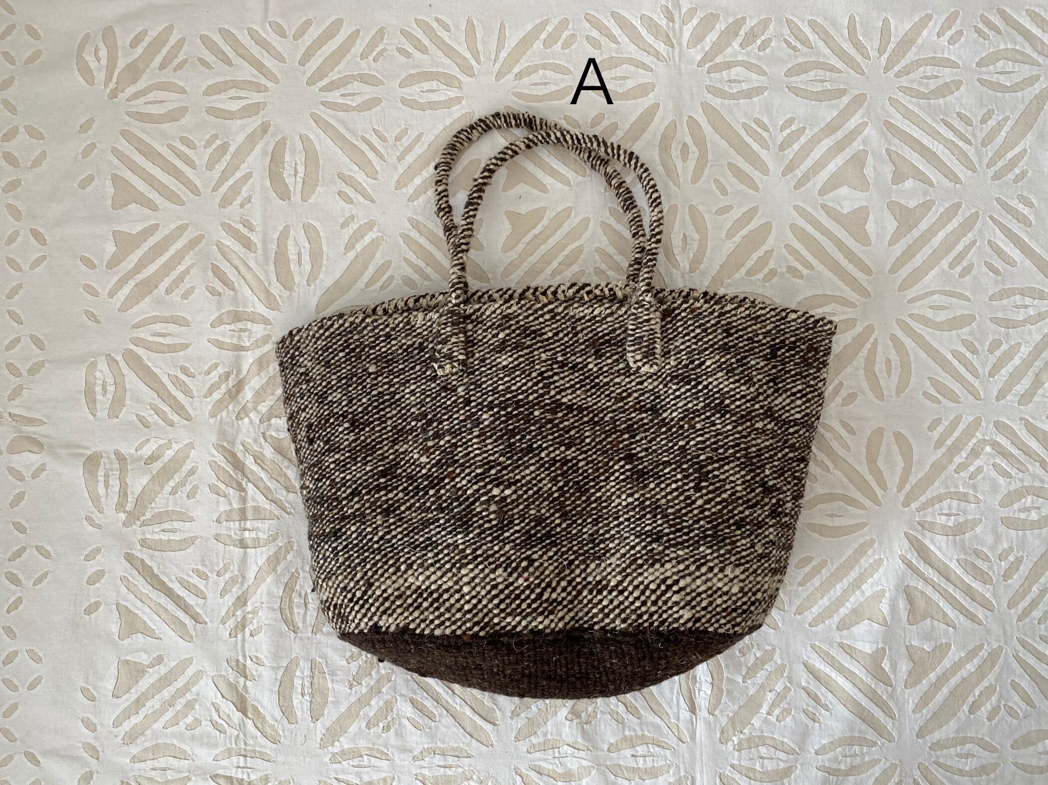 ウールの柔らかい風合いと自然な色合いがお洒落な羊毛サイザルバッグです。