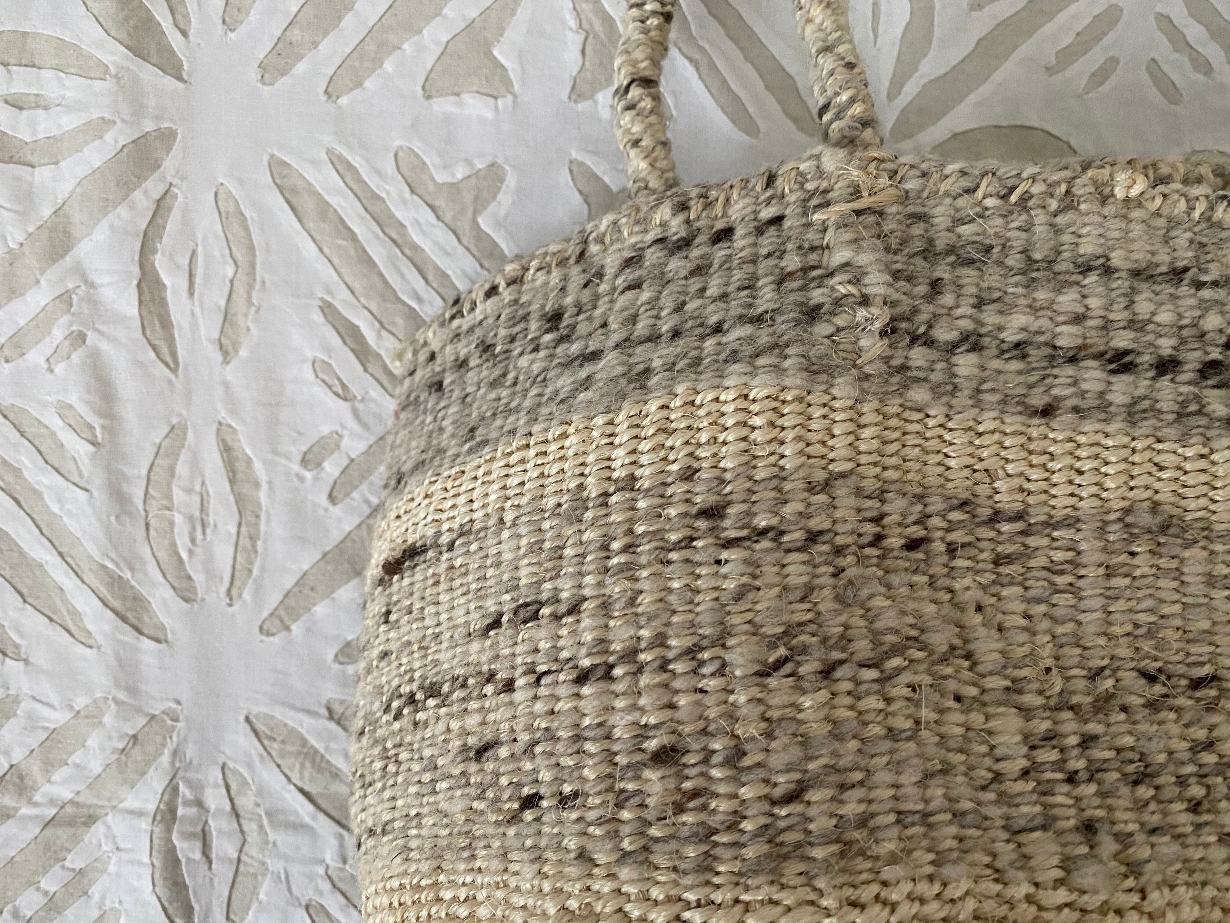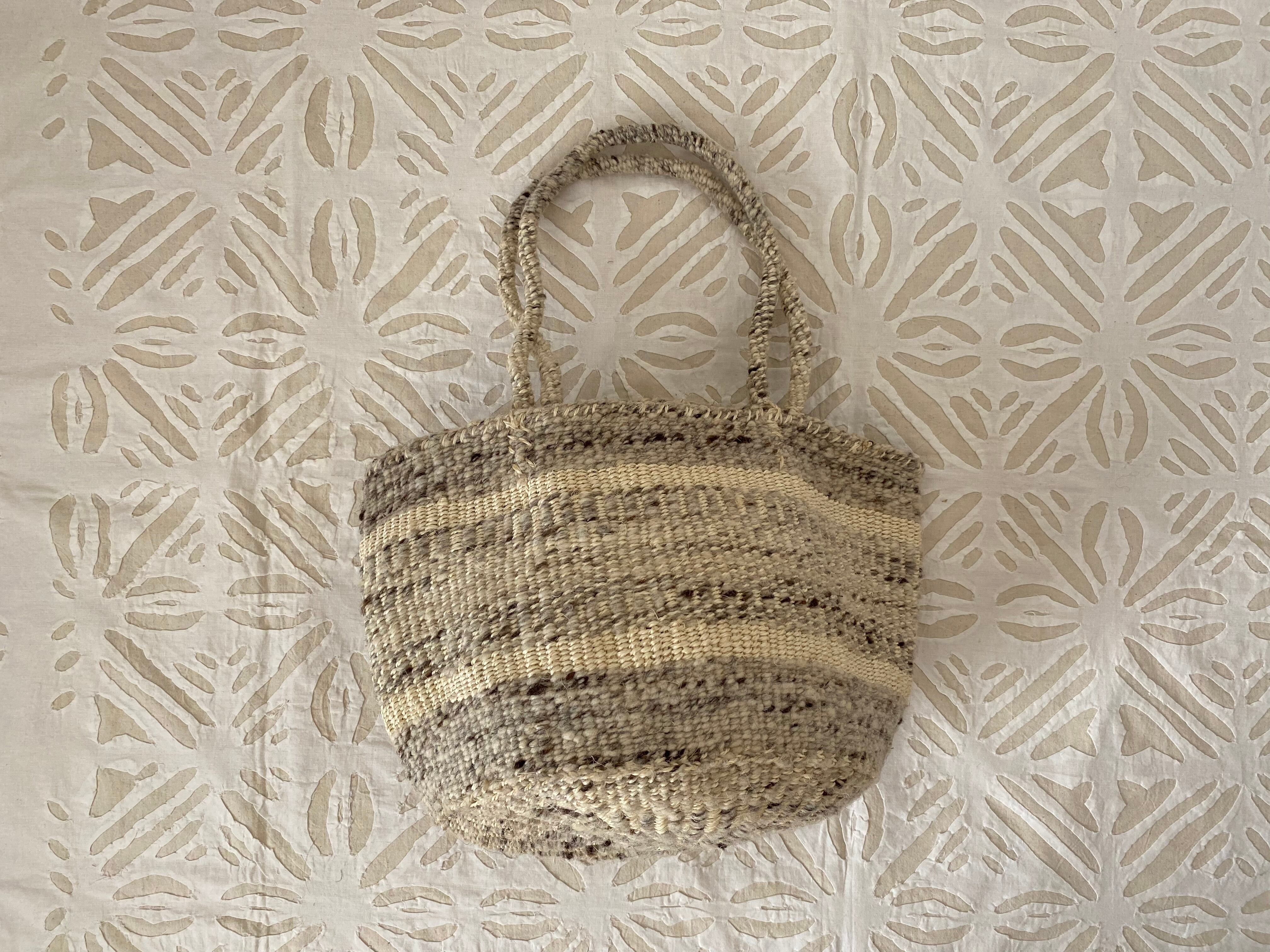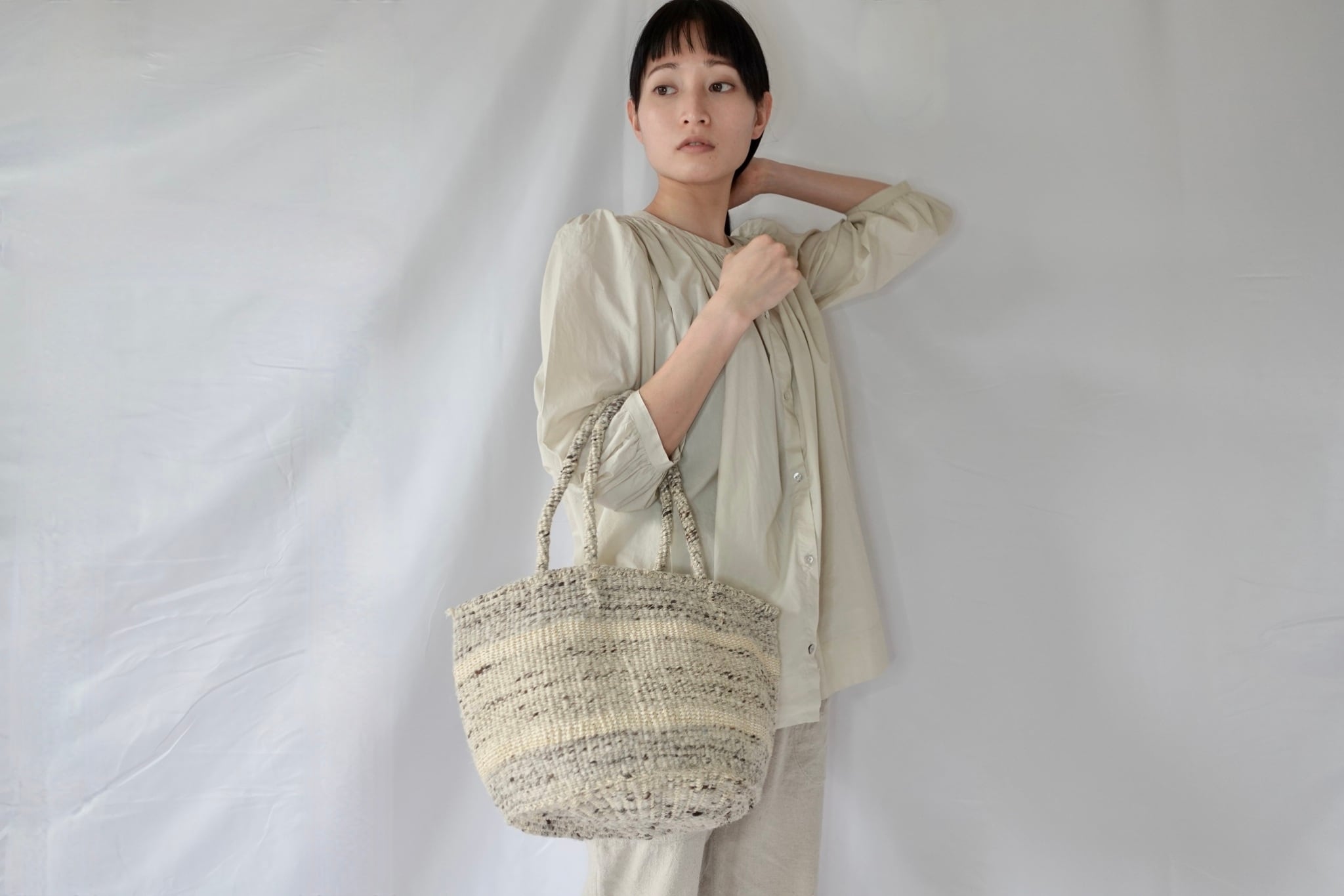 【ラスト1】羊毛サイザルバッグ ミックスグレー(ボーダー/自然色)