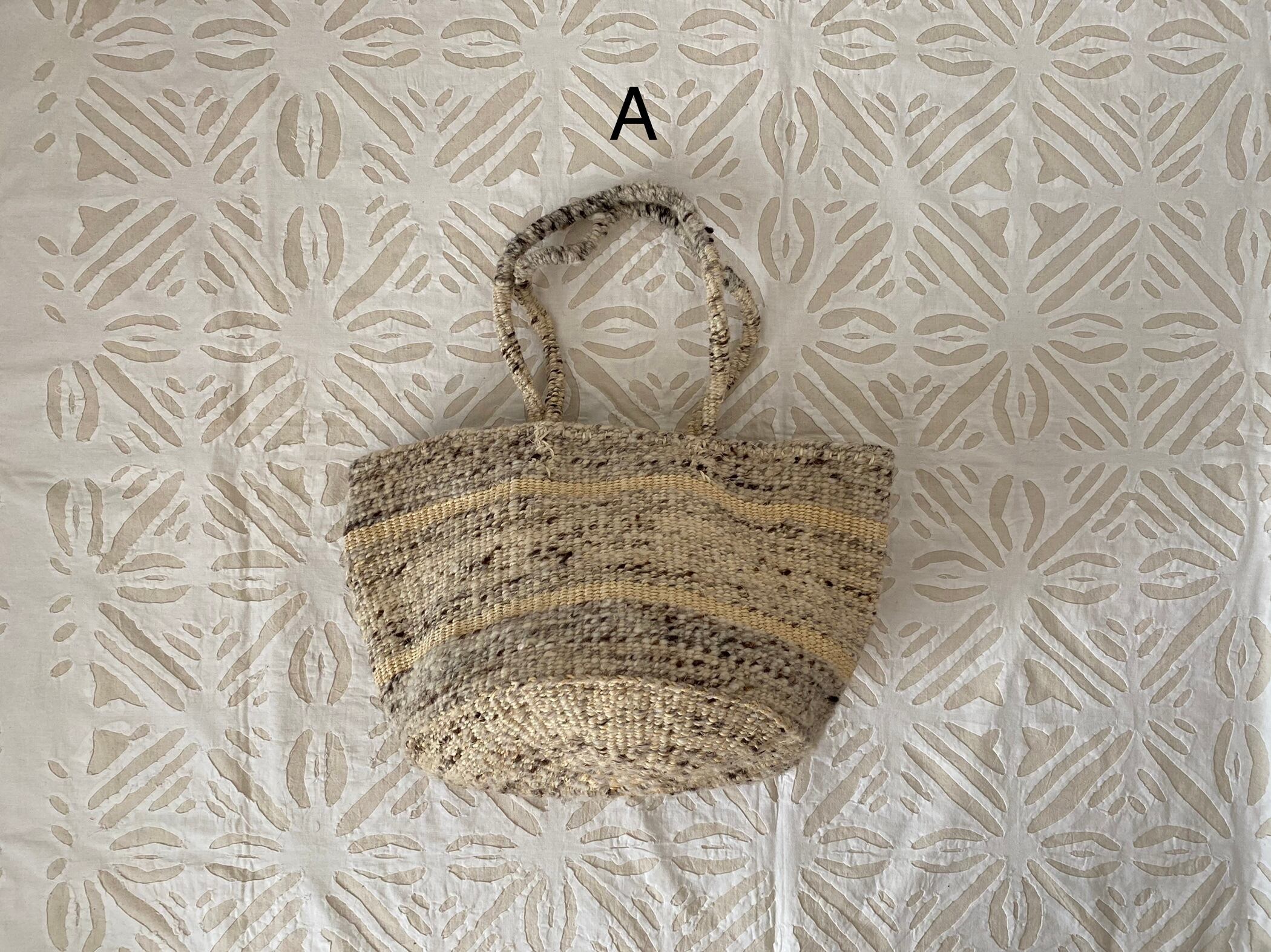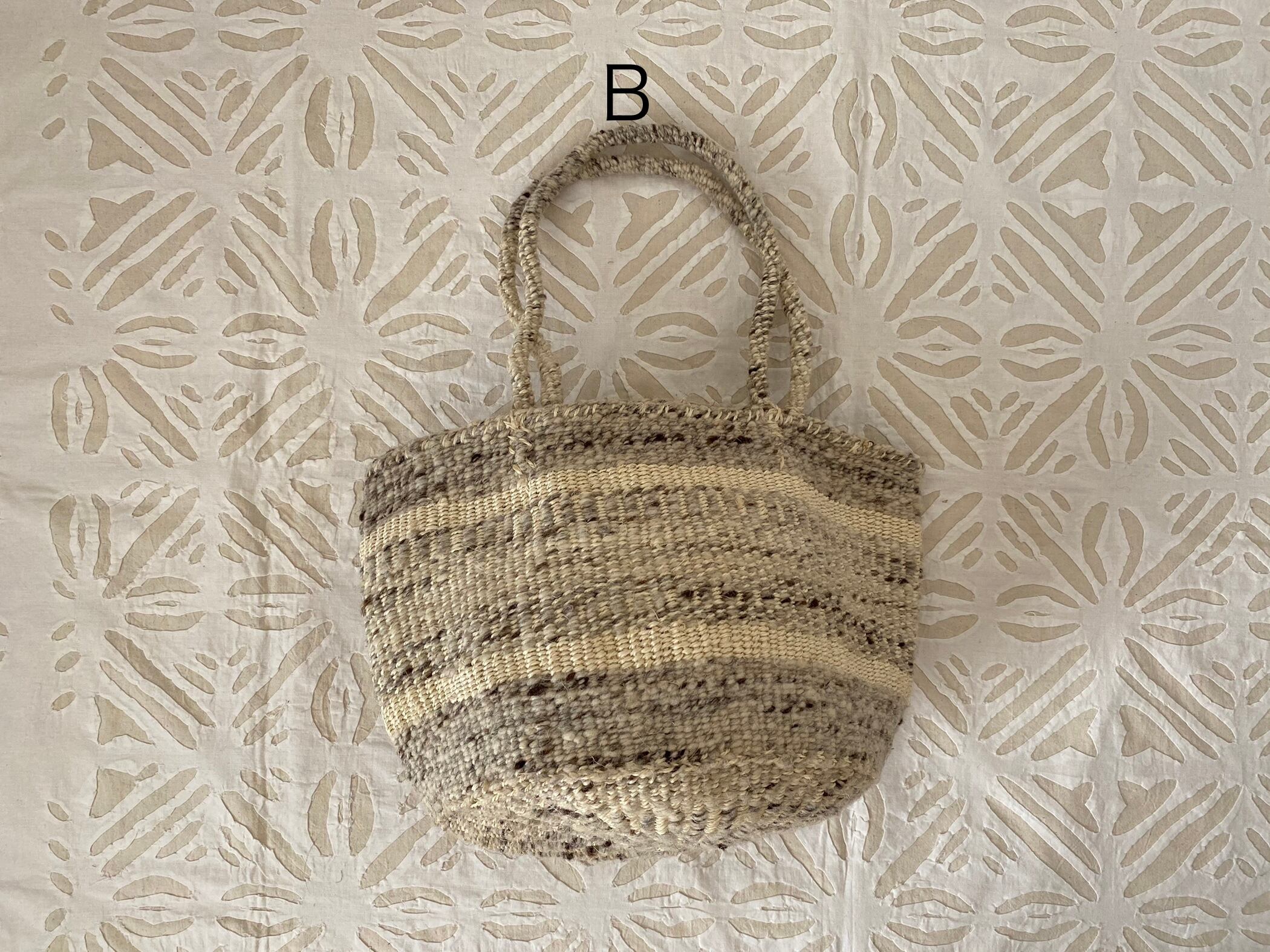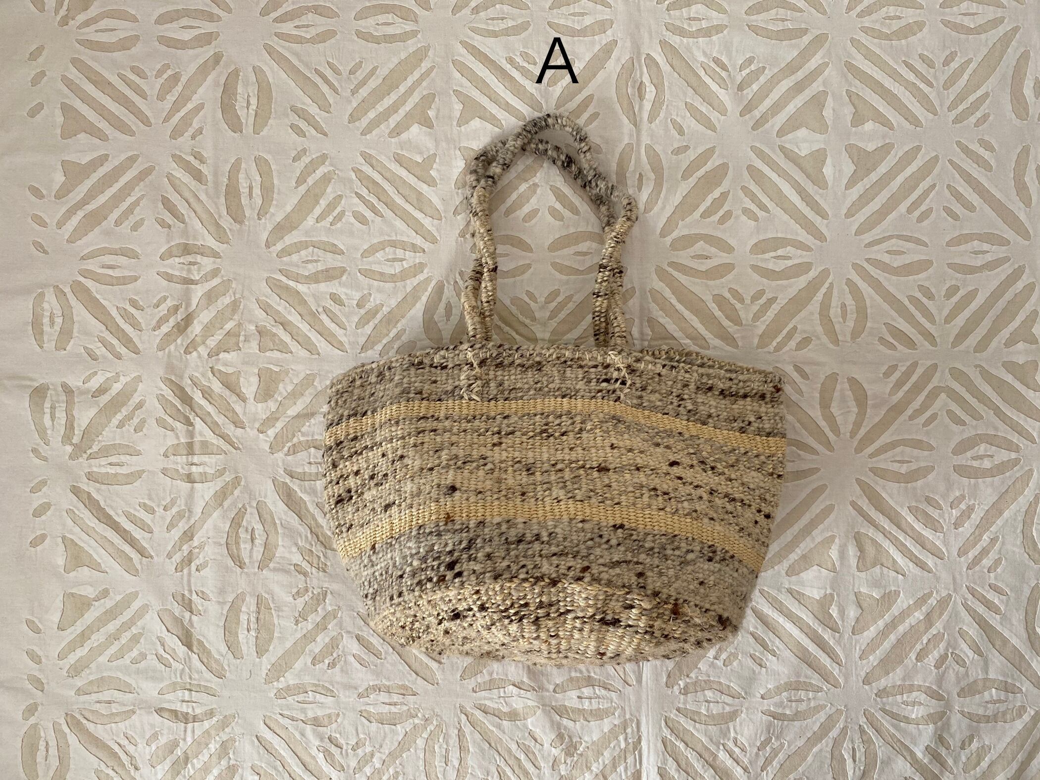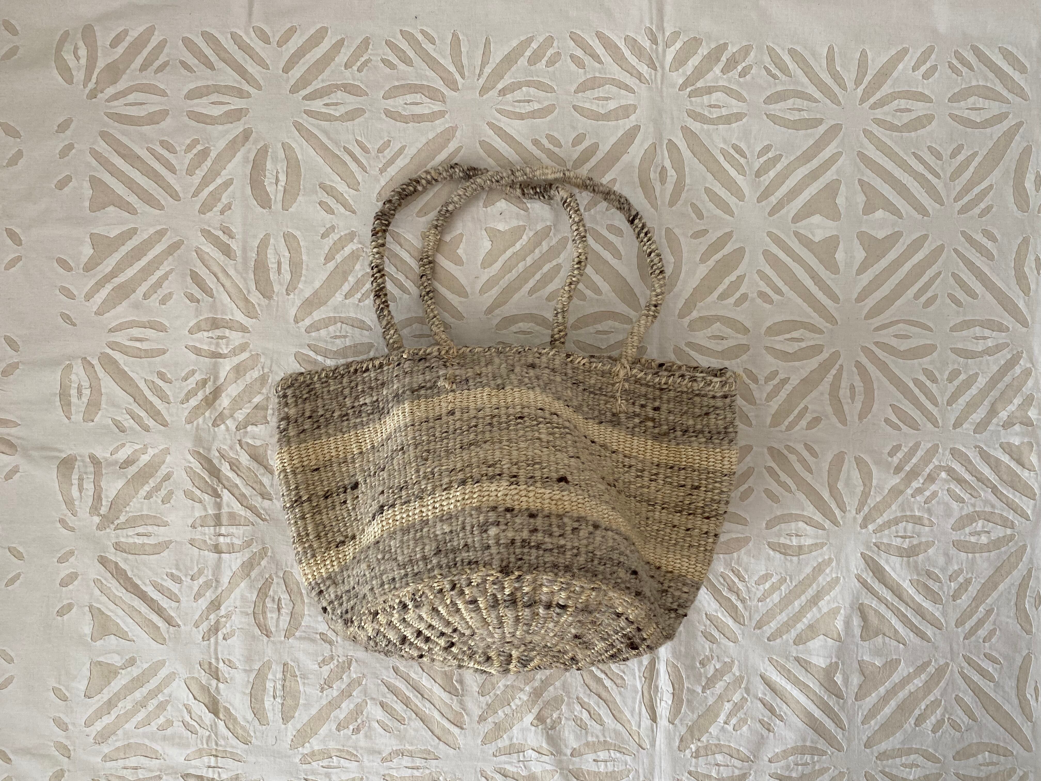【ラスト1】羊毛サイザルバッグ ミックスグレー(ボーダー/自然色)
