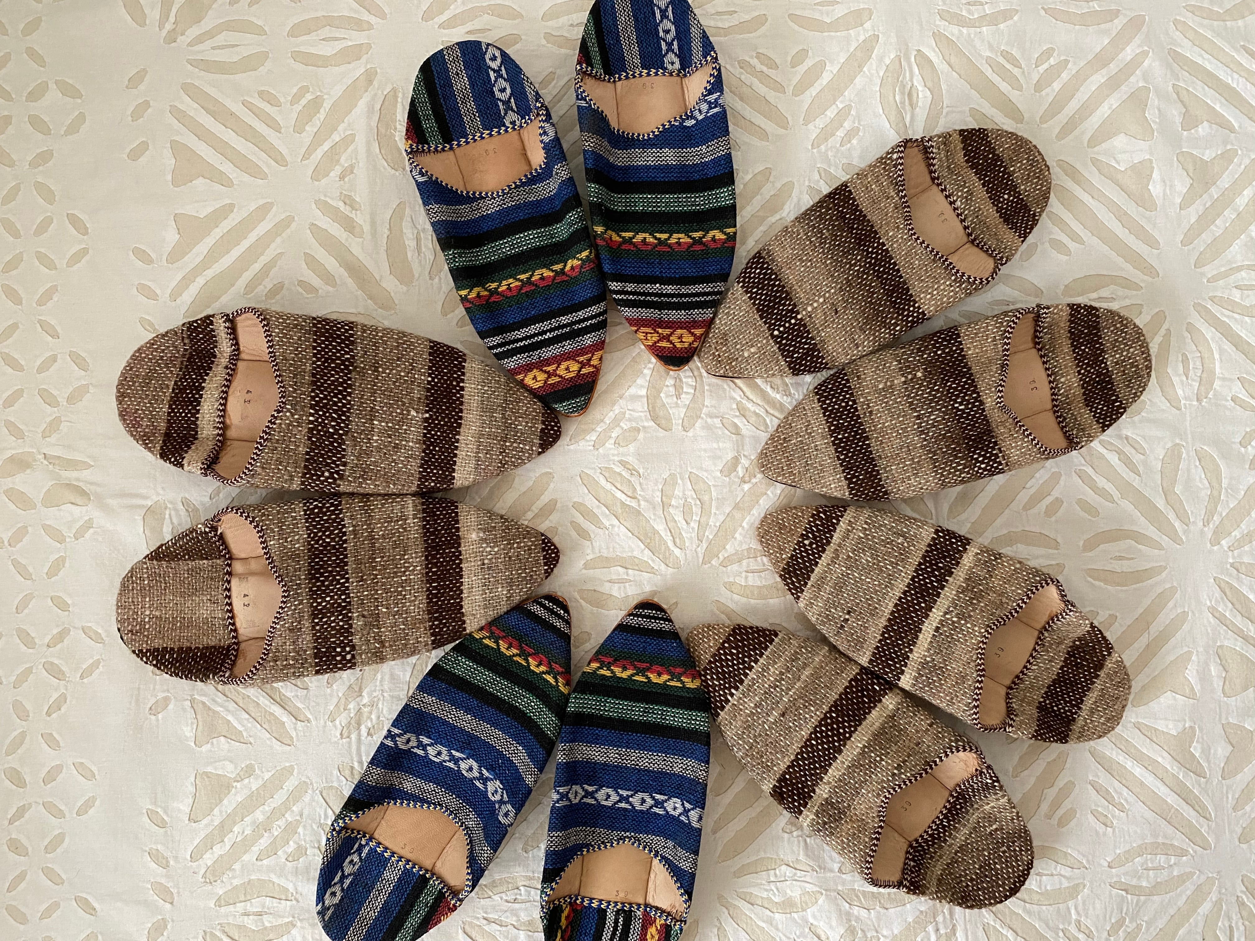 キリムを贅沢に使用したエキゾチックなバブーシュです。