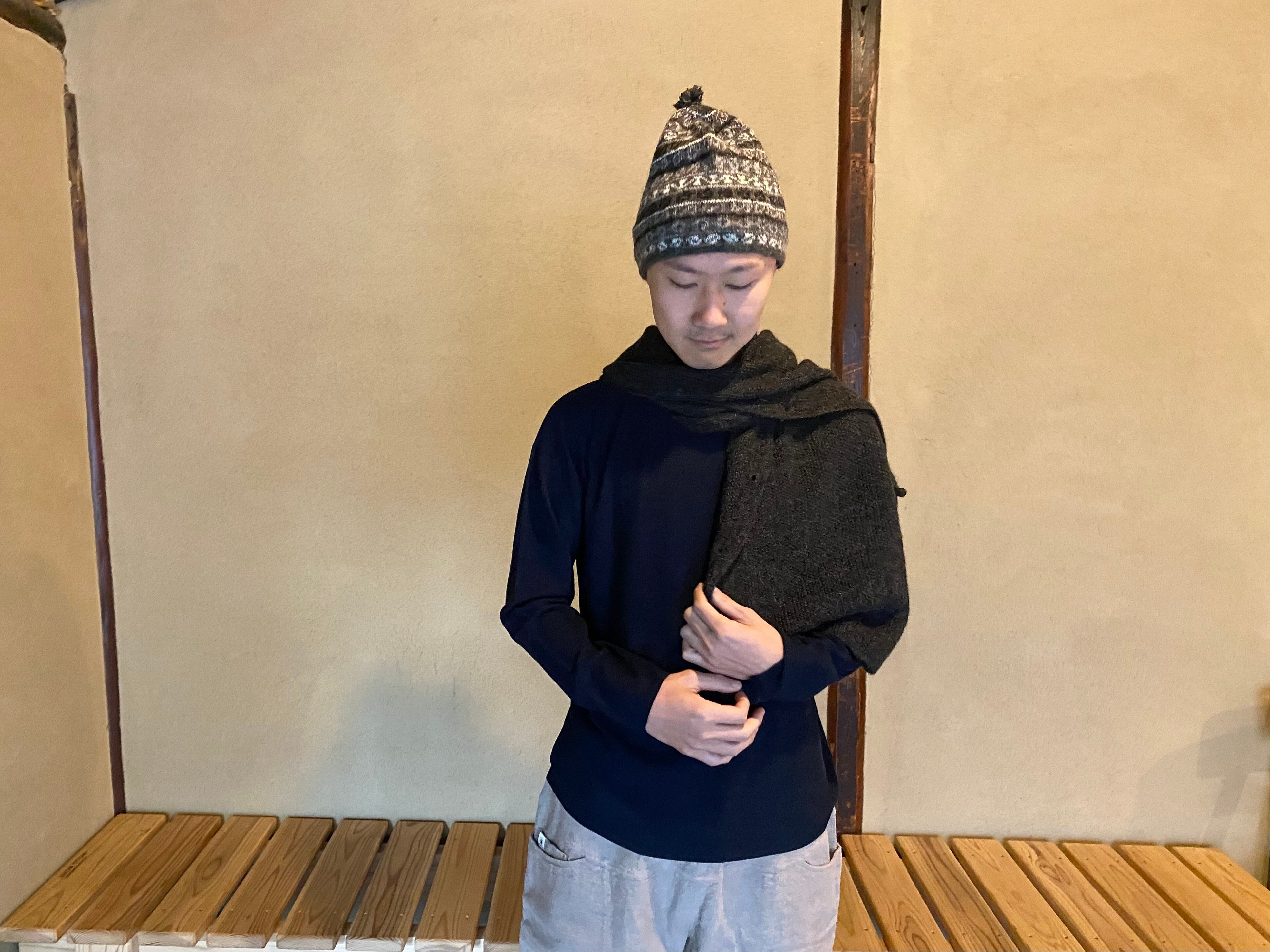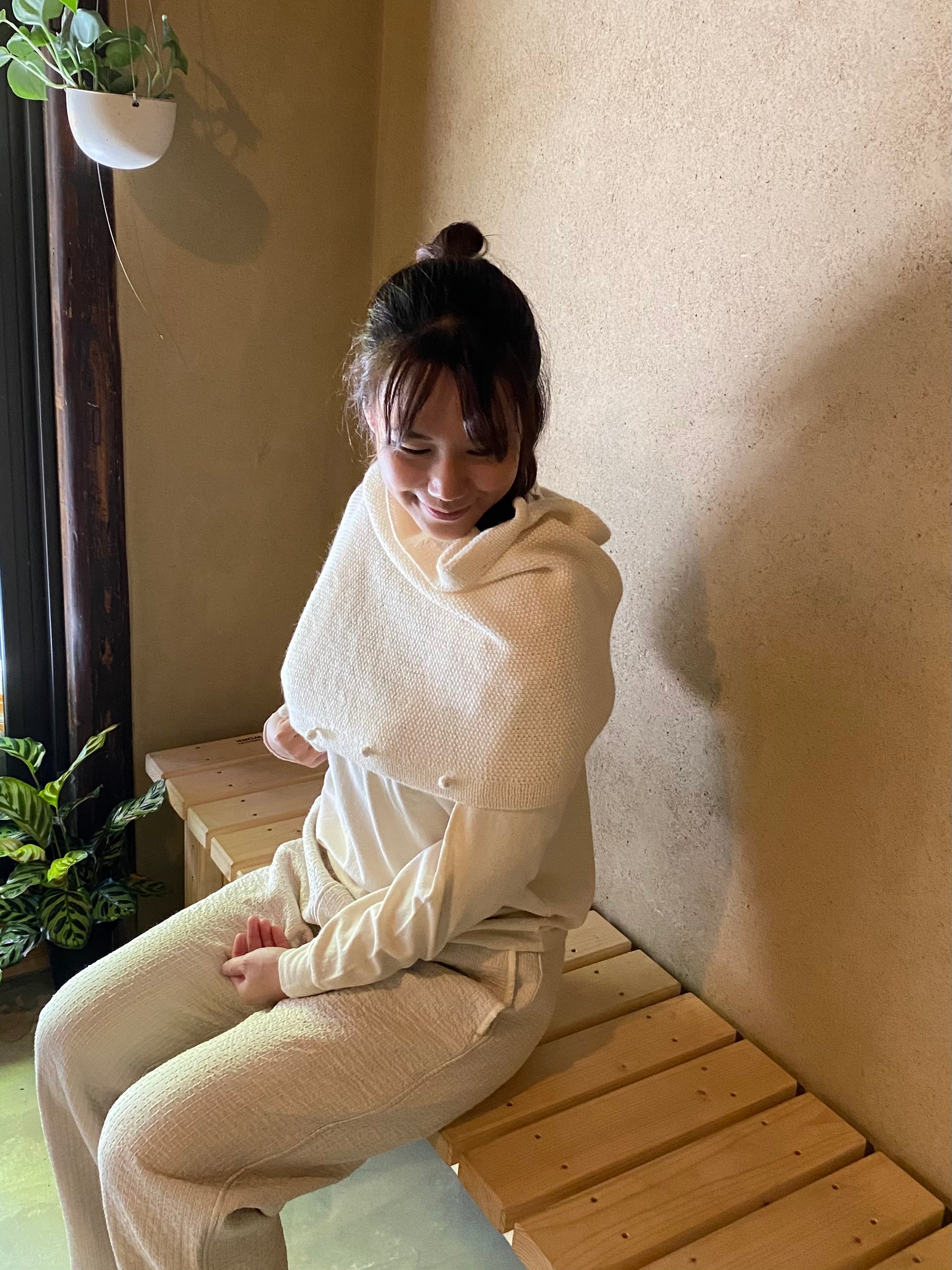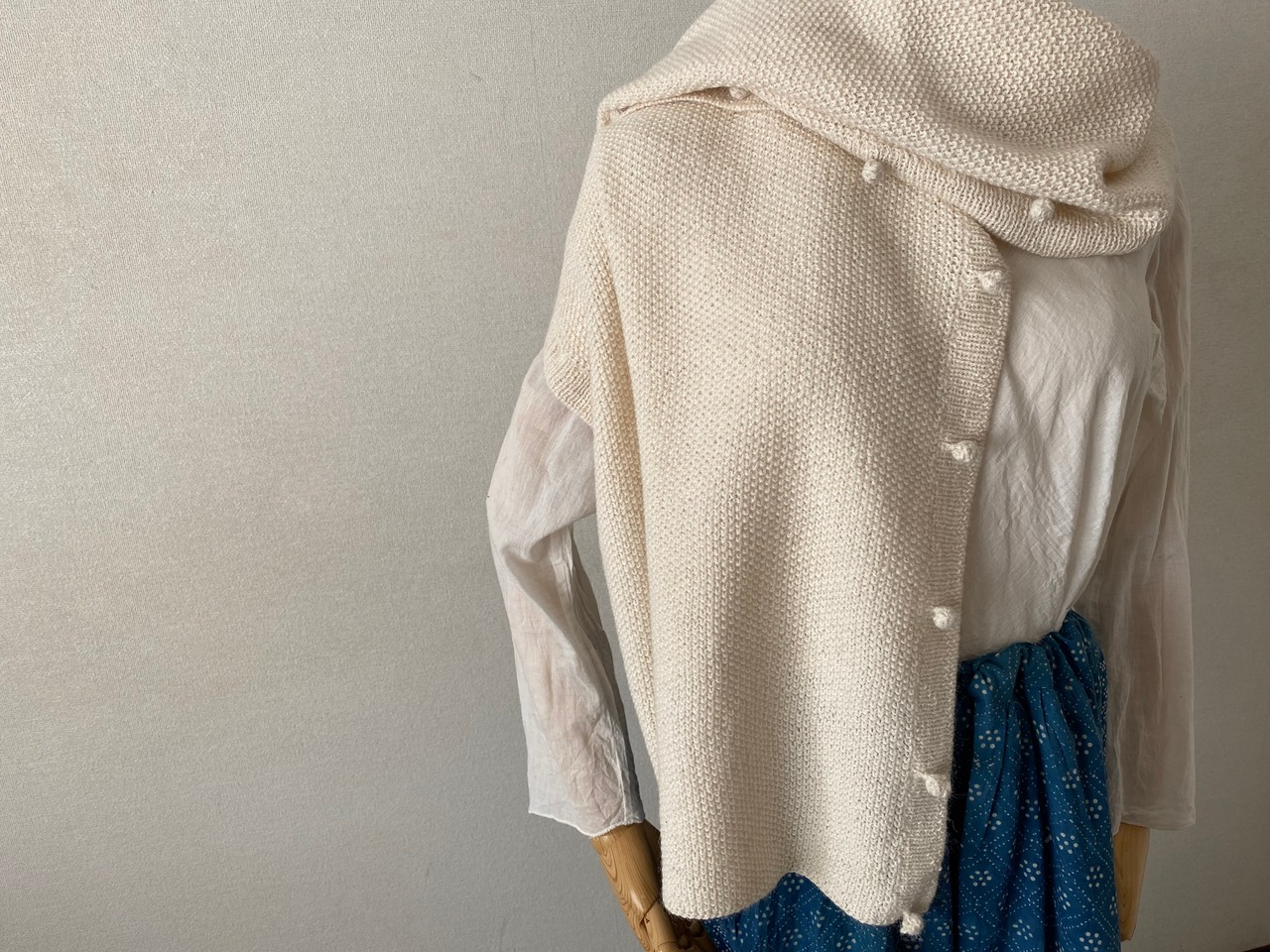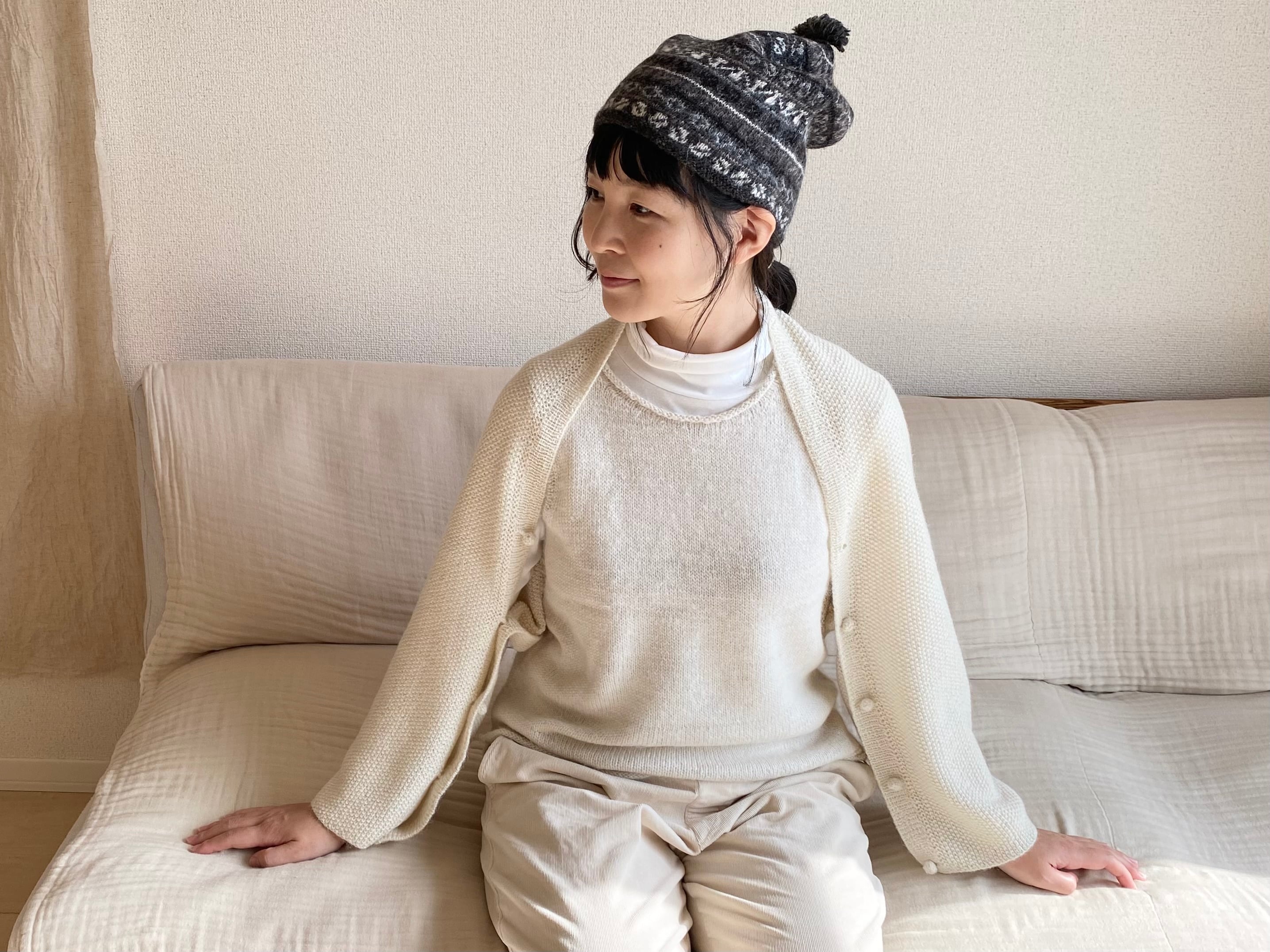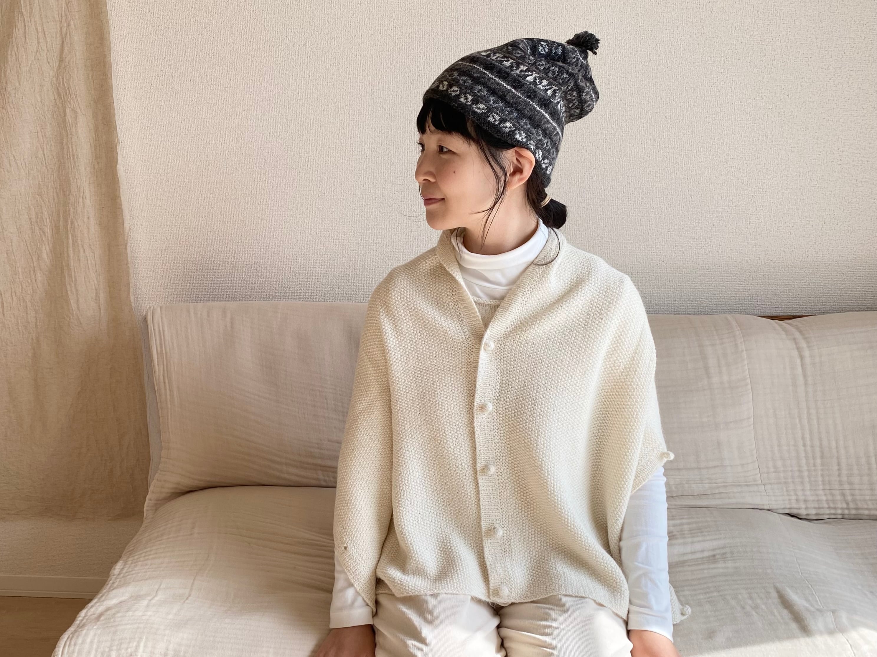 かのこ編みの凸凹した表情がやさしく、どんなスタイルにも合わせやすく、柔らかく体になじんでくれます。