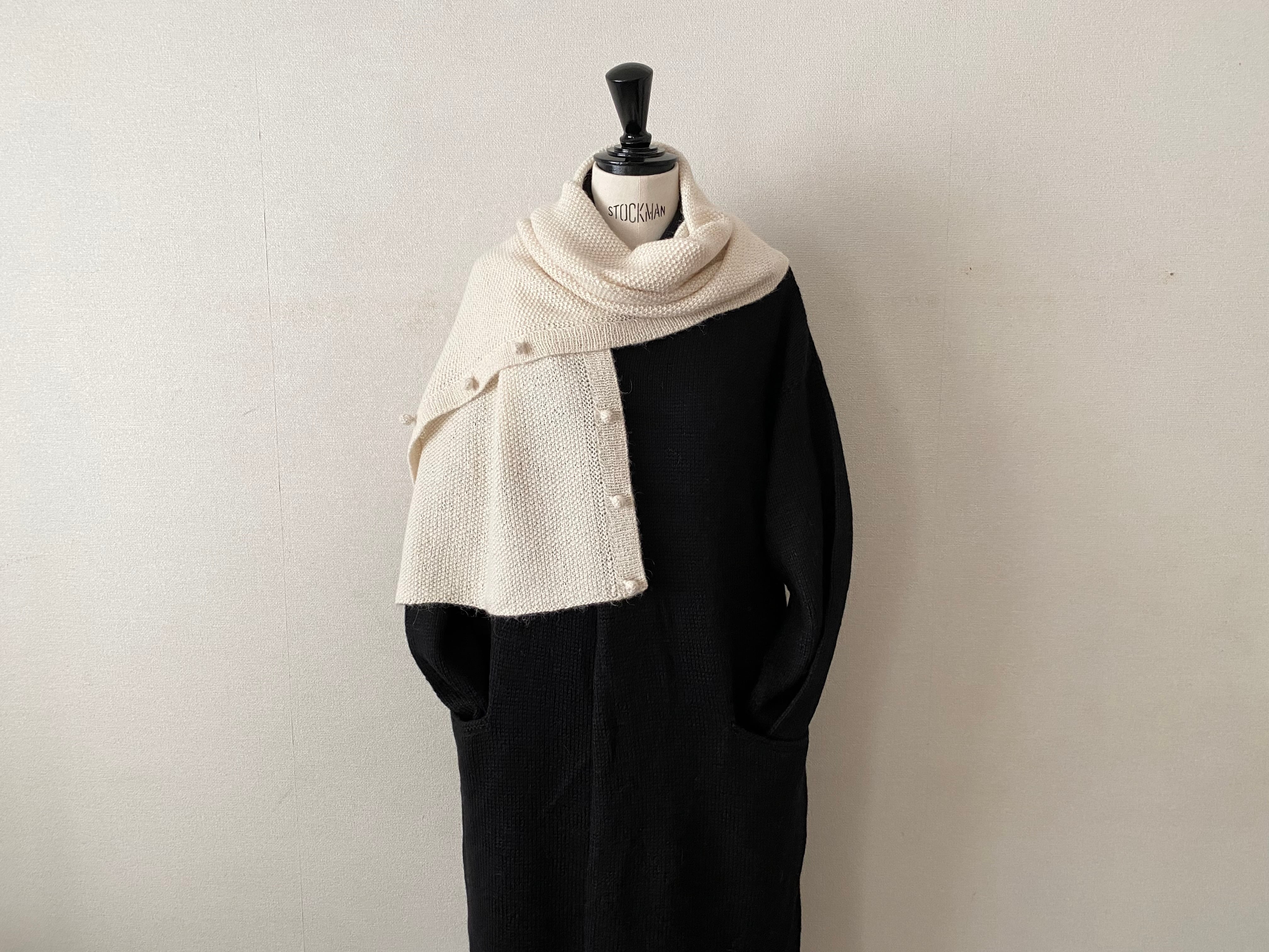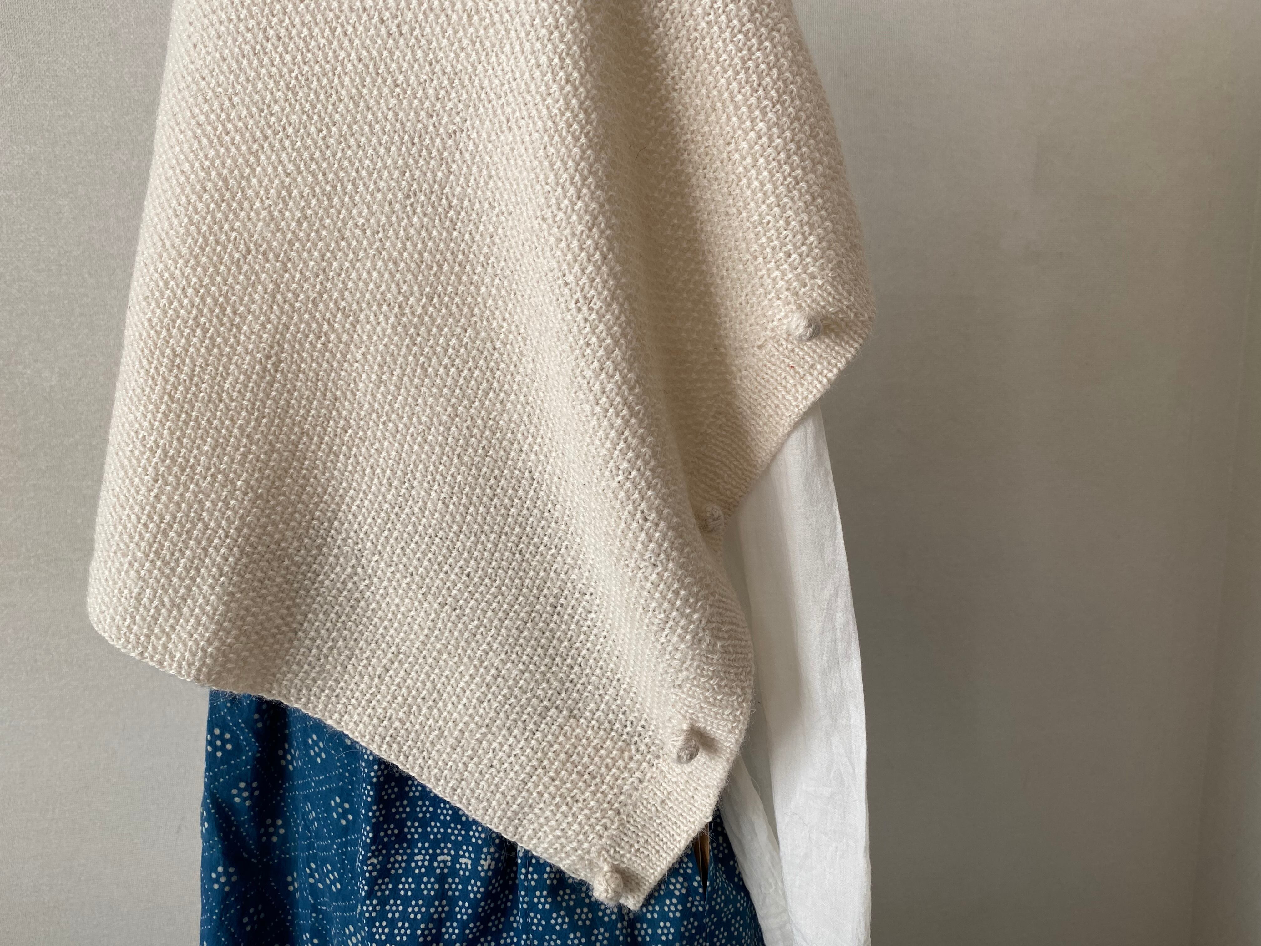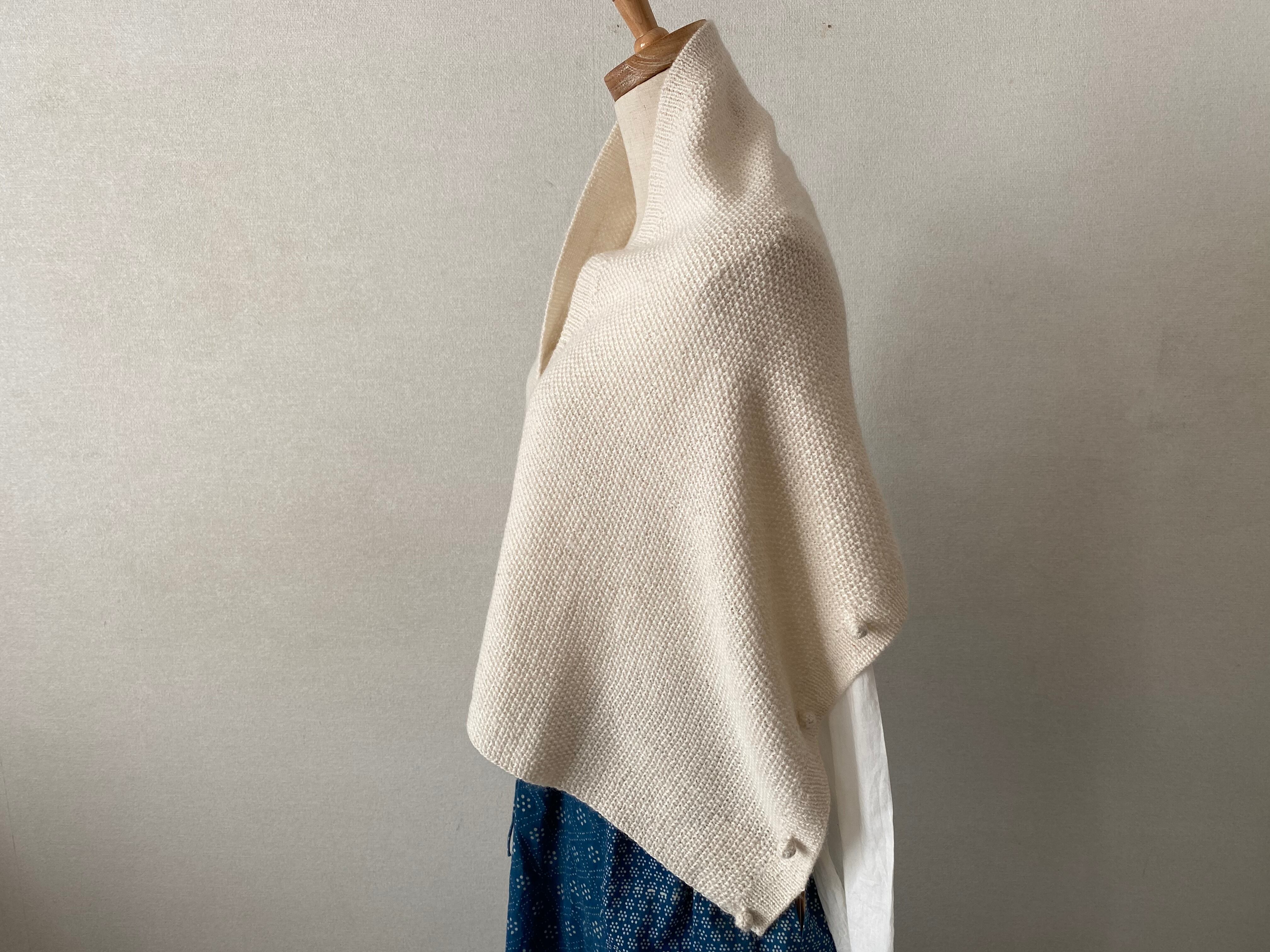 プエンテ手編みショール+ボタン(ホワイト)Mano(マノ)