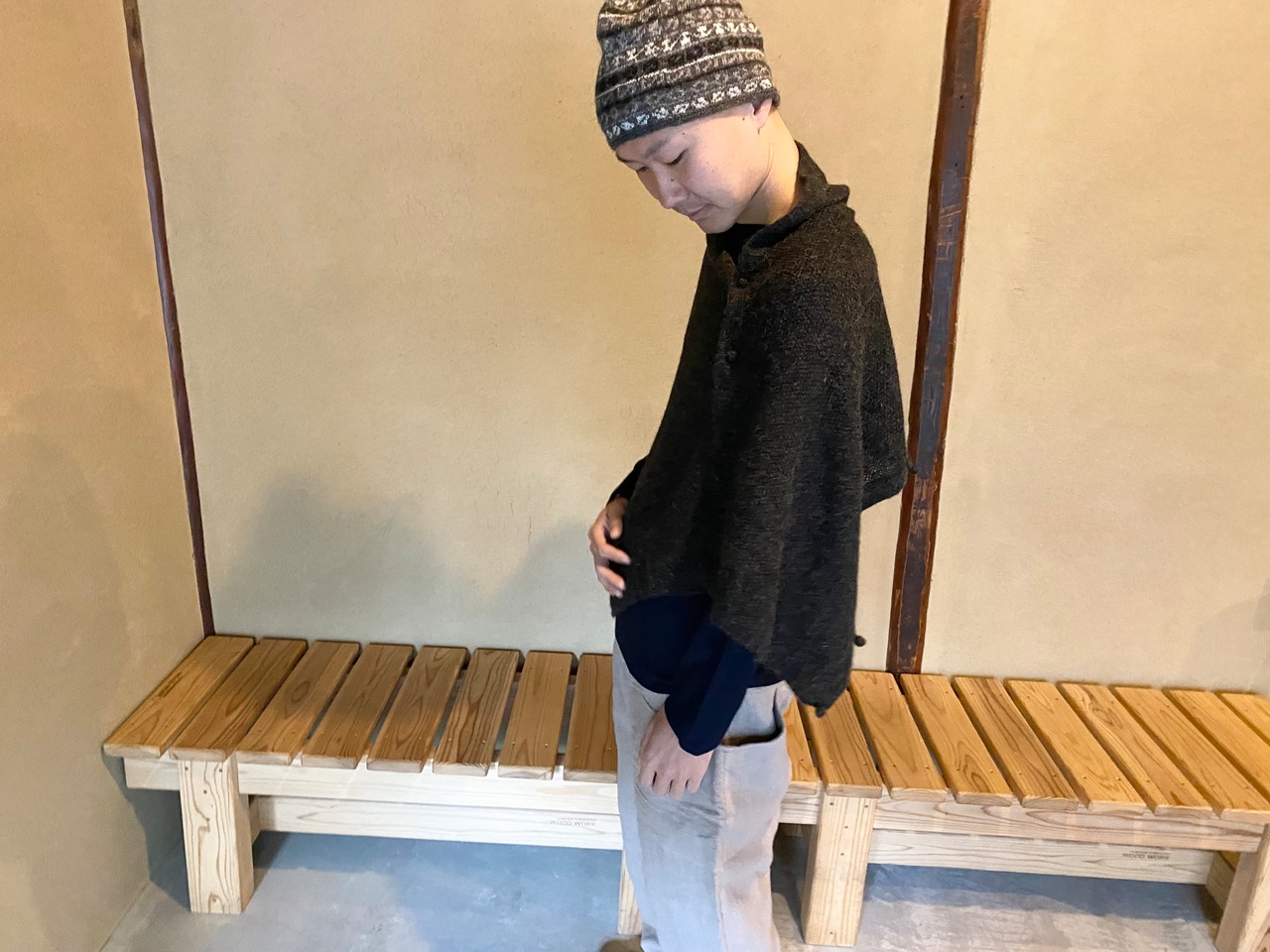 ボタンの留め方で、ポンチョのようにも使えます。