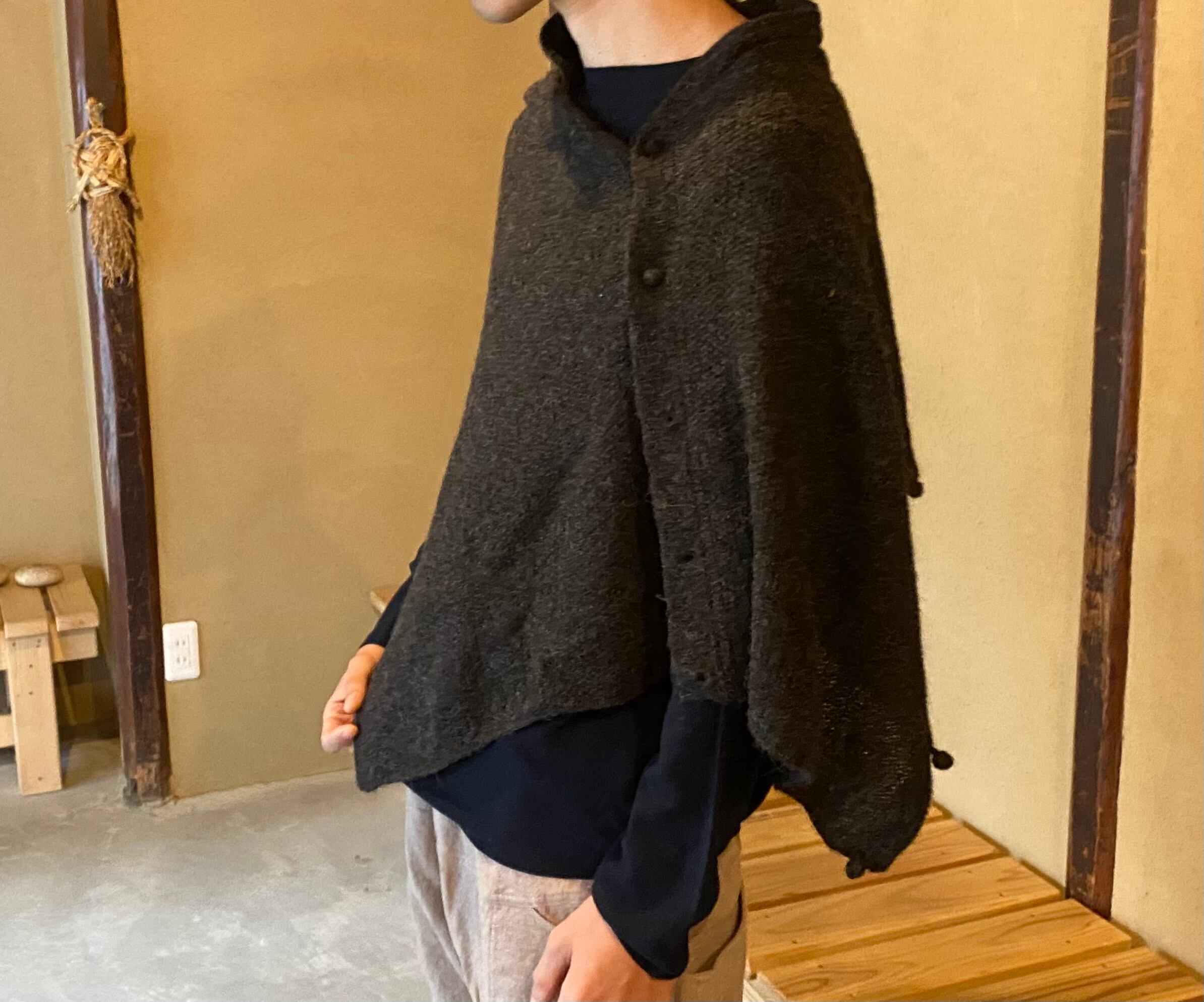 機械紡ぎのアルパカの毛糸で、手編みで作られています。