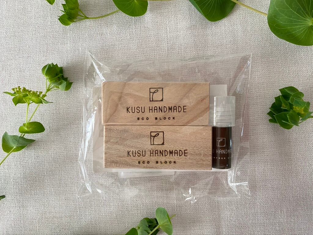 KUSU エコブロック 2個+カンフルオイル 2mlお試しセット【防虫・消臭】/KUSU HANDMADE