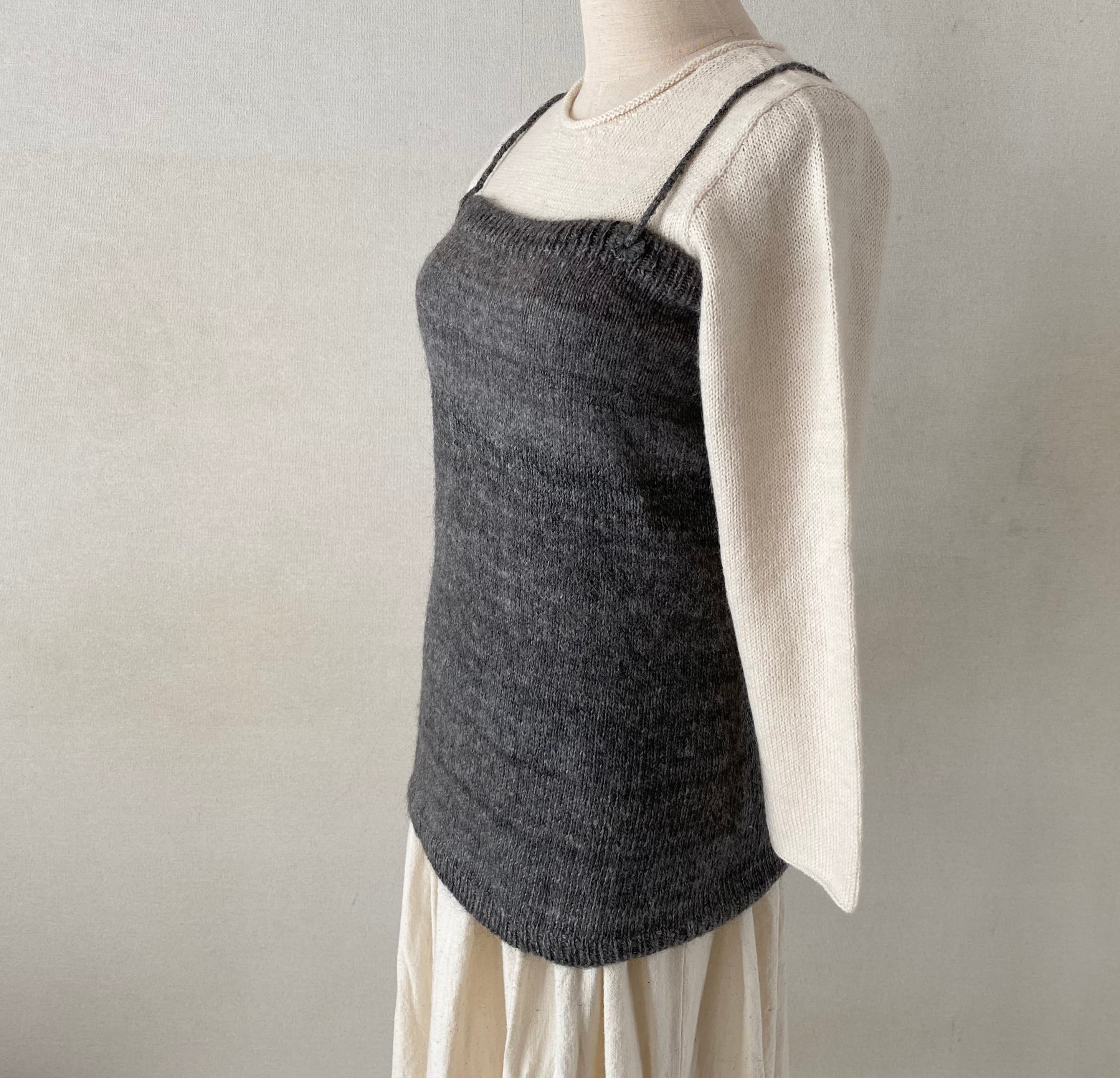 こちらの手紡ぎキャミソールはメリヤス編みでより薄く