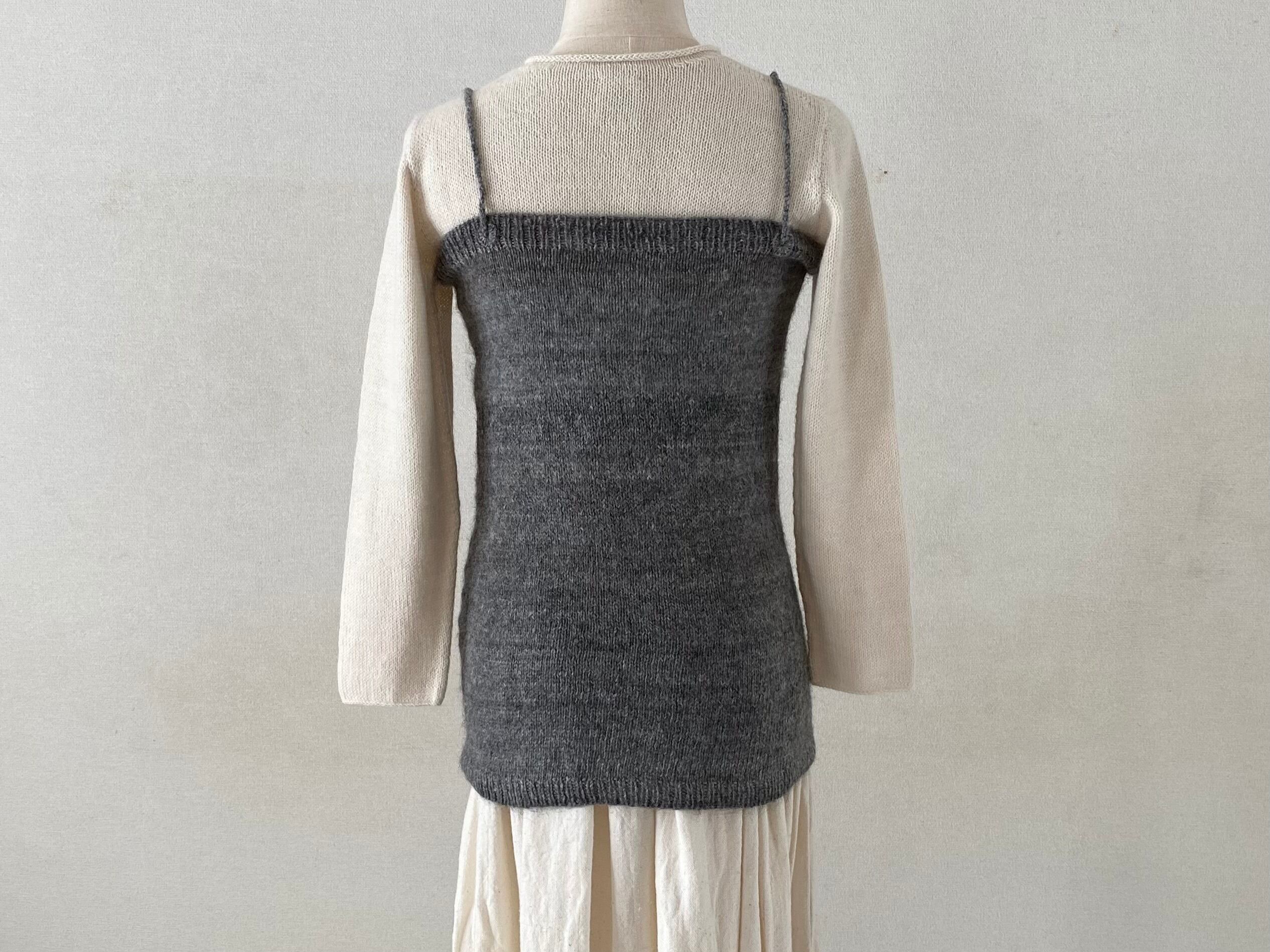 ペルーの村で、手紡ぎしたアルパカの毛糸を使って手編みされたあたたかいキャミソールです。