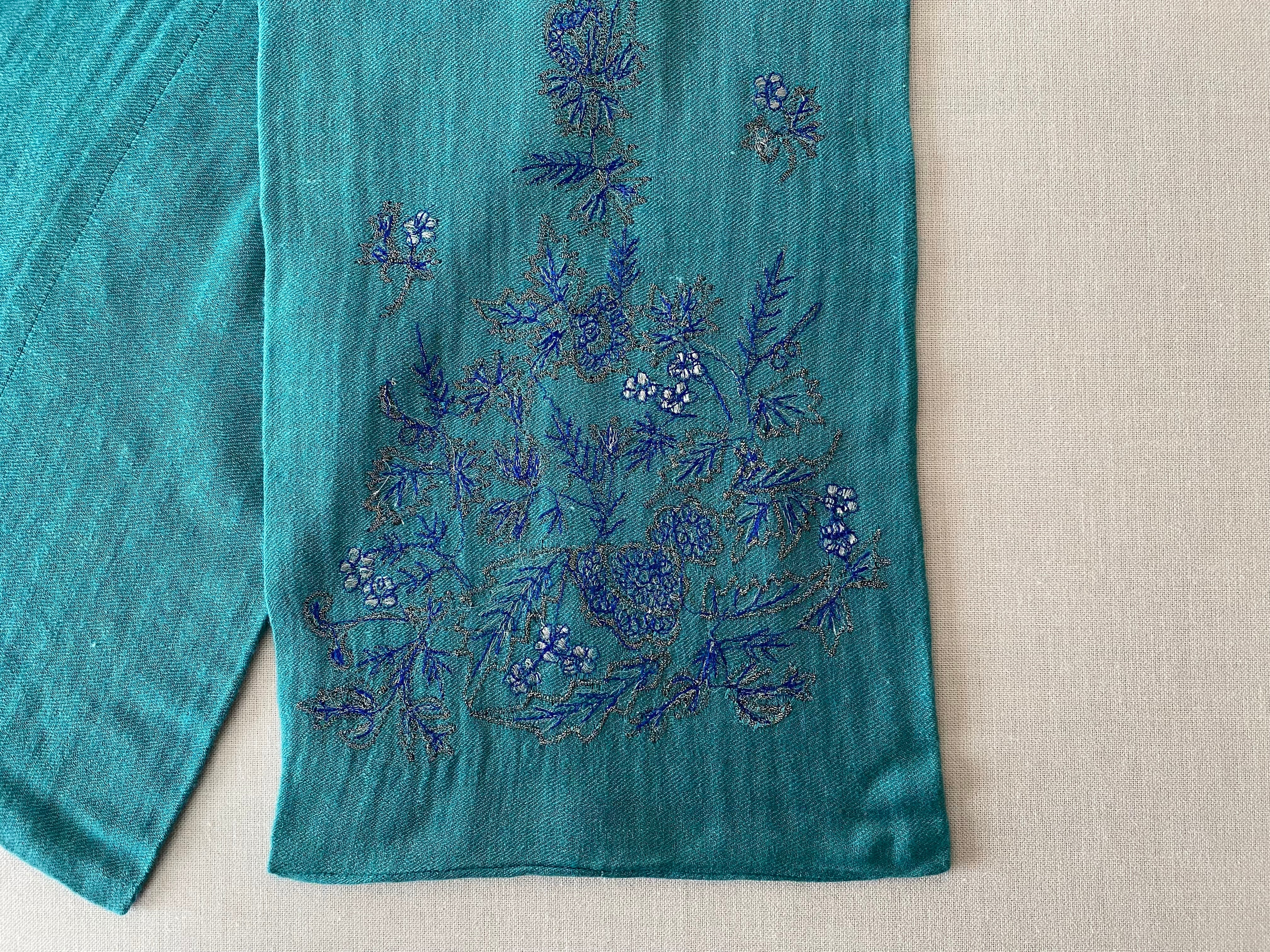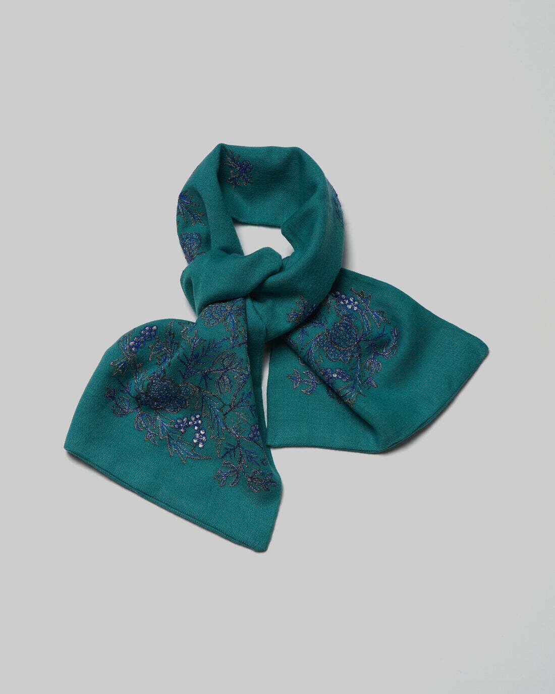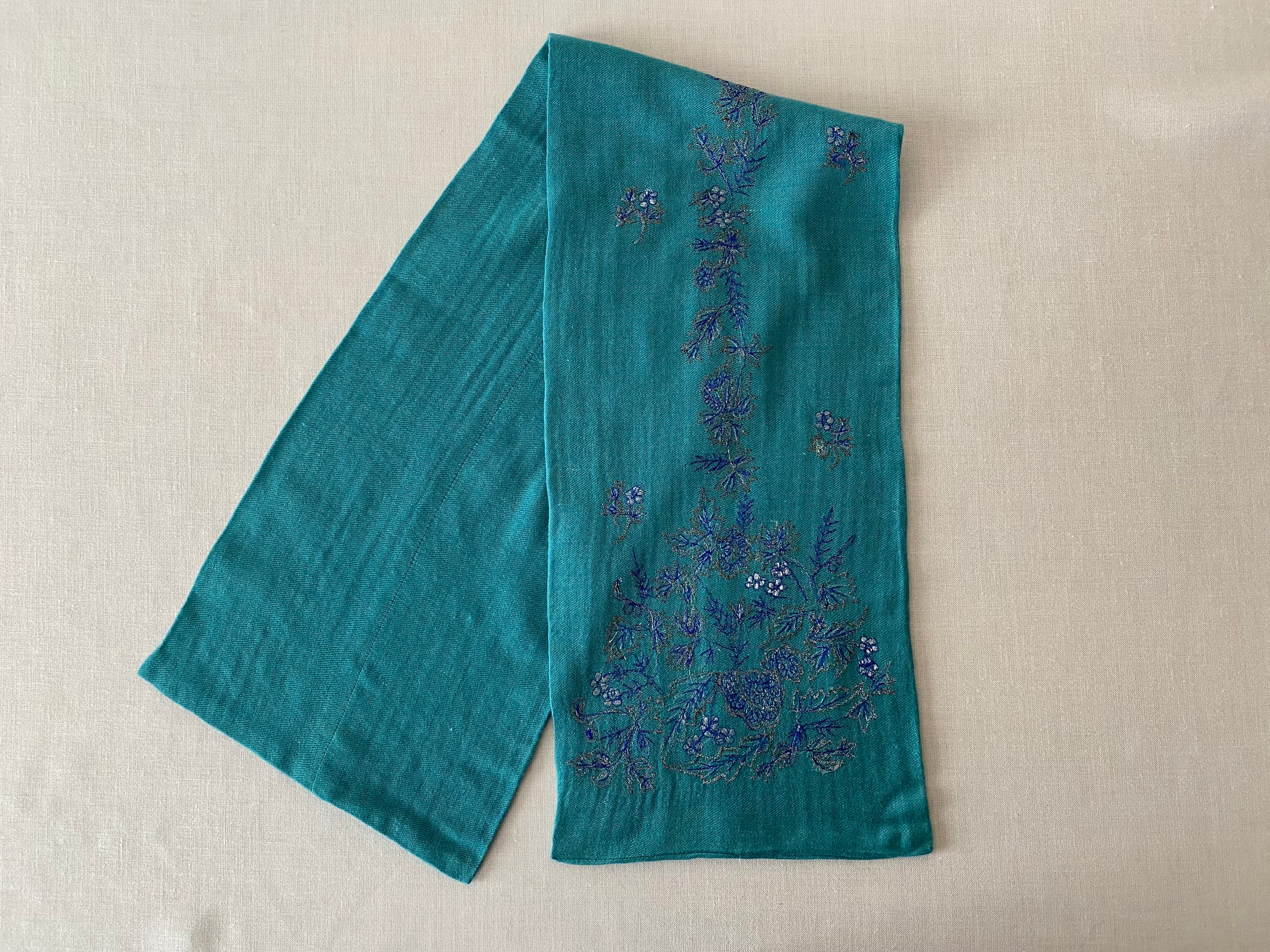 お花のモチーフの刺繍をほどこした存在感の光るショールです。