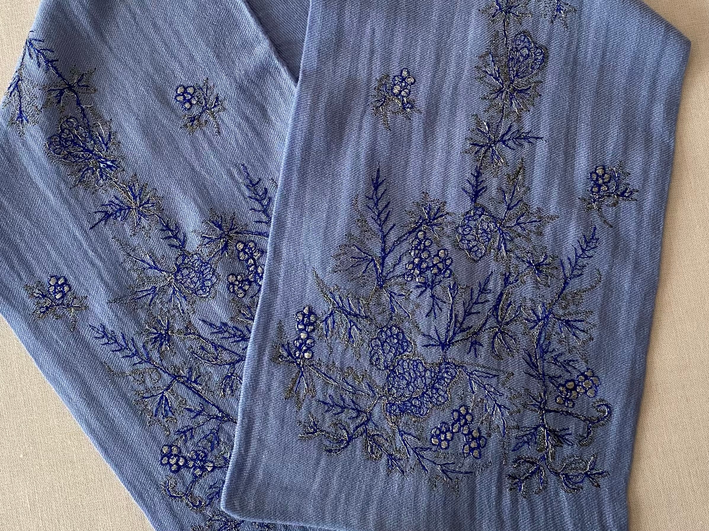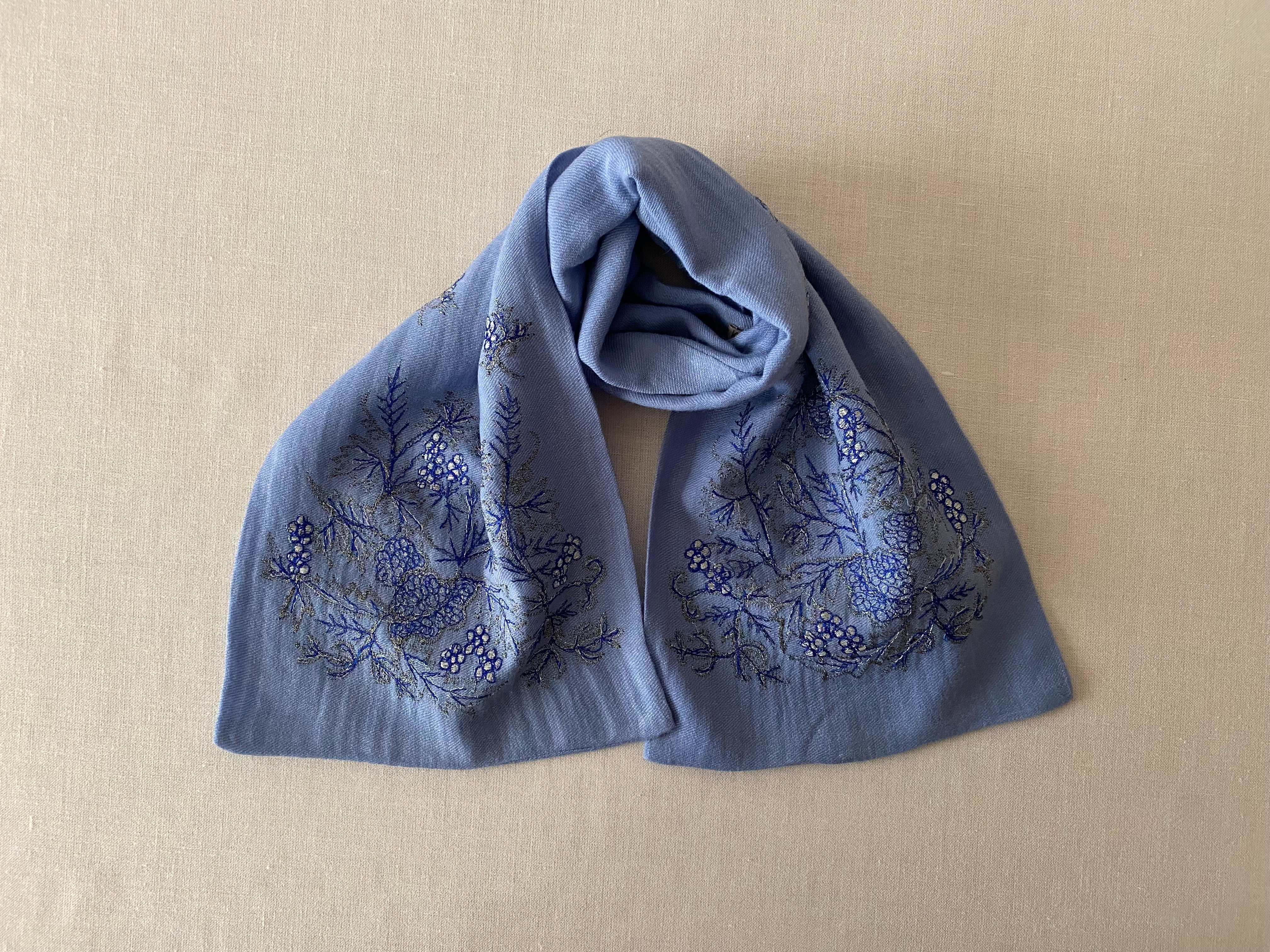 刺繍ショール/スカイブルー Khadi and Co.