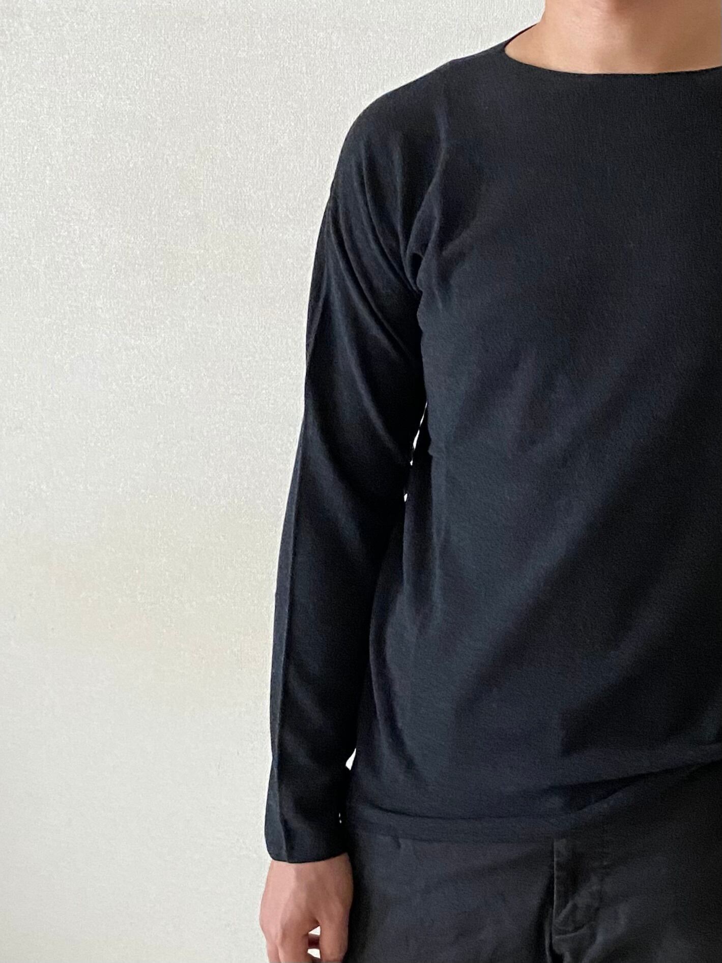 MITTAN KN-31 スーパー180’s強撚ウールニット長袖 墨黒 ユニセックス