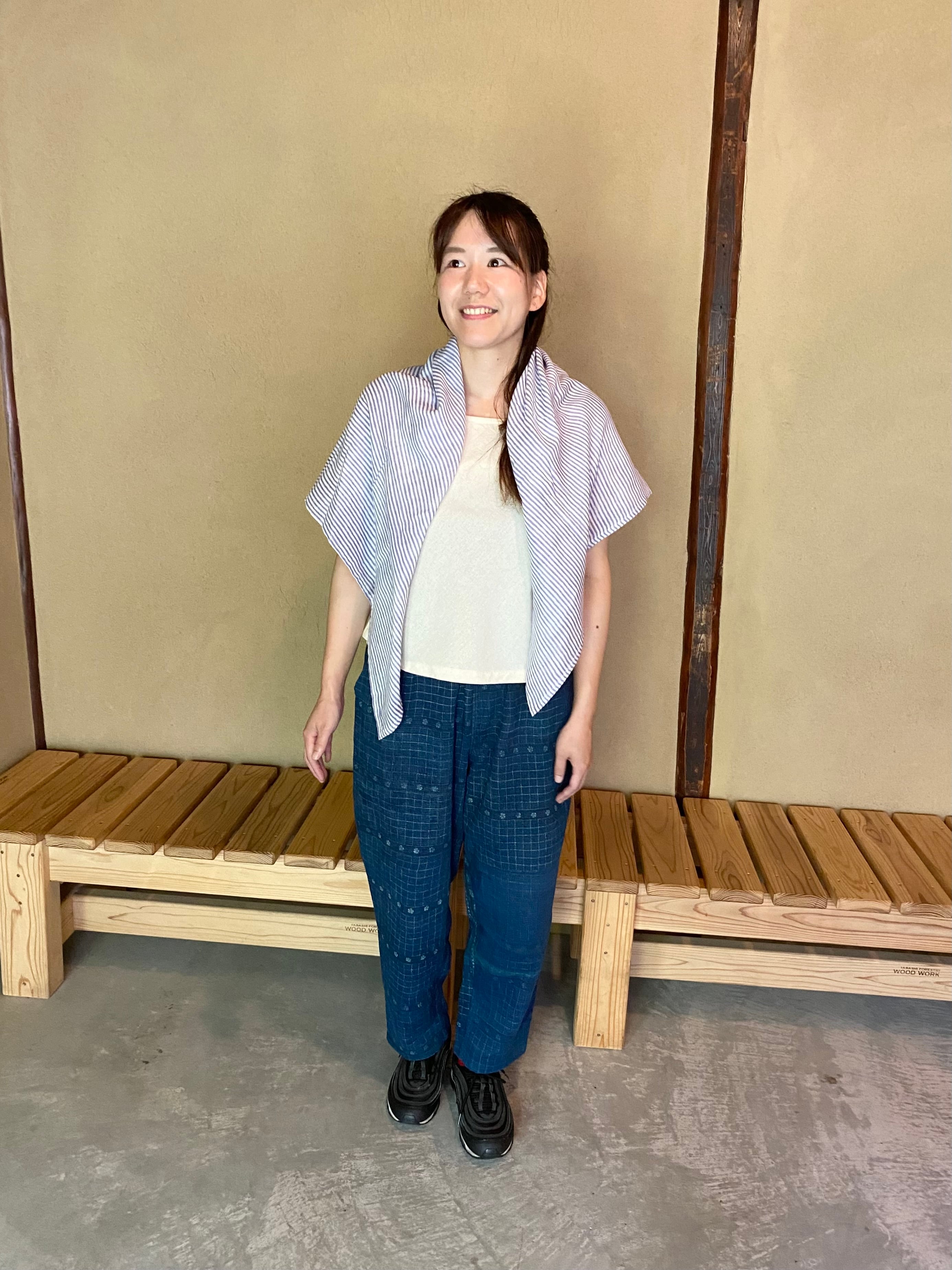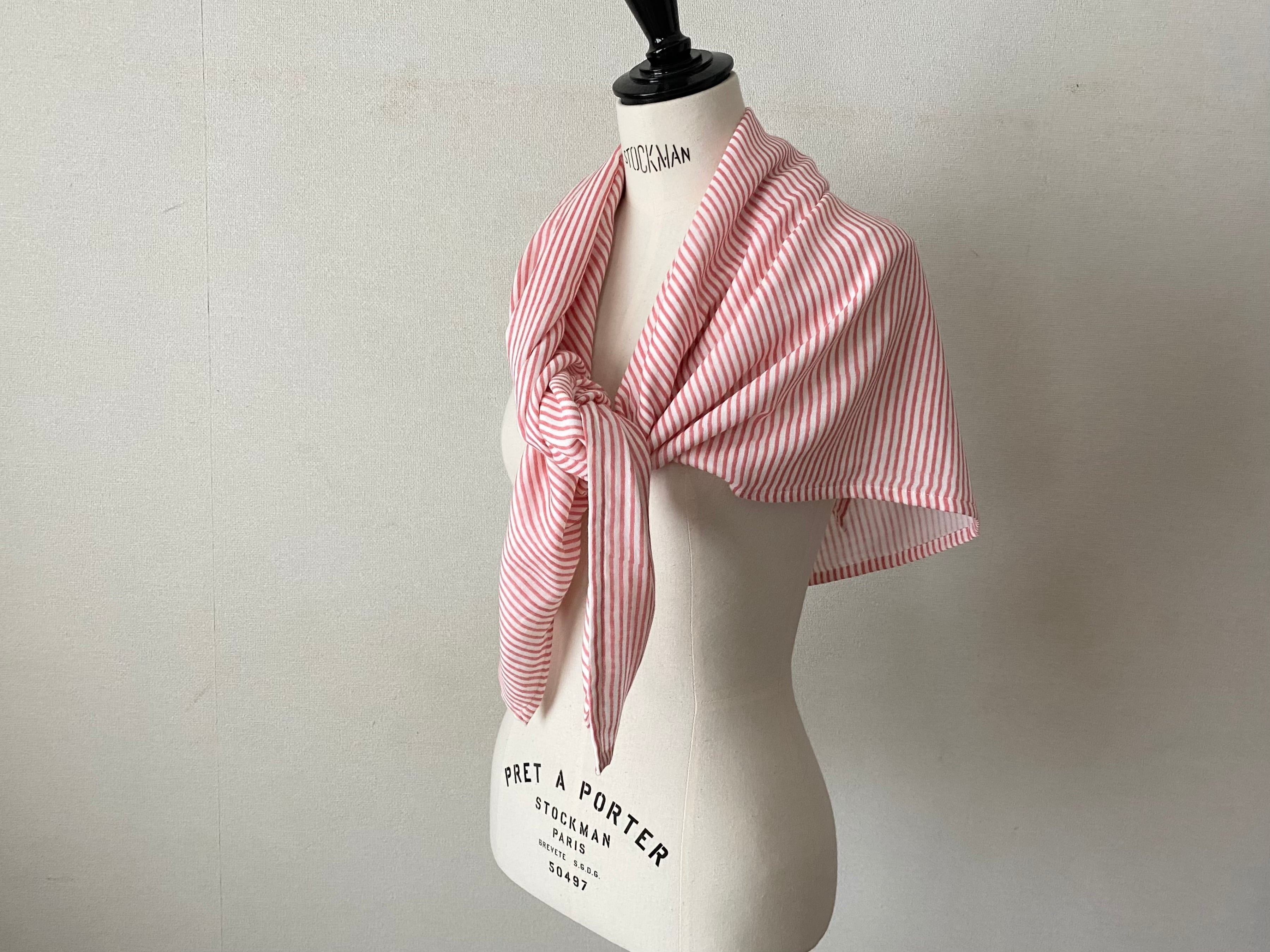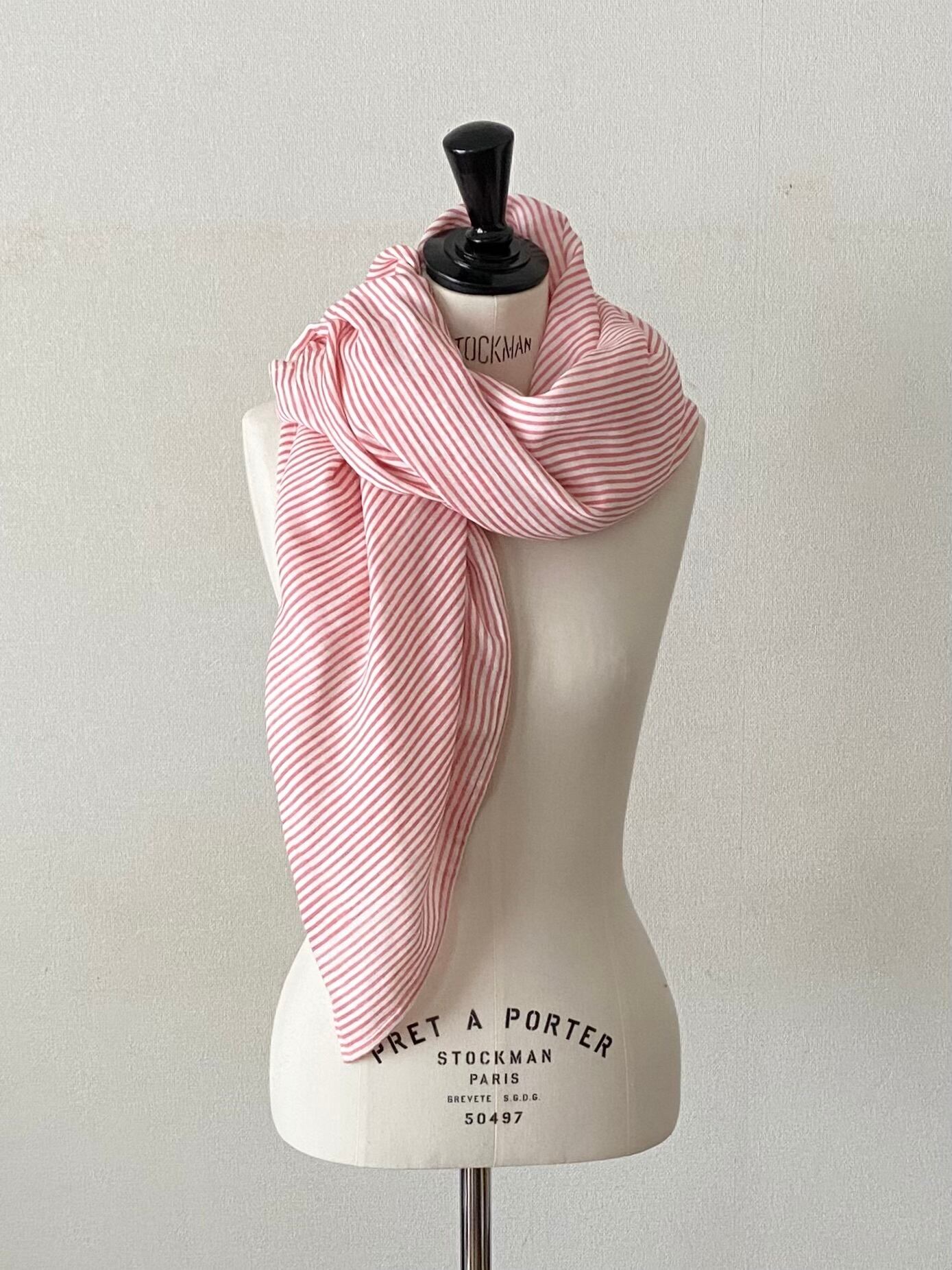 シンプルなストライプは、いつものスタイルにプラスしてスカーフ使いでおしゃれに取り入れやすいアイテム。