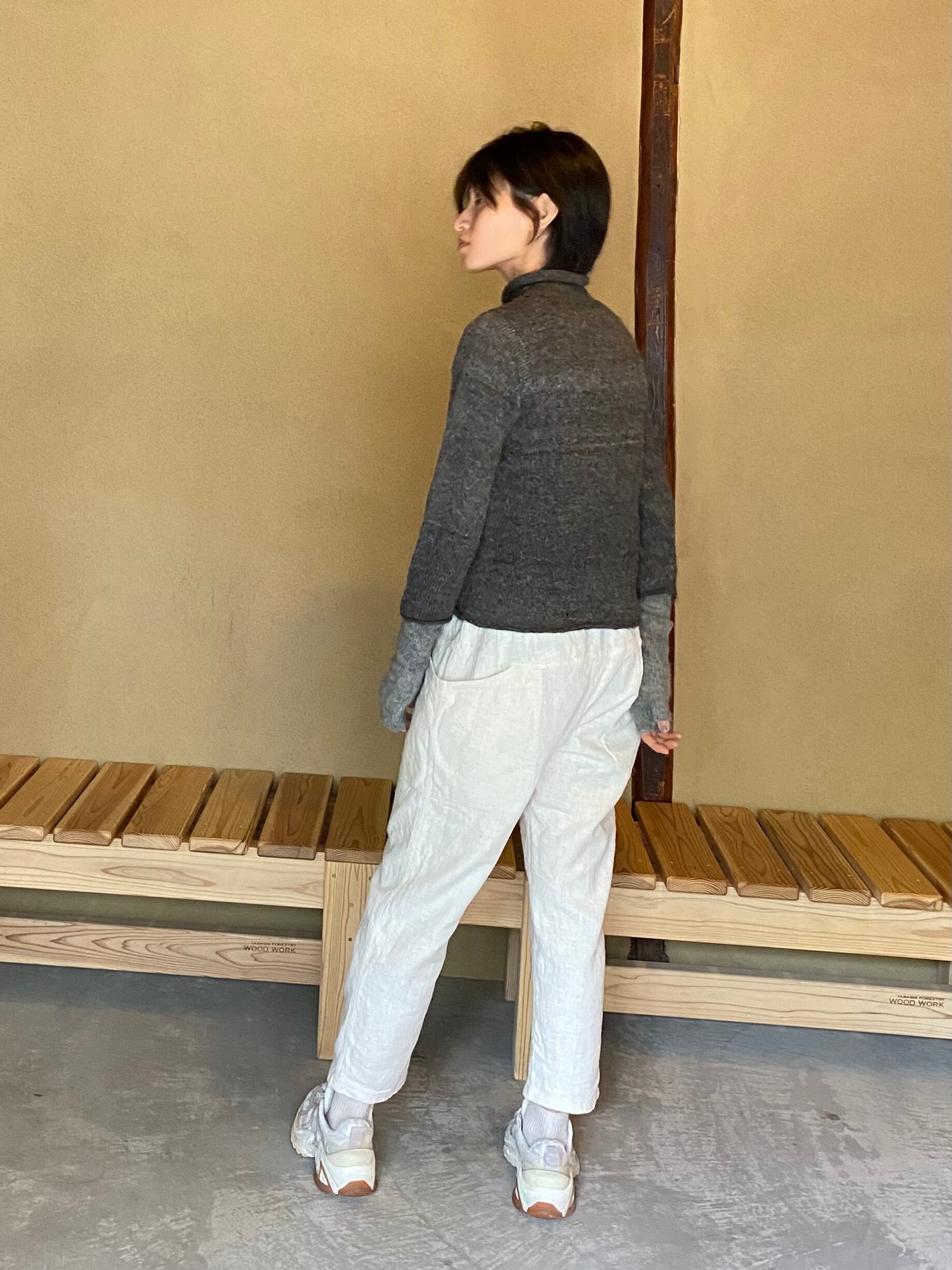アルパカの原毛を手紡ぎして、手編みでつくられている作品。
