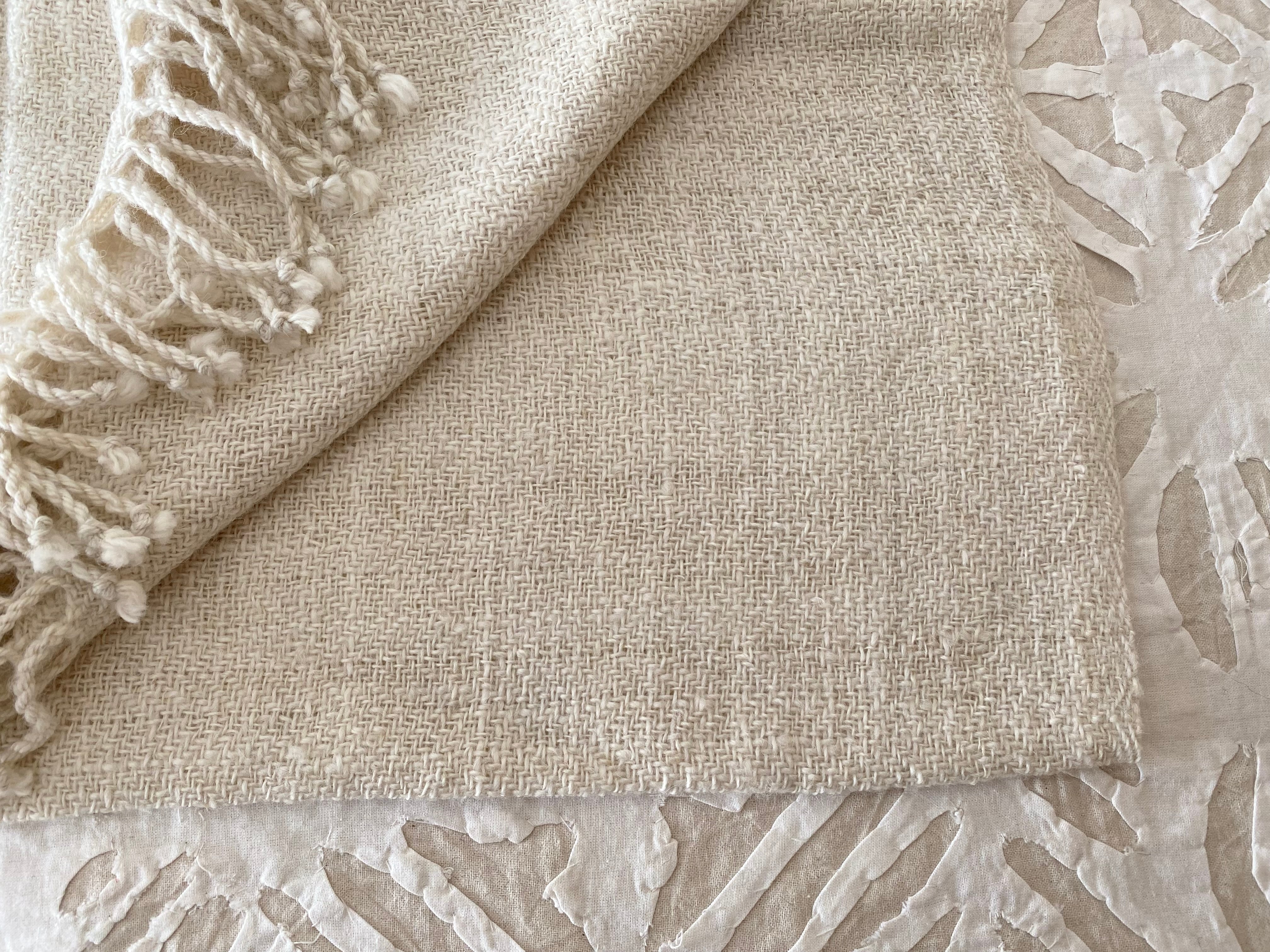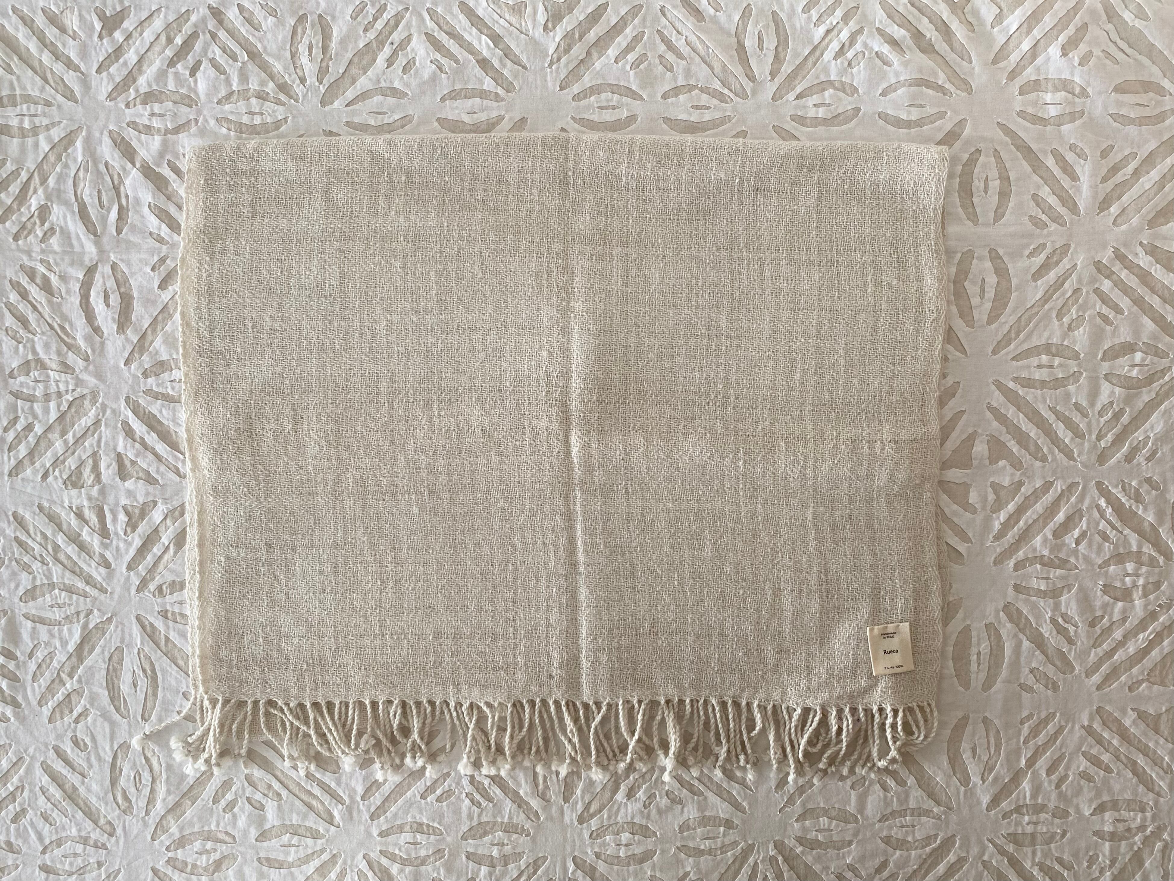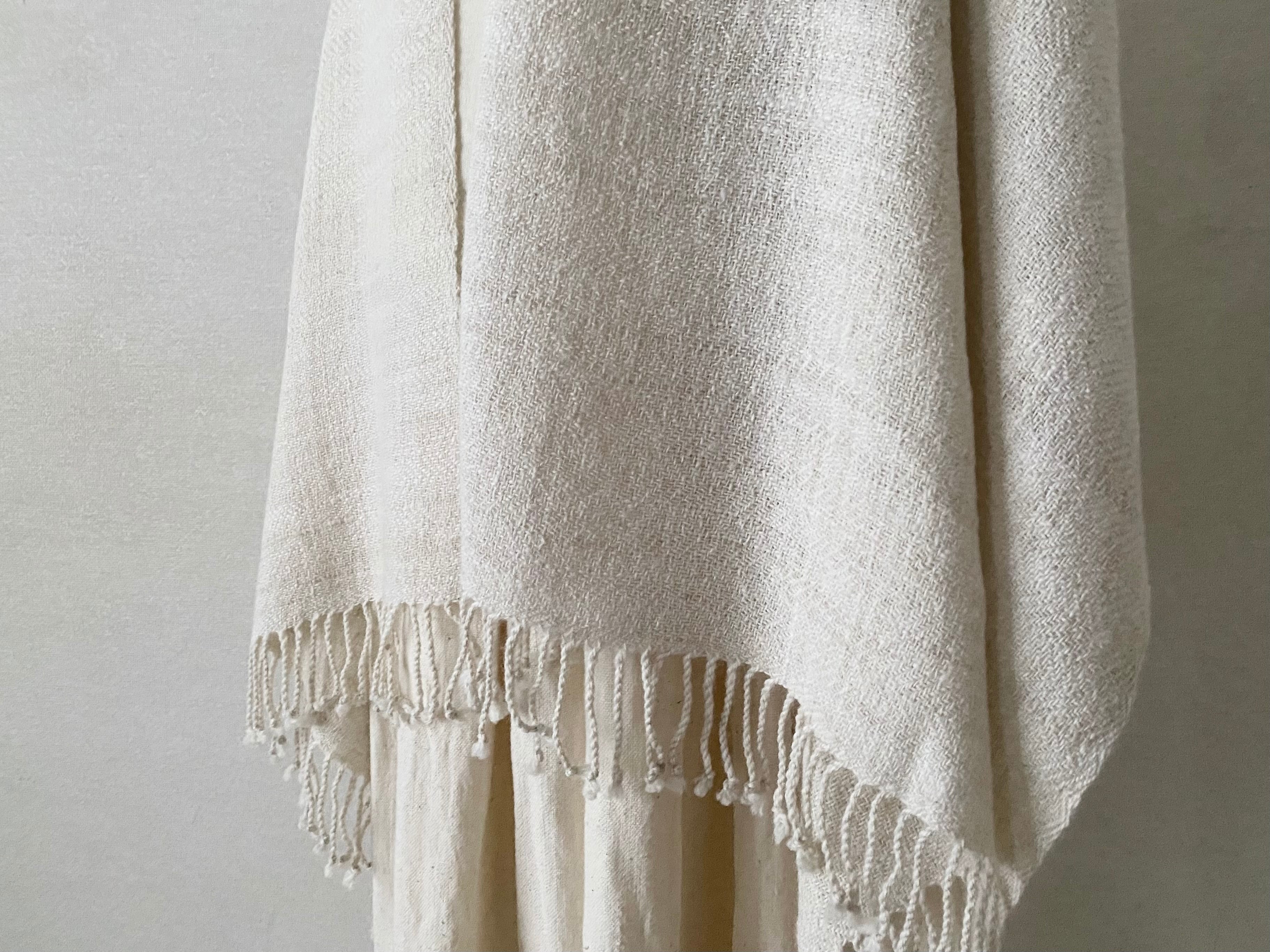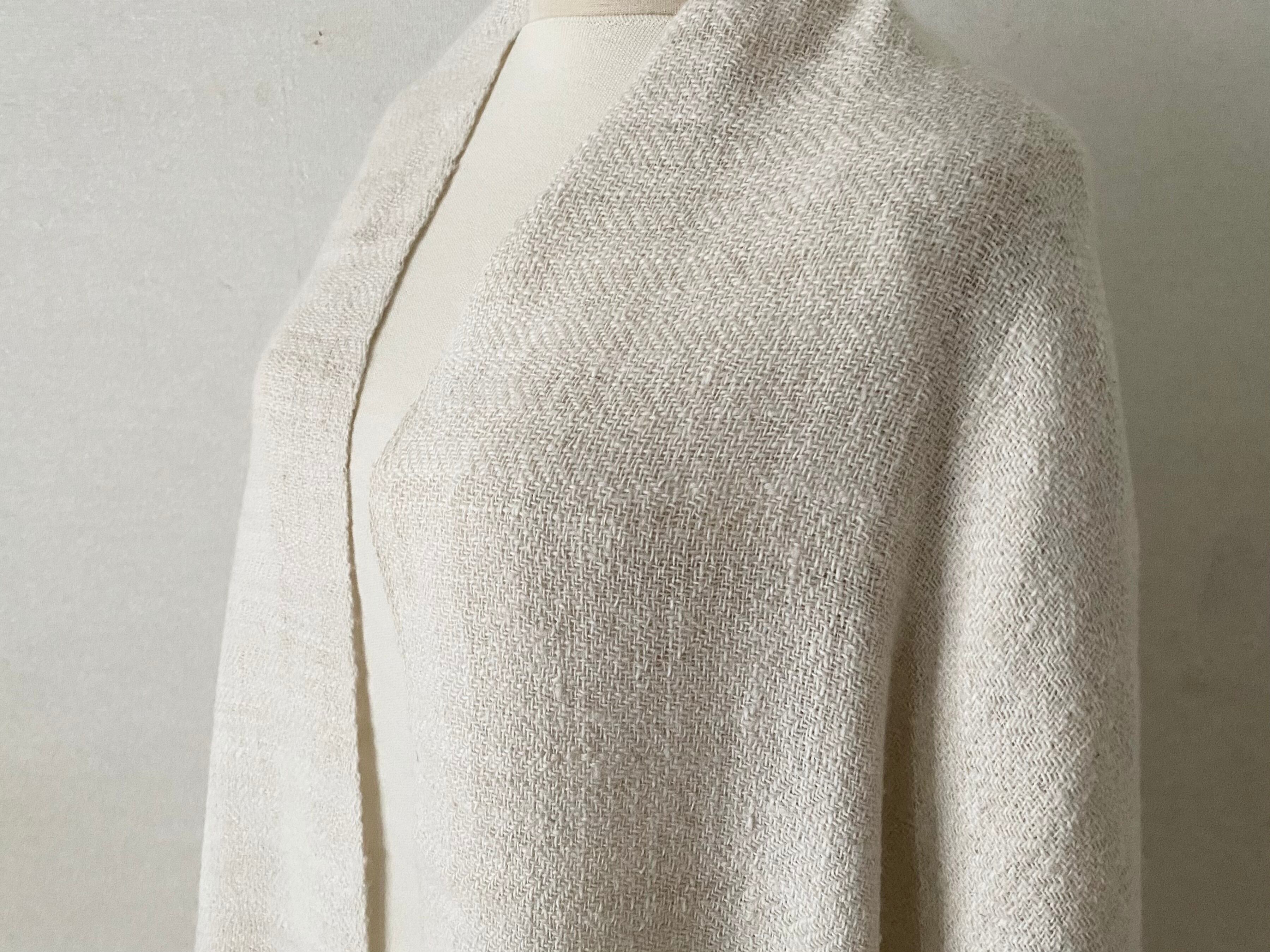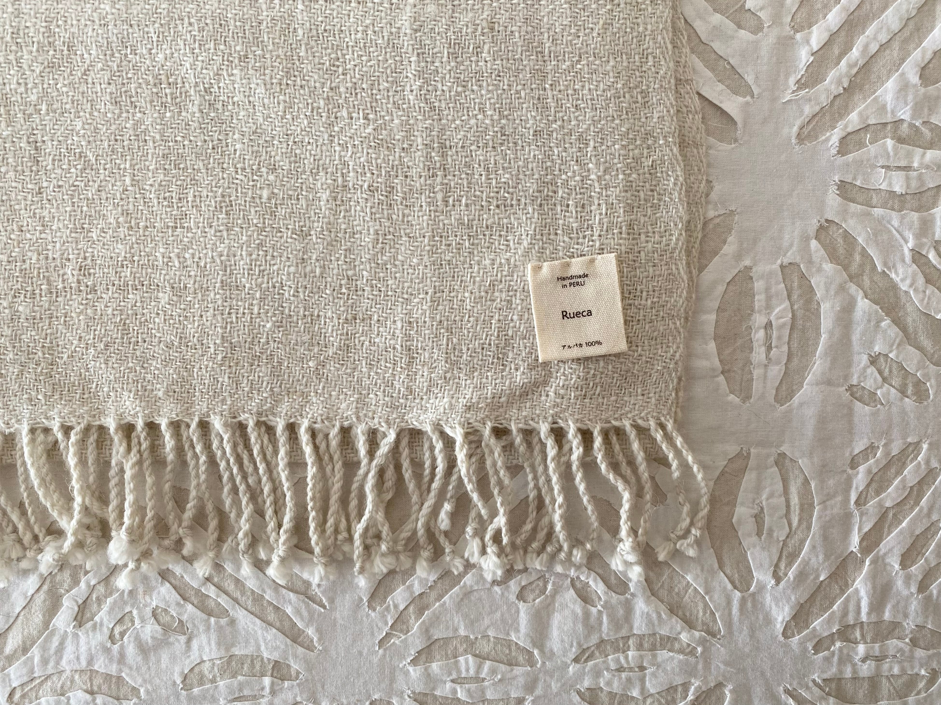 プエンテ手紡ぎアルパカ手織りショール(綾織/ホワイト)Rueca(ルエッカ)