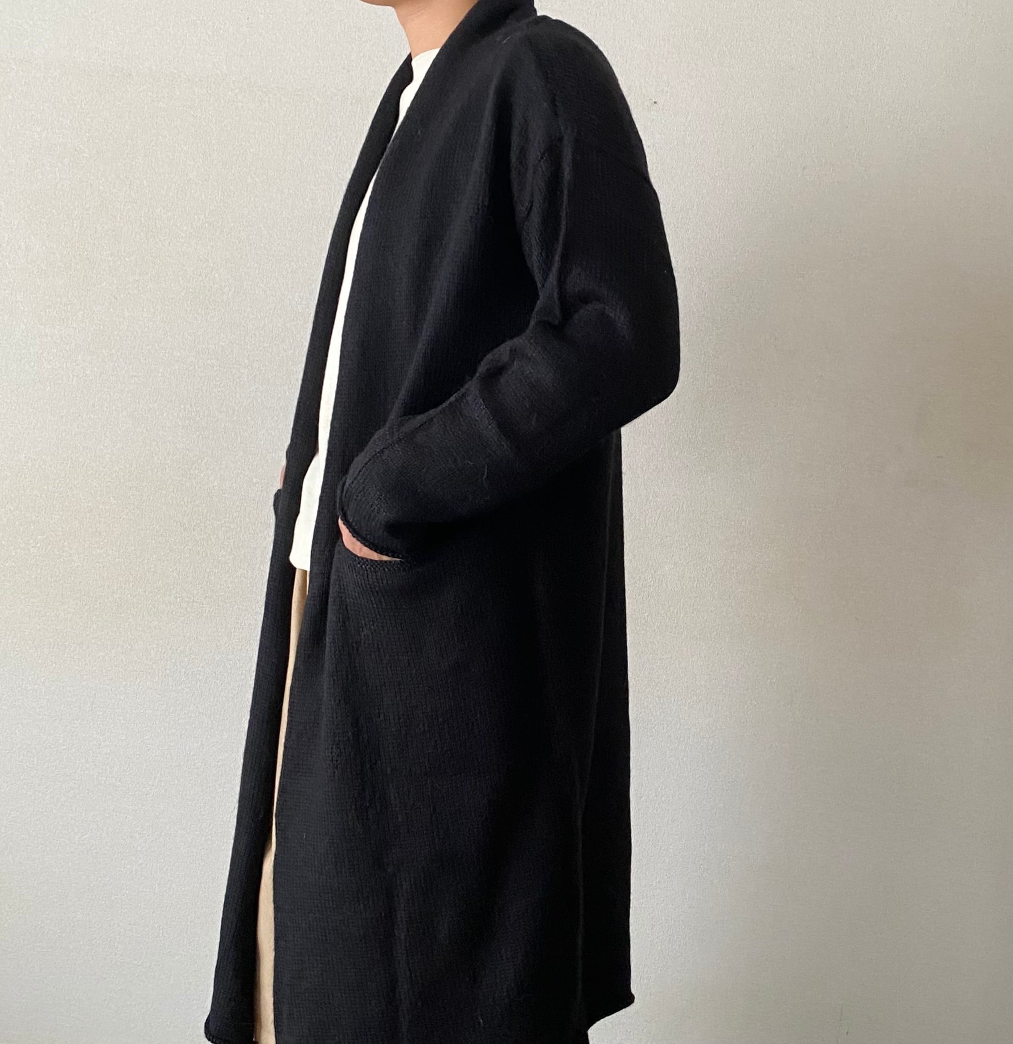 プエンテ/ロングニットコートL(ブラック)/Mano(マノ)