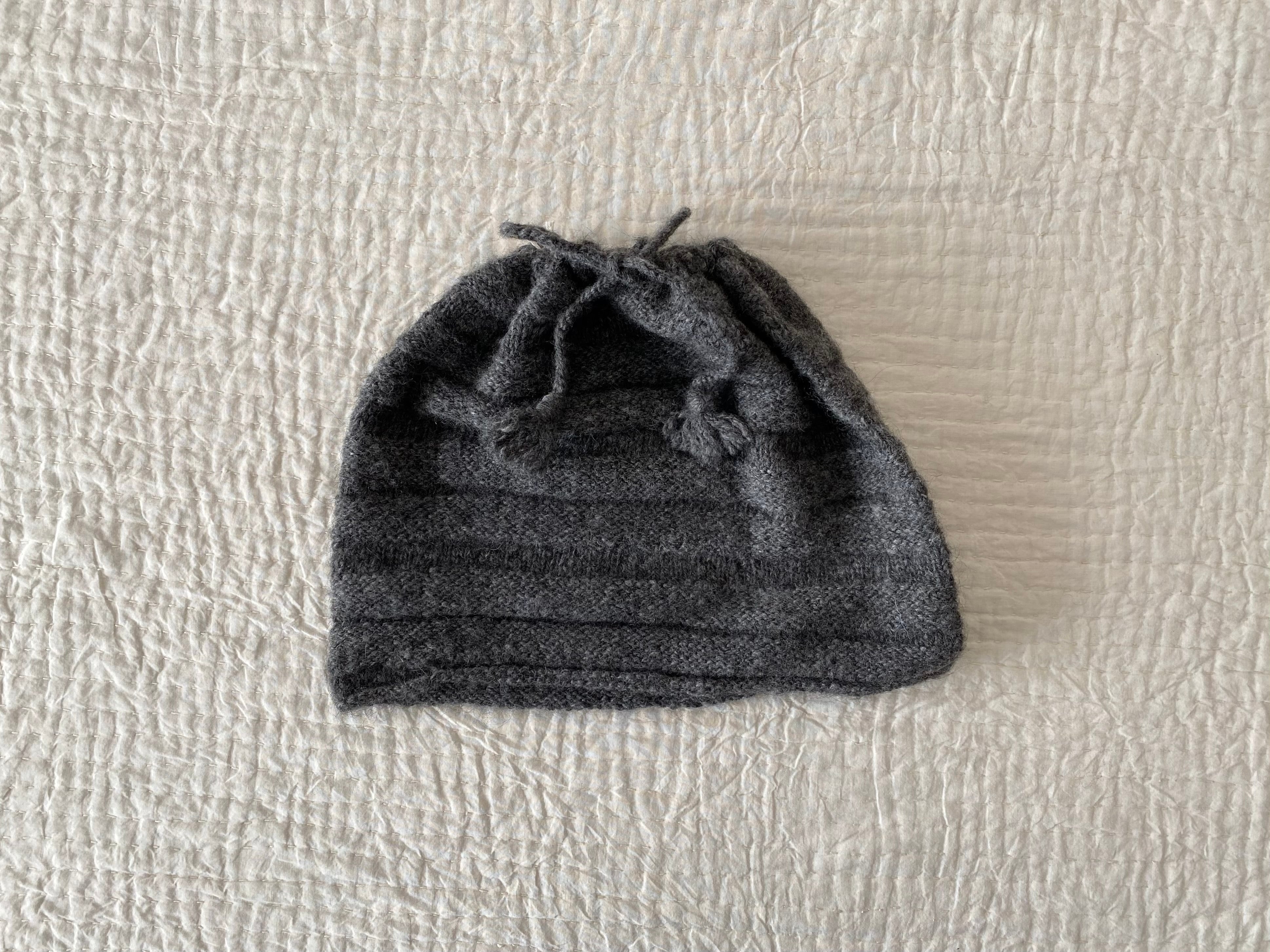 アルパカ素材を手紡ぎして手編みした