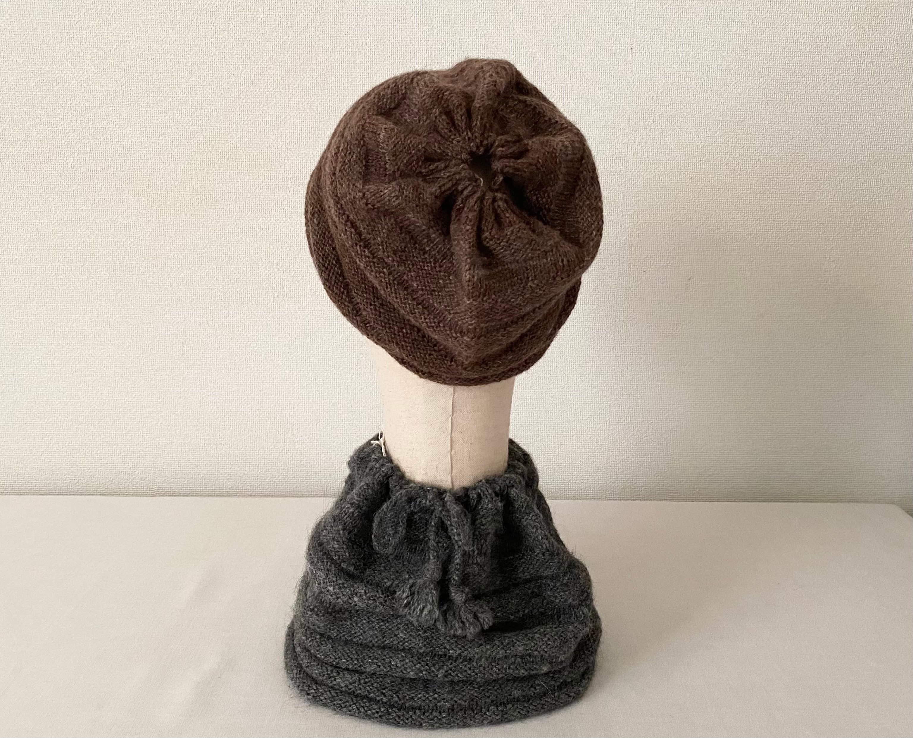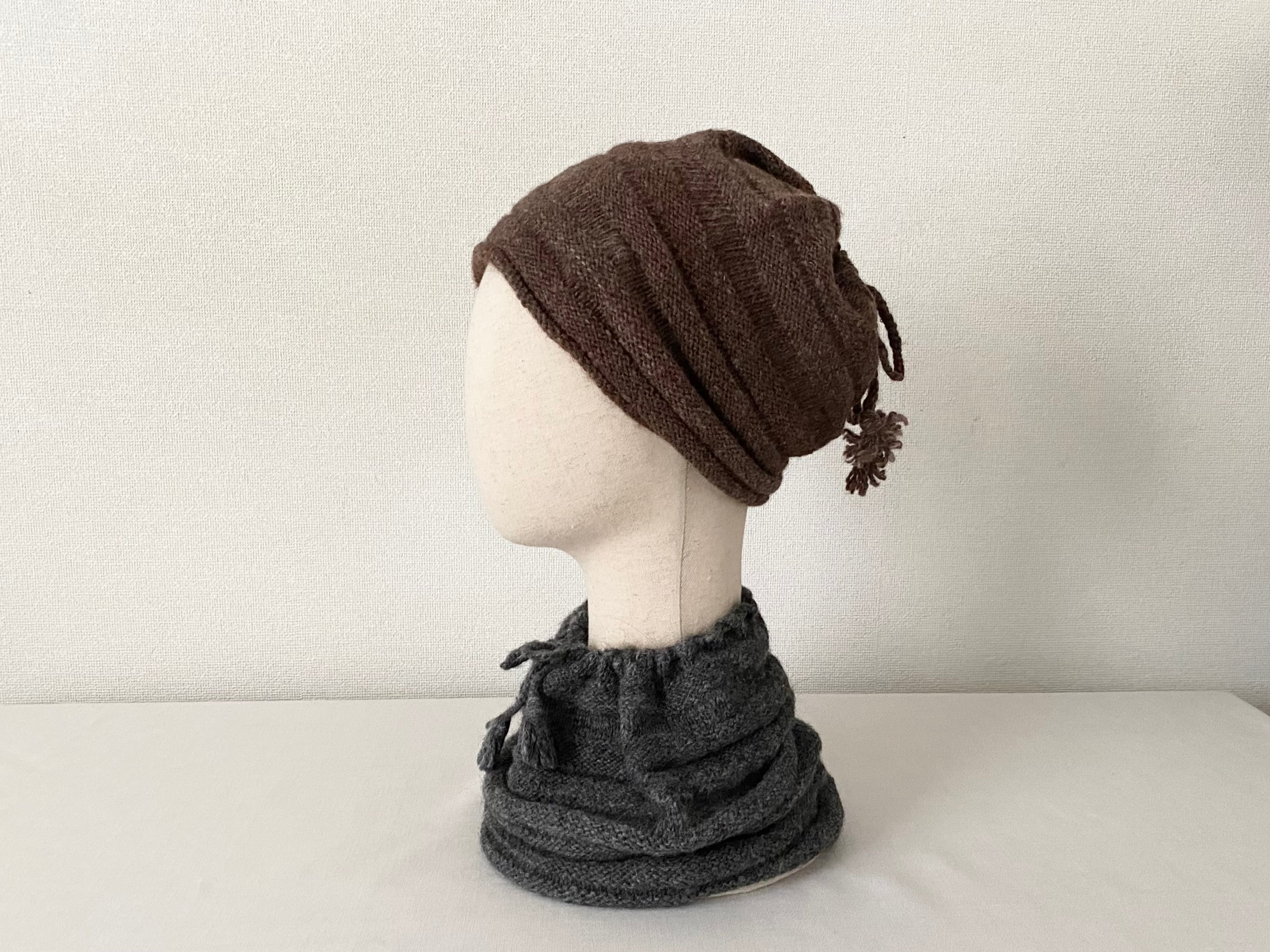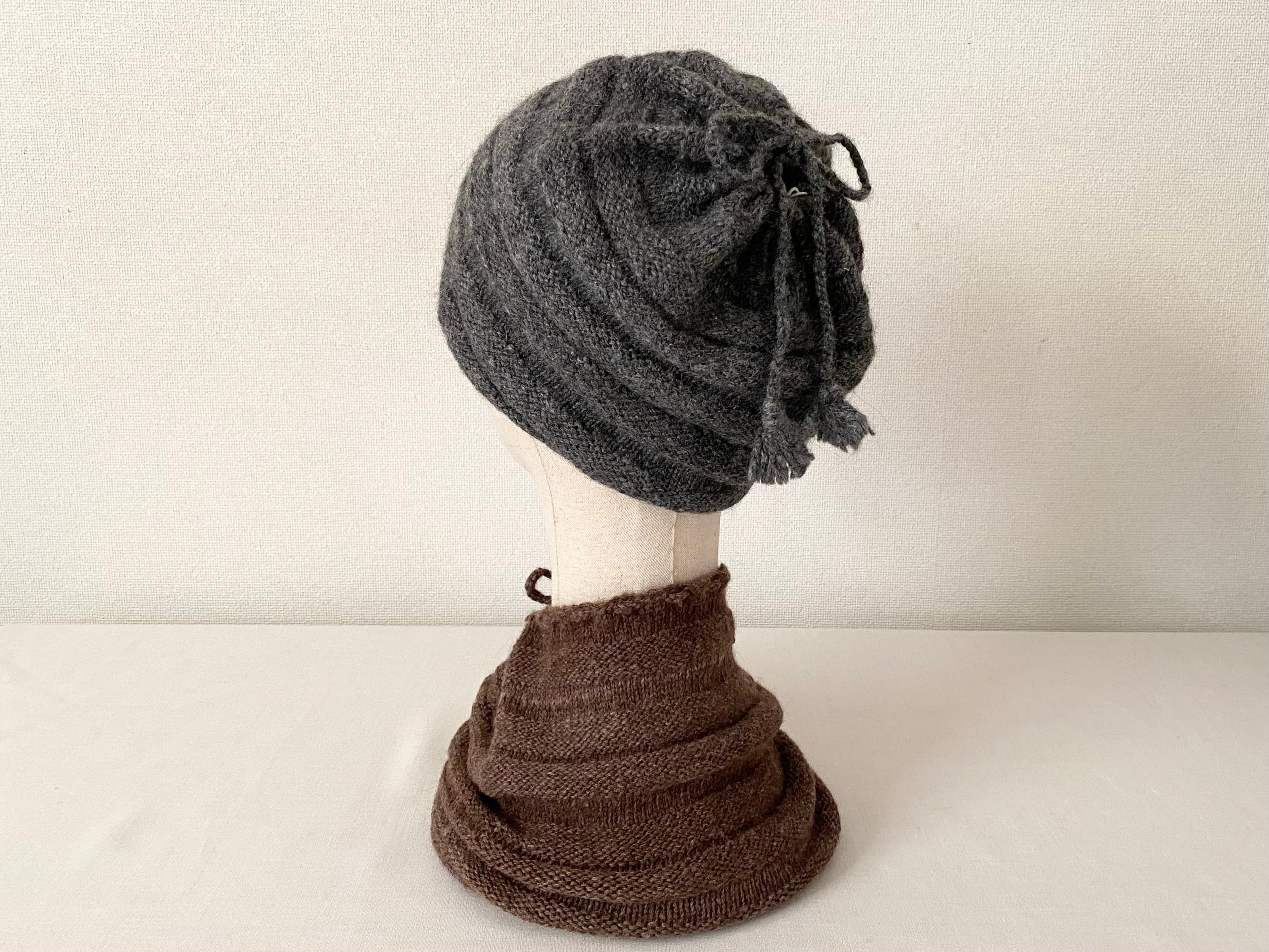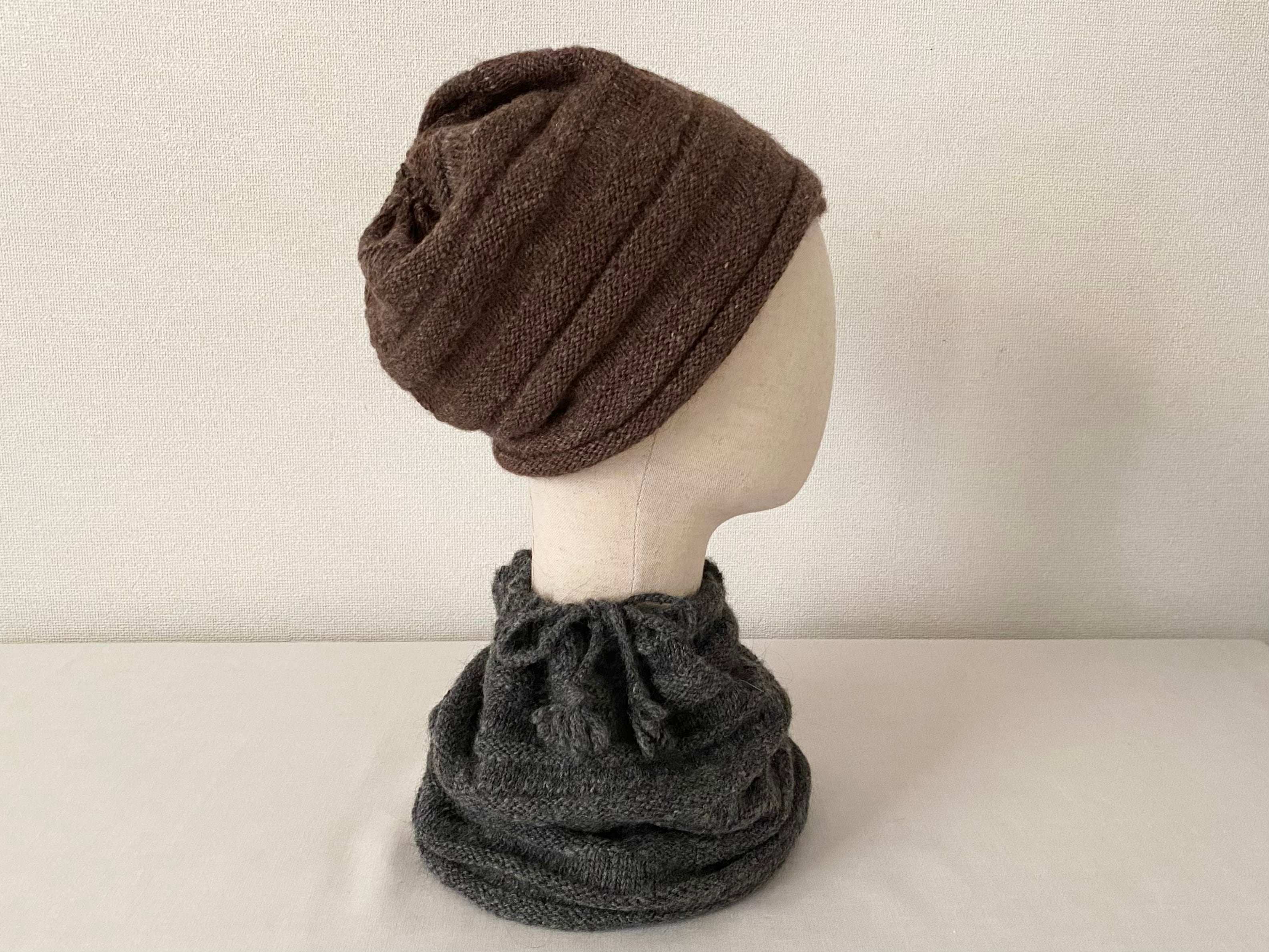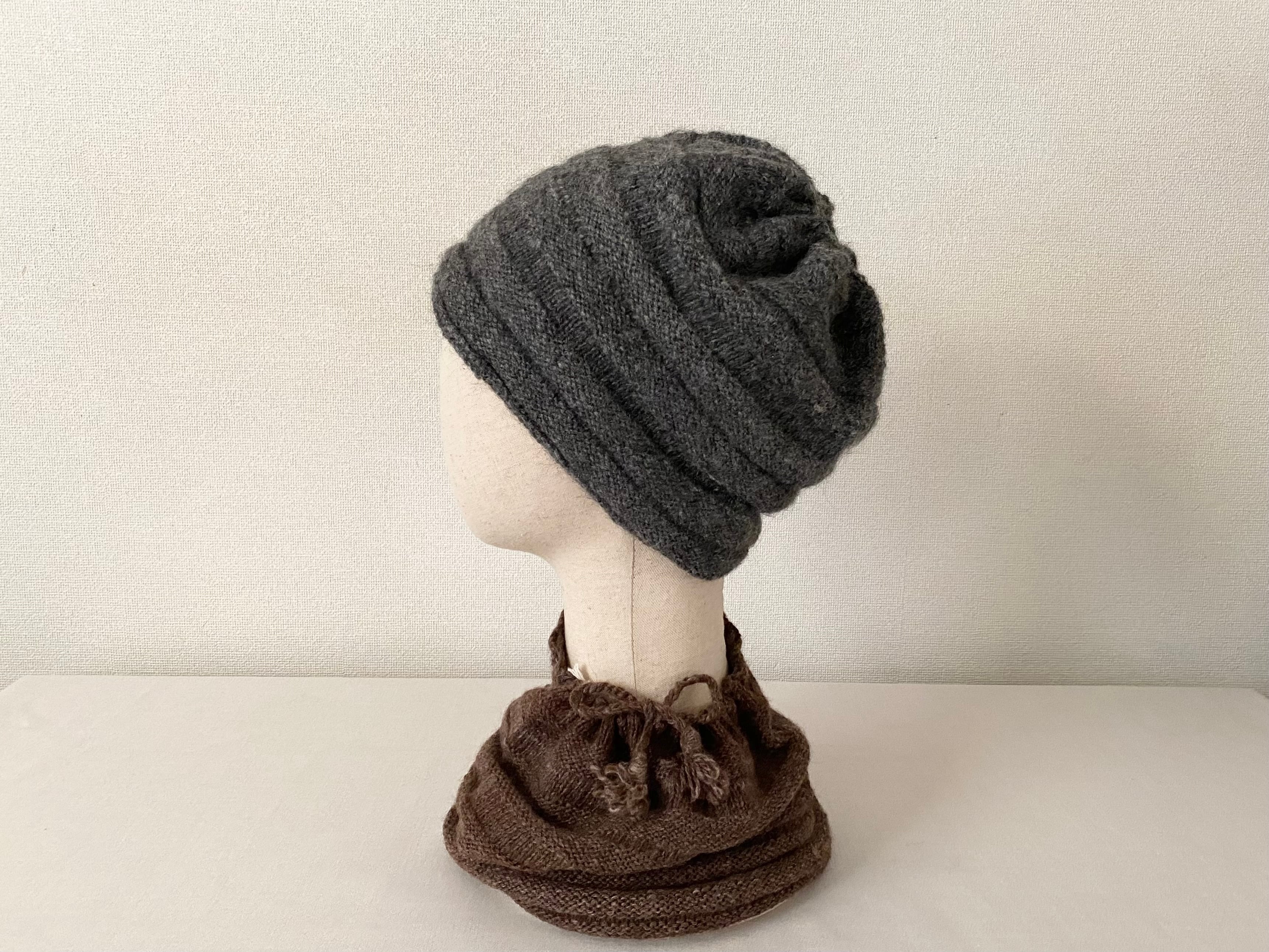 ◎プエンテ 手紡ぎワイドニットキャップ&ネックウォーマーA