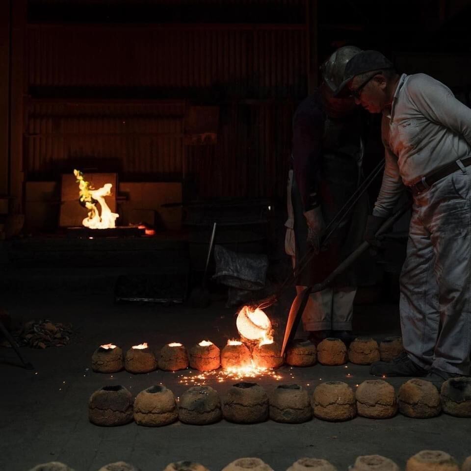 創業180年余りの歴史に培われた伝統の技術と知恵をもとに、伝統的な焼型鋳造法による「佐波理」製のおりん・祇園祭や各地の囃子鉦・鳴物神仏具を専門に製造している国内でも数少ない工房です。