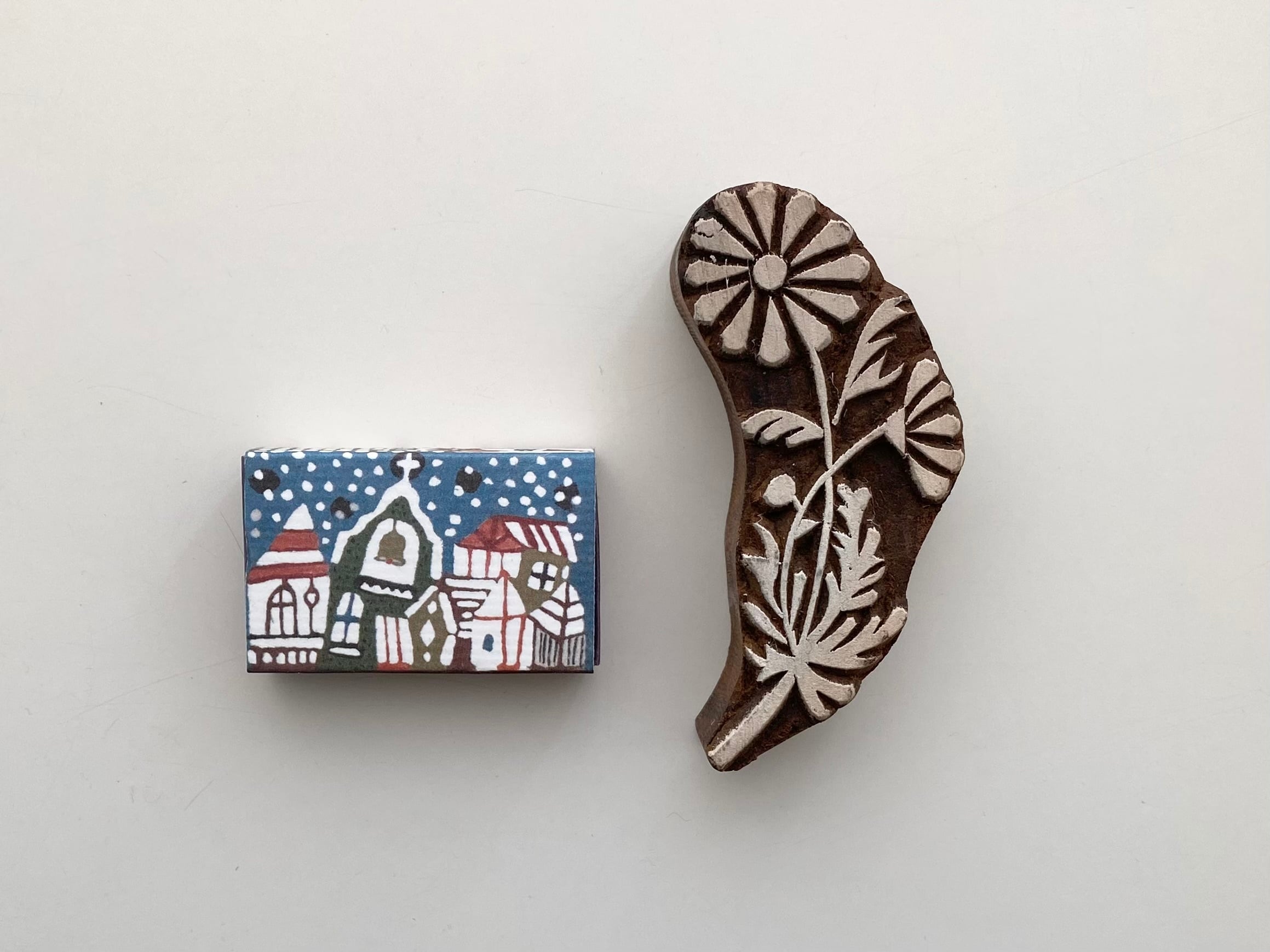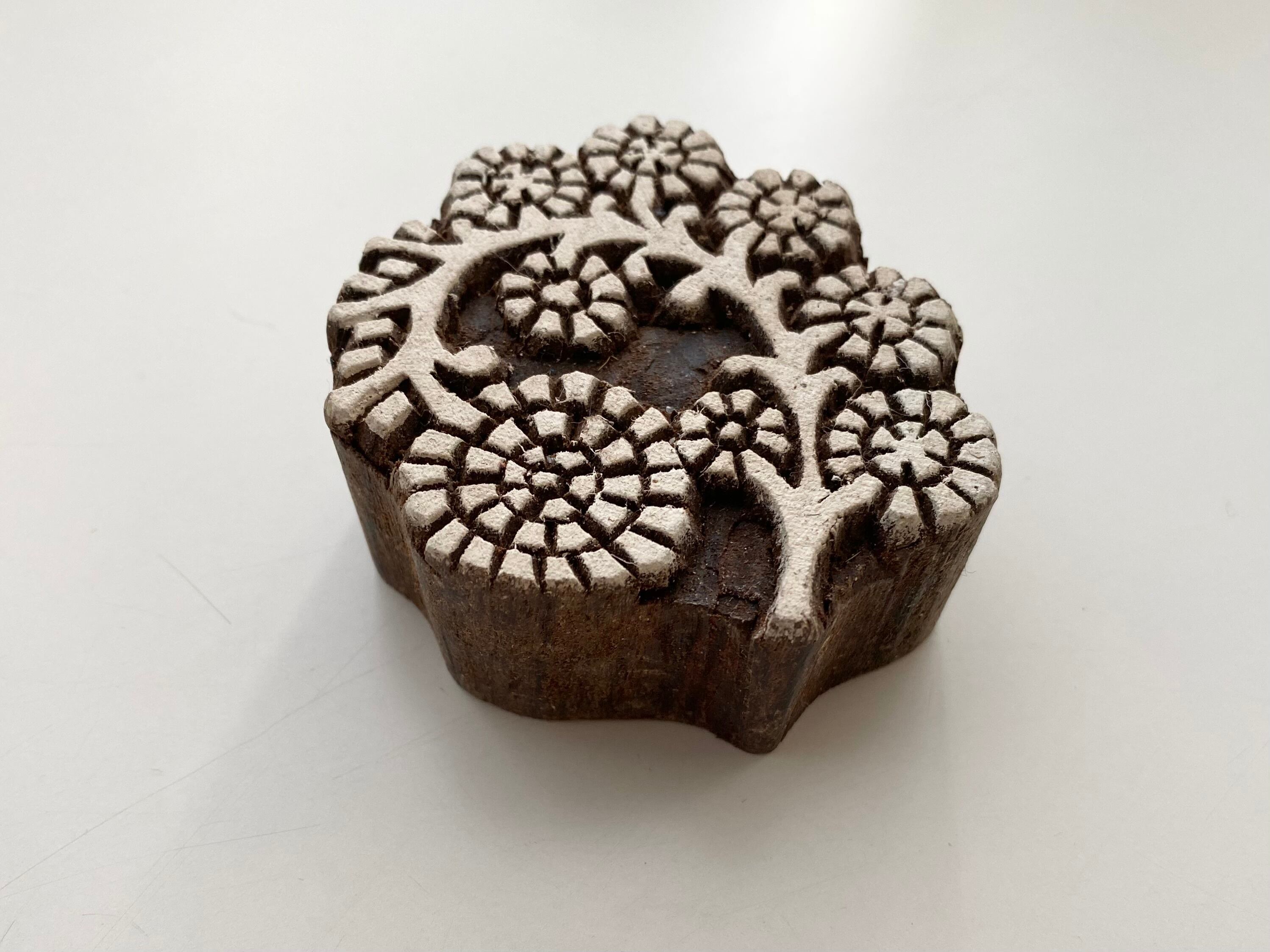 インドでは主に布のプリントに使われているウッドブロックですが、手持ちの布や紙、カードに押すとオリジナル感あふれる作品ができます。