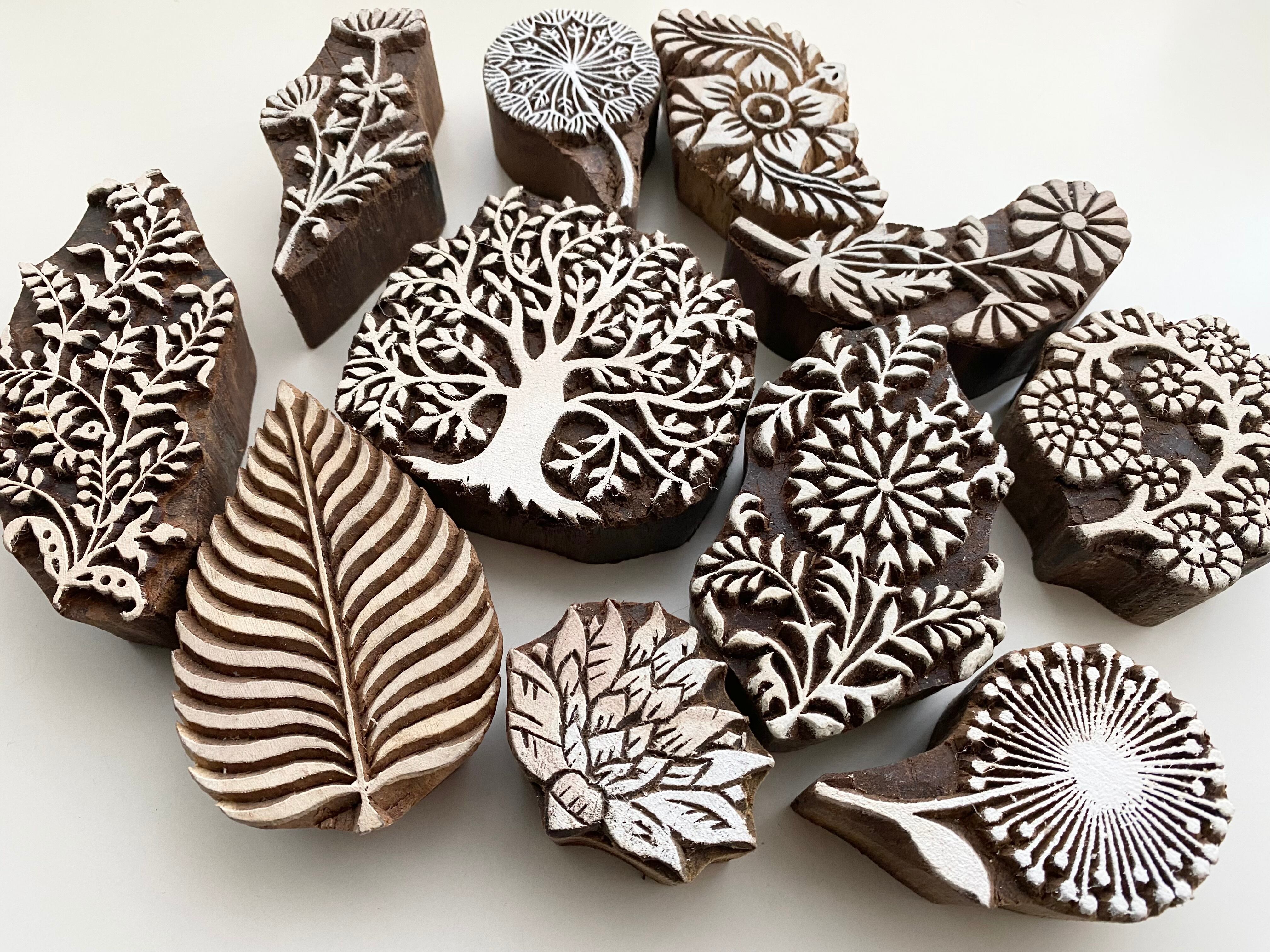 インドでは主に布のプリントに使われているウッドブロックですが、手持ちの布や紙、カードに押すとオリジナル感あふれる作品ができます。