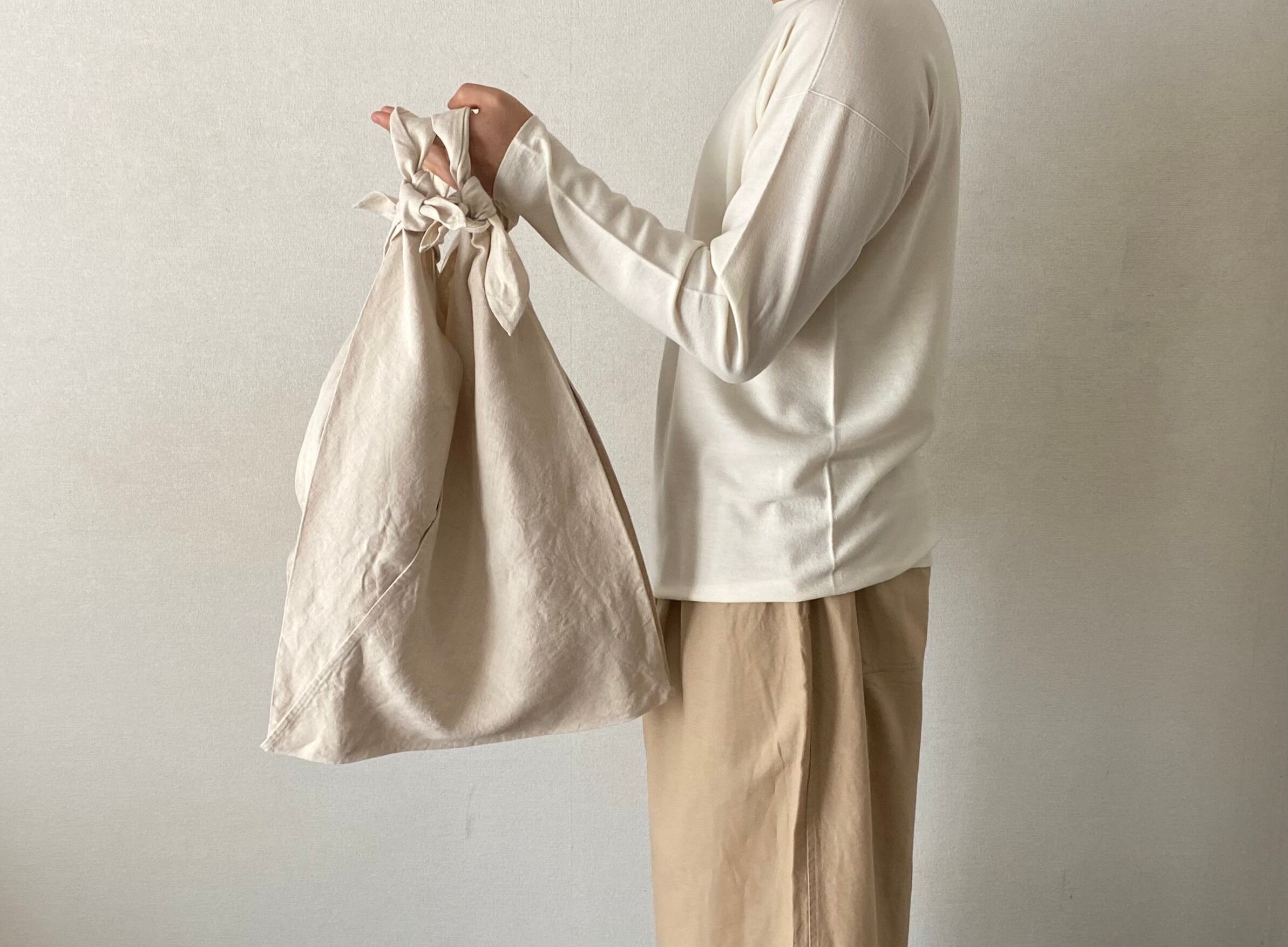 結び目をアレンジすることで、手持ち、肩掛け、リュックなど、使用する人に合わせた多様な使い方ができるのが魅力です。