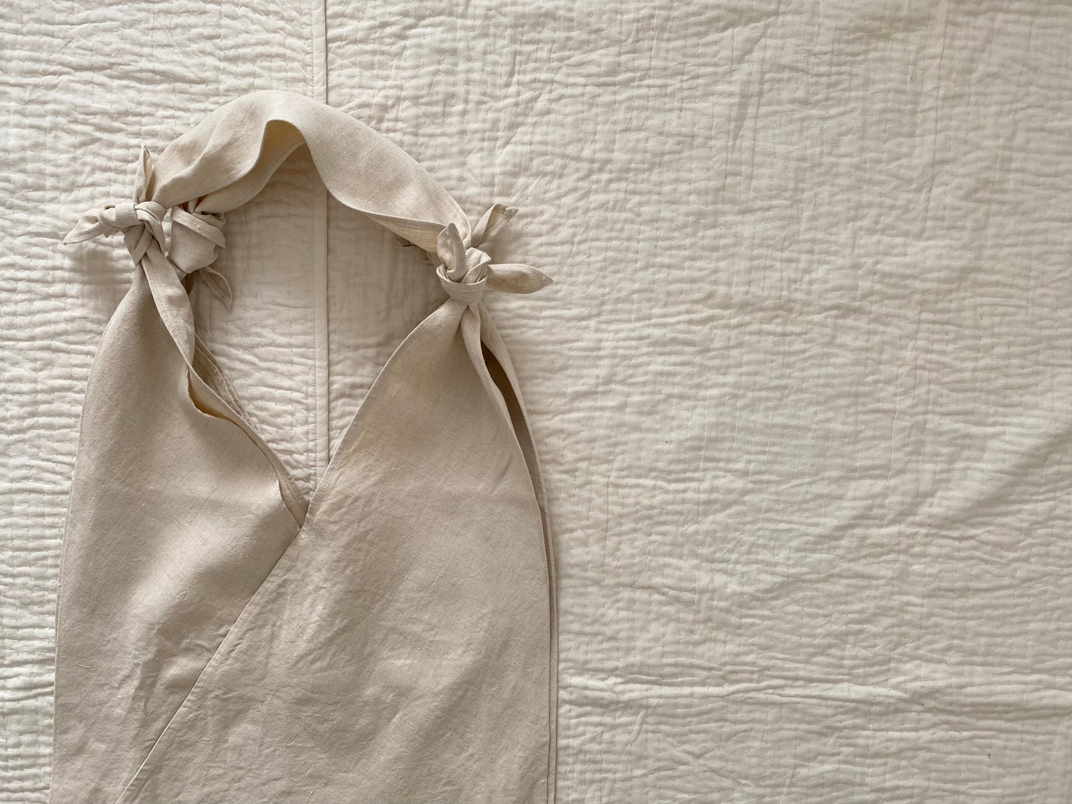 「結ぶ」と「包む」という日本人が古くから自然と受け継いできた所作と精神性に着想を得たバッグです。