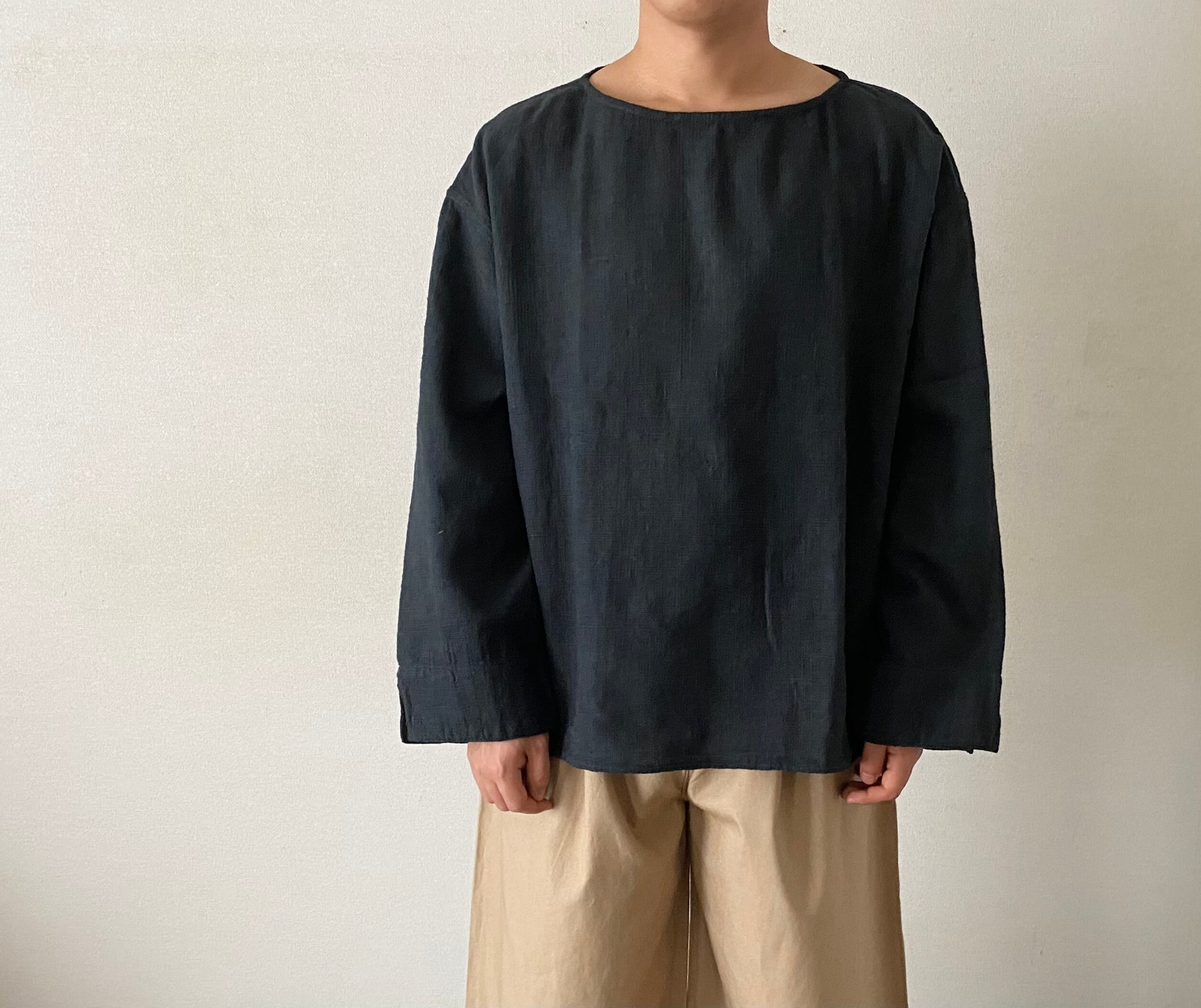 MITTAN SNチャルカkalaコットン長袖プルオーバー (草木濃染)藍X鬱金X墨 SH-86DC ユニセックス