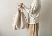 あずま袋が2つ繋がった特徴的なデザインで、一つを裏返すことでバッグが二重に重なり、内側と外側でセパレートして使うことができます。